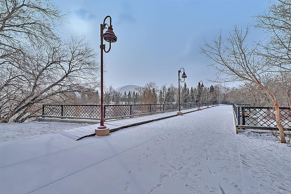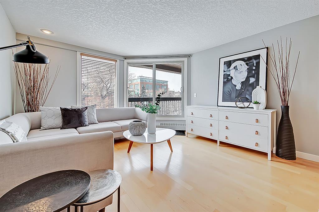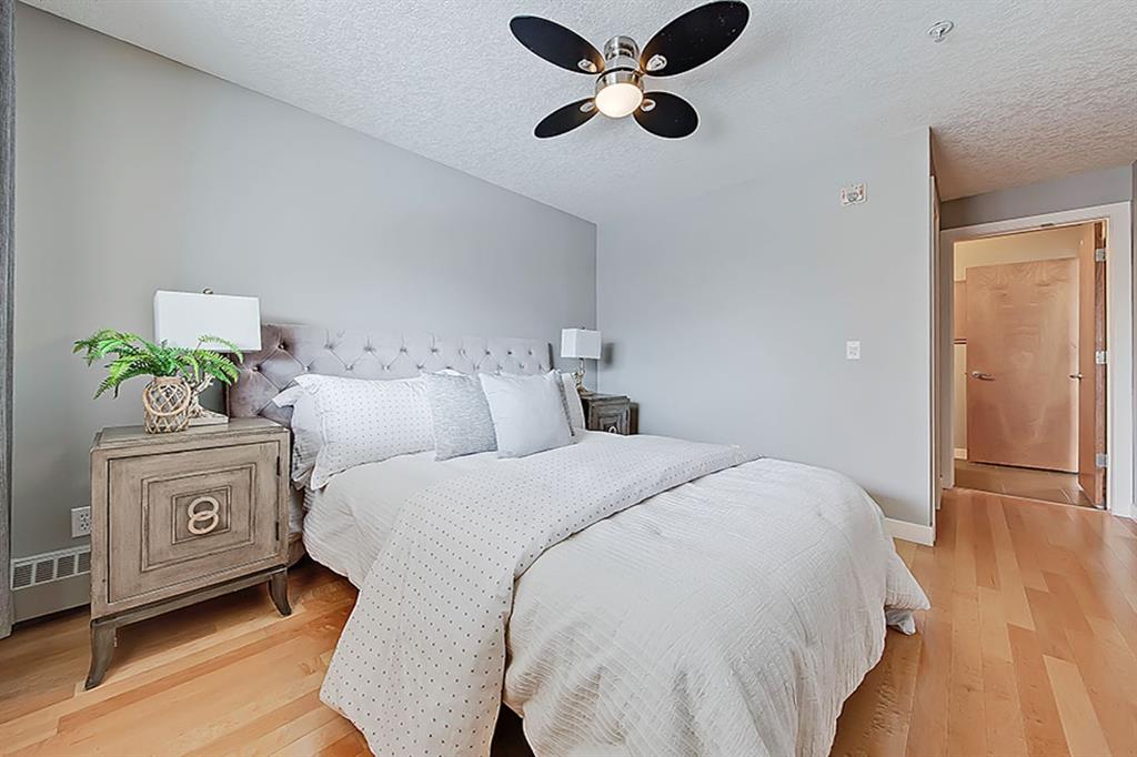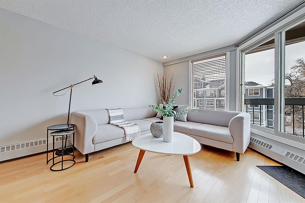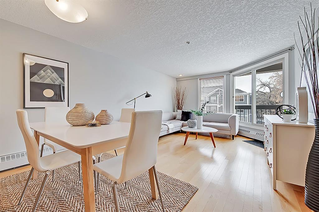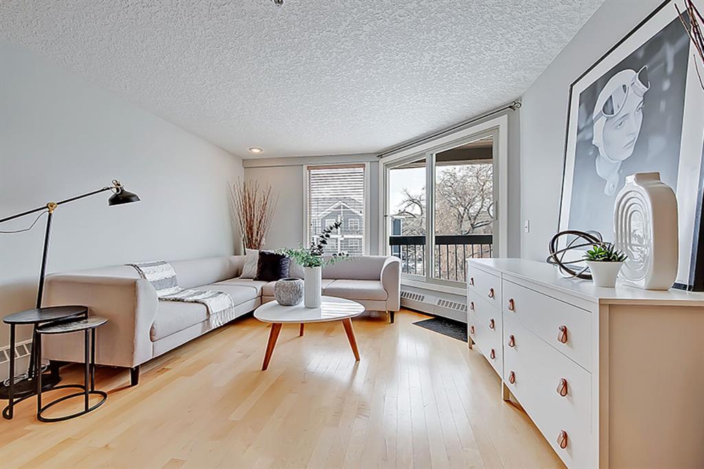 Welcome to Taymar – a highly walkable, beautifully upgraded CONCRETE condo building in the trendy neighbourhood of MISSION! Just off 17th Ave and 4th St, you’re close to everything you want at your doorstep – trendy shops, popular restaurants, lively nightlife, outdoor recreation, and the beautiful Elbow River. Tasteful finishings and an open-concept layout make this 2-BED spacious condo incredibly desirable, complete with engineered hardwood and tile flooring (no carpet!). The modern kitchen features cabinets with glass doors w/display shelves, stainless steel appliances, a full built-in pantry, and timeless maple cabinets complimented by granite counters and designer fixtures. Space for a 4-person dining table allows for entertaining and weeknight meals, with additional bar seating available on the raised peninsula counter on the central island. The living room has large windows for natural light, including the sliding glass door that takes you out to the sizeable SOUTH FACING balcony with gas line hook up great for barbecuing and plenty of room for an outdoor table and chairs. Two spacious bedrooms are perfect for roommates or to use one as a home office, each with a walk-in closet. The 4-pc bathroom features a good-sized vanity, tile floors, and a tub/shower combo with a full-height white tile surround. No condo is complete without building features and amenities! This unit comes complete with in-suite laundry with a stacked washer/dryer, TITLED underground HEATED parking , as well as a sizeable storage locker conveniently located in front of your parking stall. Mission is a vibrant community that you will fall in love with immediately! You’re just two blocks from 17th Ave and The Ship & Anchor, Model Milk, National on 17th, Una Pizza, and more. 4th Street, only half a block away, has Seed & Salt, Blaze Pizza, Foo Asian Street Food, Frilly Lilly, Anejo, HotShop Spin Studio, Safeway, and other amenities. When you want to take a moment away from the hustle-and-bustle of inner-city living, head a block East, and you’re at the picturesque Elbow River with many pathways, Lindsay Park, and the Repsol Sports Centre. It’s truly a location you can’t beat!
