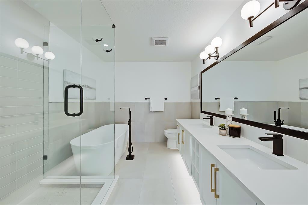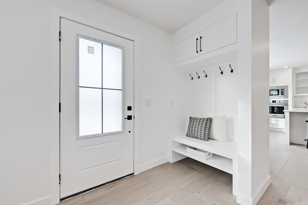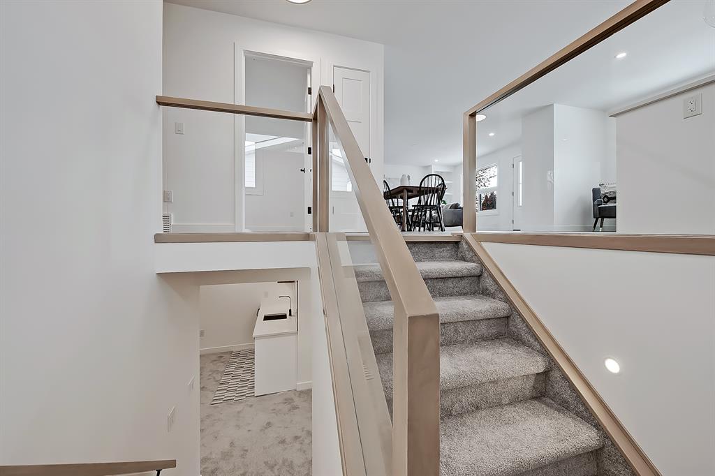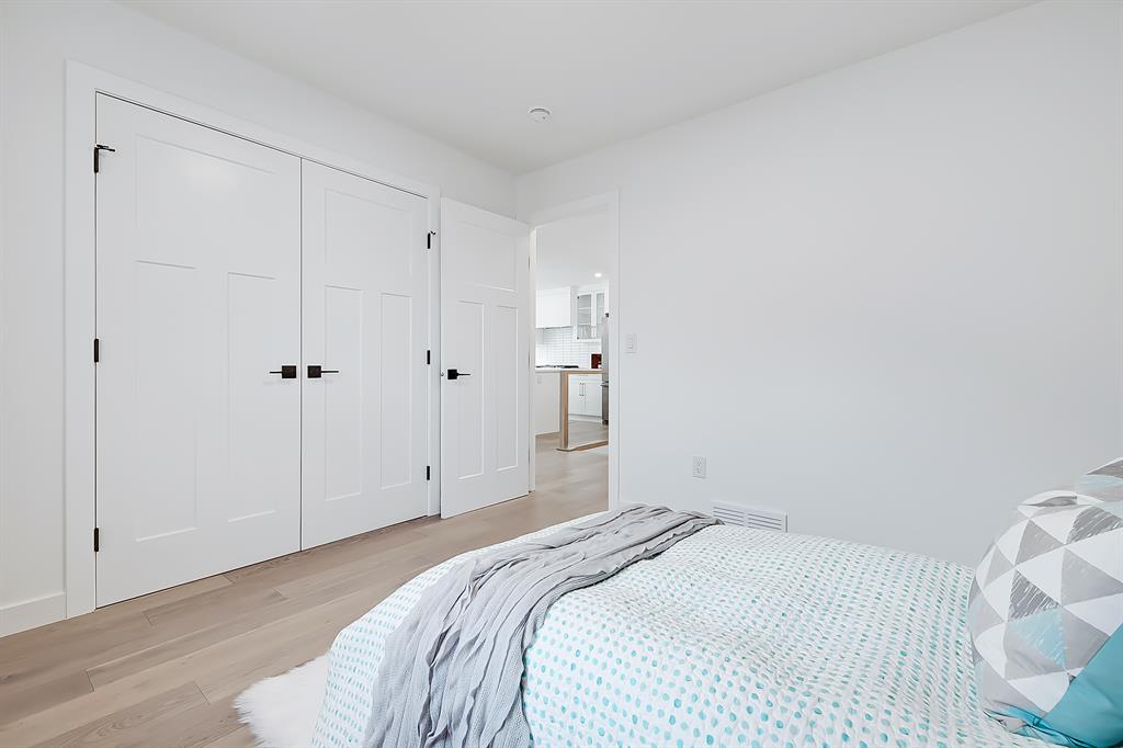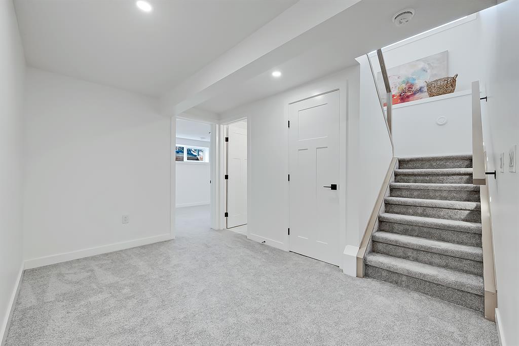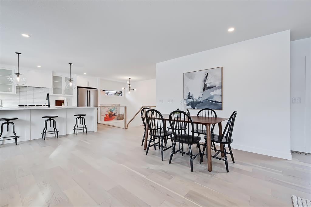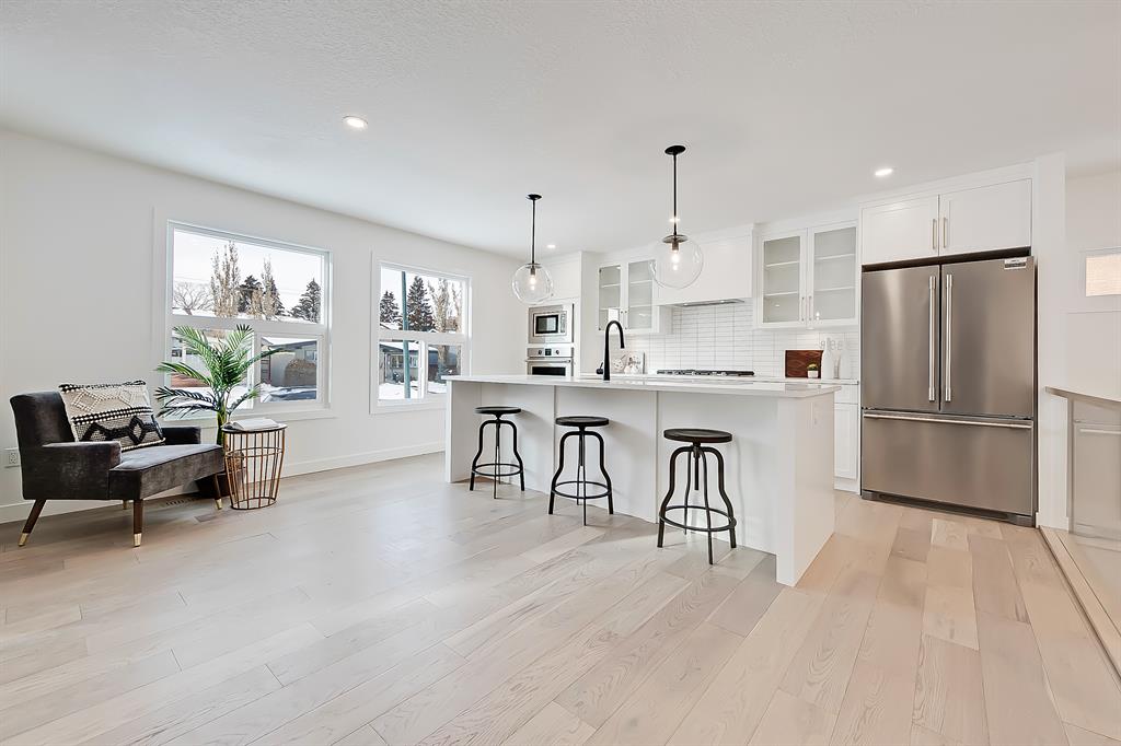 OPEN HOUSE SAT MAY 13 1:00-4:00 PM | Newly renovated bungalow in one of South Calgary’s best communities! This bright, contemporary home sits on a quiet street in picturesque Willow Park – moments from green spaces, Willow Park Golf & Country Club, Southcentre Mall, multiple schools, and endless shopping and amenities. Renovations include not only modern upgrades to the kitchen and overall living spaces but also an extension where the brand new living room sits AND a 10-ft x 10-ft deck addition! Other brand new additions include SMART home capabilities with new wiring, new plumbing, new lighting, new appliances, renovated bathrooms, new electric fireplace, and so much more! The modern finishes begin w/ the glass-panelled front door as you step into the spacious & bright living room featuring a built-in entertainment wall with an inset electric fireplace w/ a contemporary tile surround. Brand new oak engineered hardwood spans the main floor and leads you into the kitchen/dining room, where you’ll find shaker-style cabinetry, a classic white tile backsplash, lots of lower drawers, an oversized island w/ quartz countertops, & brand-new stainless steel appliances (including French door fridge, wall oven & microwave, gas cooktop, and custom-built hood fan). A dedicated dining space can hold an eight-person table and is perfect for entertaining. The large windows throughout bring in lots of natural light all day. Two bedrooms on the main floor feature incredible built-in storage, while the primary also features a tasteful feature wall and deluxe ensuite with a freestanding soaker tub, stand-up shower w/ full height tile, dual shower heads, BODY JETS and double vanity. The main bathroom also offers a quartz vanity and a tub/shower combo w/ full height tile surround. Down the GLASS stairwell, a large rec room enjoys its own built-in media wall and a full wet bar complete w/ sink, tile backsplash, beverage fridge, open display shelves with built in lighting, and lower cabinetry. There are also TWO good-sized bedrooms w/ easy access to the 4-pc bath w/tile surround.