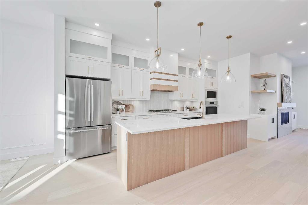 **NOW MOVE-IN READY!** Welcome to a home that effortlessly blends modern charm with smart design. This beautifully finished SEMI-DETACHED INFILL in Glenbrook is full of natural light and stylish touches from top to bottom. With a functional layout, a 2-BED LOWER LEGAL SUITE (approved by the city), and thoughtful spaces throughout, there’s room for your everyday flow and your weekend gatherings. Step through the front door into a bright, airy foyer with a convenient powder room just off to the side. Right away, you’re greeted by a refreshing layout — the dining room sits at the front of the home, surrounded by windows that fill the space with natural light. From there, the space flows naturally into the central kitchen. Designed with clean lines, it features ceiling-height cabinetry, quartz counters, a large island with seating, and modern lighting that adds just the right amount of flair. At the back of the home, the living room offers a cozy place to unwind, anchored by a sleek fireplace with built-in shelving and closed storage. Oversized windows overlook the yard, bringing in soft afternoon light. Just off the living room is a rear mudroom that connects to both the kitchen and the backyard, complete with built-in closets and a bench — the ideal drop zone for coats, backpacks, and dog leashes. Outside, you’ll find a fenced yard, a concrete patio area perfect for summer BBQs, and a double detached garage with alley access. There’s room to relax, entertain, and let pets or kids play freely. Upstairs, the primary suite is a calming retreat with VAULTED CEILINGS, large windows, and a generous walk-in closet. The ensuite feels like a spa with dual sinks, a glass shower, and a freestanding tub. Two more bedrooms, a full bath, and a dedicated laundry room with upper cabinets and a sink complete the upper level. There’s also a handy tech nook at the top of the stairs — ideal for a study station or extra workspace. Downstairs, the 2-BED LOWER LEGAL SUITE (approved by the city) has its own PRIVATE ENTRANCE and a modern, open-concept layout. The full kitchen features QUARTZ COUNTERS and STAINLESS STEEL APPLIANCES, plus there’s a sleek 4-pc bath, dedicated laundry, and two good-sized bedrooms — including one with a WALK-IN CLOSET. Whether you use it for extended family, guests, or rental income, it’s a flexible and stylish space. Location-wise, you’re in the heart of Glenbrook — a walkable, tree-lined community filled with charm and convenience. You’re just a few minutes from Westhills and Signal Hill shopping centres (hello, restaurants, groceries, and big-box stores), and even closer to local gems like Glamorgan Bakery, Richmond Road Co-op, and Optimist Park. Schools for all ages are nearby, as well as Mount Royal University, playgrounds, and off-leash areas. Quick access to Sarcee Trail and Glenmore makes commuting a breeze — whether you’re heading downtown, west to the mountains, or anywhere in between.