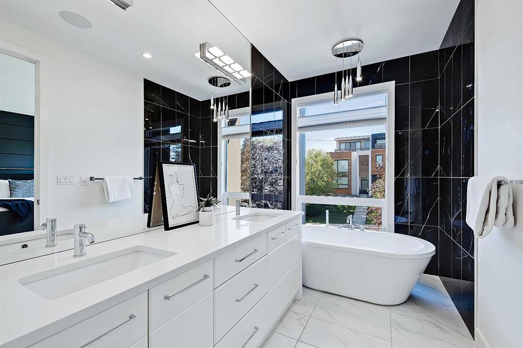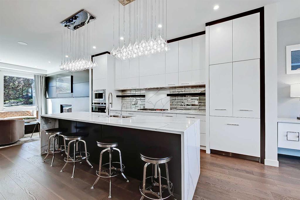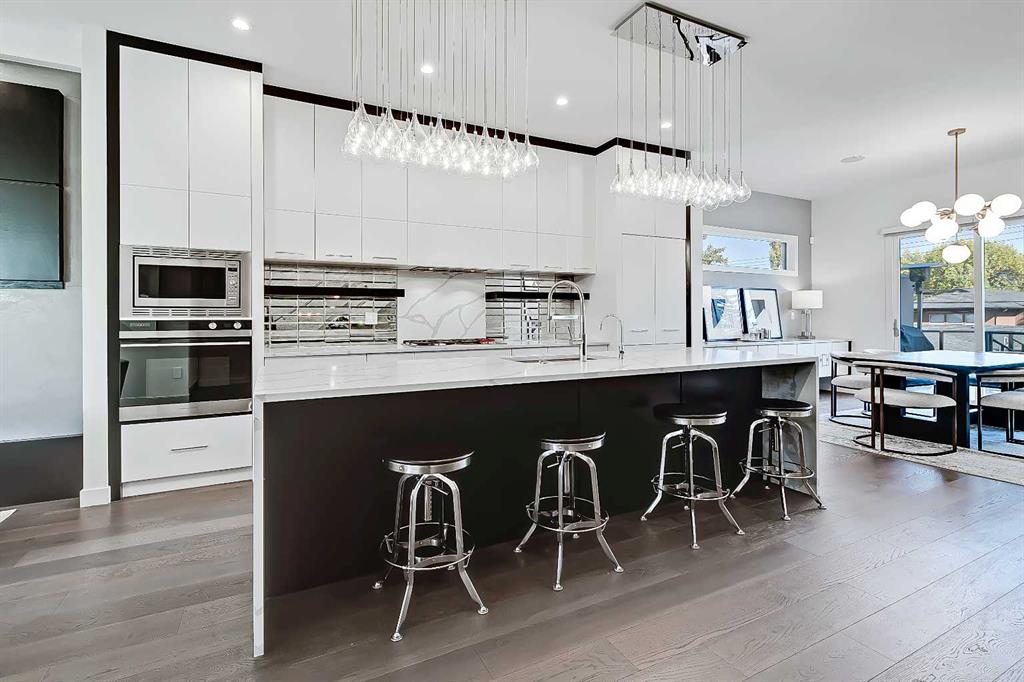 HIGHLY UPGRADED, 3-storey, SEMI-DETACHED infill w/ WALKOUT BASEMENT & 2,960+ sqft of living space NOW AVAILABLE in beautiful ALTADORE! The home not only has amazing curb appeal, but it features a fantastic OPEN LAYOUT w/ A/C & a private WEST-facing THIRD FLOOR LOFT BALCONY! This is a highly sought-after location & homes in this area don’t stay on the market long! You’re only a couple of blocks away from Flander’s Park & Dr. Oakley Playground plus you’re within walking distance to the Marda Loop shopping district, River Park & Sandy Beach, & the Glenmore Athletic Fields & Aquatic Centre! The central kitchen easily hosts family dinners or your kids & their friends w/ an oversized island w/ waterfall edged quartz countertops & an elegant dedicated dining room. Ceiling-height cabinetry sits alongside the stunning full-height glass tile backsplash w/ upgraded stainless steel appliances, including a WOLF gas cook top, panelled French door fridge, & a filtered water tap. Storage isn’t a problem either, w/ plenty of cabinets & a built-in pantry w/ soft-close hardware & additional designer storage in the bright dining room, ideally located next to the sliding glass doors for the RAISED DECK w/ gas line for a BBQ. The bright, modern living room features a gas fireplace w/ two-tone surround. The main floor mudroom & powder room are found off the main area for added privacy, w/ designer lighting & wallpaper for an elegant appeal. A glass stairwell leads you to the upper level, where you’ll find two secondary bedrooms (one w/ a lovely feature wall, perfect for an office space), a 4-pc main bath, & a fully equipped laundry room. The relaxing primary suite features two oversized West-facing windows for tons of natural light, highlighting the dark wood feature wall w/ dual pendant lights, a custom walk-in closet, & a luxurious ensuite featuring heated floors, a modern vanity w/ dual sinks, walk-in shower w/ full-height tile & STEAM, & a freestanding soaker tub w/ upgraded black tiles lining the walls for a truly luxurious feel. A third-floor loft is the perfect gym space, home office, or media room complete w/ glass wall, HWD flooring, 4-pc bath, & a private balcony! Downstairs, the large rec room enjoys WALKOUT ACCESS TO THE BACK PATIO through a sliding glass door & features radiant in-floor heat (super cozy in the winter!), a full wet bar, a wine wall, space for a games area, plus a fourth bedroom & a 4-pc main bath. Out back, enjoy the zero maintenance TURFED YARD for the ultimate summer experience w/ a fully finished garage & PAVED BACK ALLEY. Altadore is the ideal location for young families looking to be close to parks, schools, & amenities. The neighbourhood is only 5 km from the downtown core, easily accessible along 14 St or Crowchild Trail, & the community has public, private, & separate schools, junior high & high schools nearby, & Mount Royal University to the south. *VISIT MULTIMEDIA LINK FOR VT & VIDEO WALKTHROUGH!*