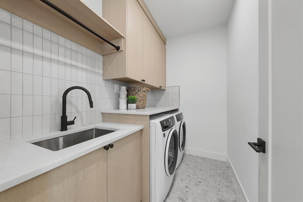 The fully developed lower level is designed as a legal basement suite, complete with a full kitchen, spacious living area, separate laundry, and full bathroom. Ideal for rental income, multigenerational living, extended family, or guest accommodation, this income-generating suite mirrors the same high-end finishes as the main level for a cohesive, upscale feel.