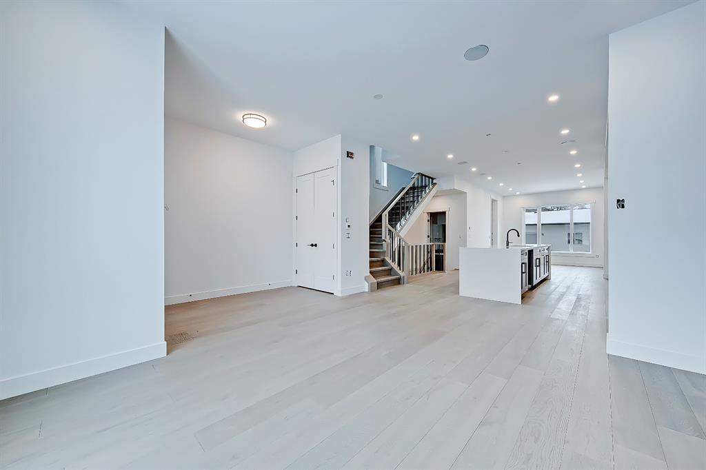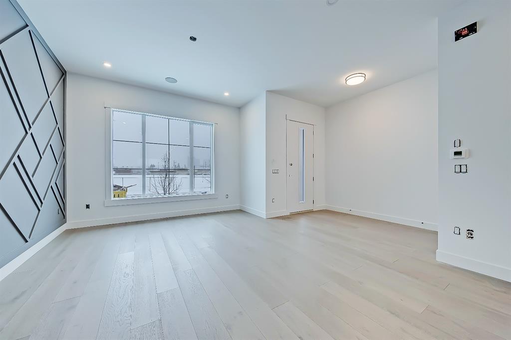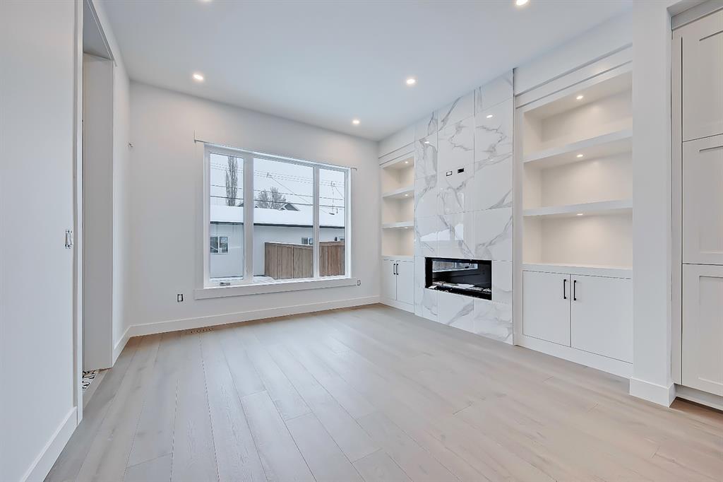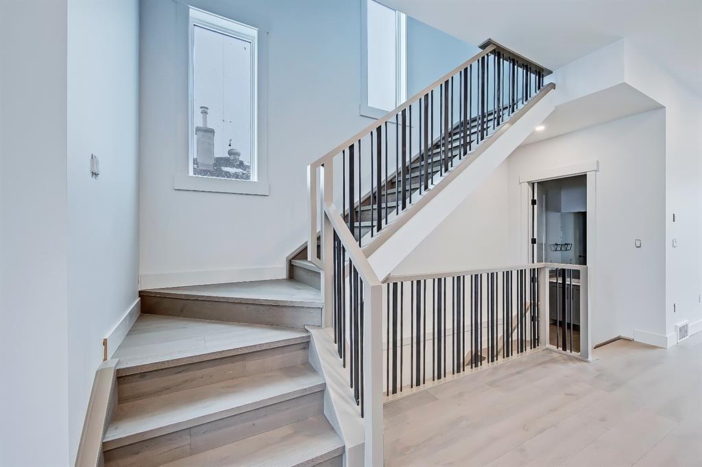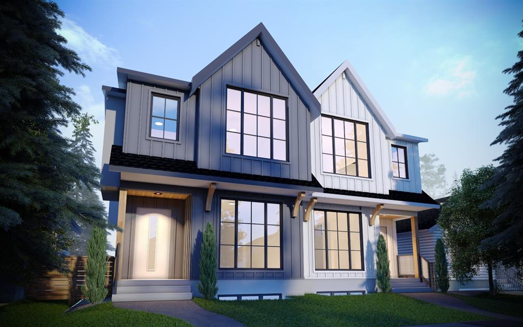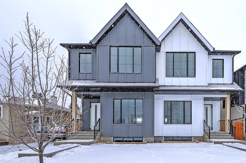 MOVE-IN READY! This incredible brand-new semi-detached infill is ideally located in Winston Heights/Mountview across the street from Munro Park and offers full DT views from all three floors! Close to Mt. View School, with direct access to 16th Avenue, it’s an ideal spot for those who prefer a quiet community with easy access to an abundance of amenities. A sought-after modern farmhouse exterior creates excellent curb appeal. The functional, open-concept floorplan features large primary living spaces, 4-bedrooms, 3.5-bathrooms, and a fully developed basement with a wet bar and a large rec room. Designed with style in mind, this home features several upgrades, including engineered hardwood flooring, built-in ceiling speakers throughout, and designer light fixtures. The custom-built kitchen has quartz countertops, ample cabinetry, a built-in wall pantry, and a stainless-steel appliance package, including a gas cooktop and a built-in wall oven/microwave. The beautiful living room centres on a modern gas fireplace with a custom feature wall and sliding glass doors that directly access the back deck. Complete with an elegant 2-piece powder room and a tiled mudroom with built-in lockers accessing the backyard/garage, this home easily accommodates family life without compromising style and quality. The second level features three large bedrooms, two full bathrooms, and a full-sized laundry room with a sink. The impressive master suite boasts cathedral ceilings, a custom feature wall, and a spacious custom walk-in closet. A barn door makes a bold statement and leads to the luxurious 5-piece ensuite with heated tile floors, modern vanity, and dual under-mount sinks. A freestanding soaker tub supplements an oversized walk-in shower with steam rough-ins and a built-in bench. Downstairs, the fully developed basement features 9-foot ceilings and a large rec room perfect for movie night and entertaining with a custom wet bar and a projector rough-in. A large fourth bedroom with a walk-in closet and quick access to the 4-piece bathroom is perfect for overnight guests. Winston Heights is a favourite among urban buyers for its upscale curb appeal, professional demographic, and family-friendly amenities, including proximity to schools, parks, and 16th Avenue amenities. Don’t forget to check out the multimedia links for all the details on this fantastic opportunity with park views!