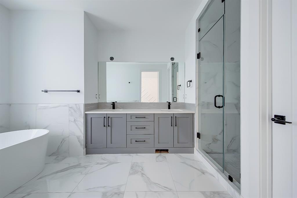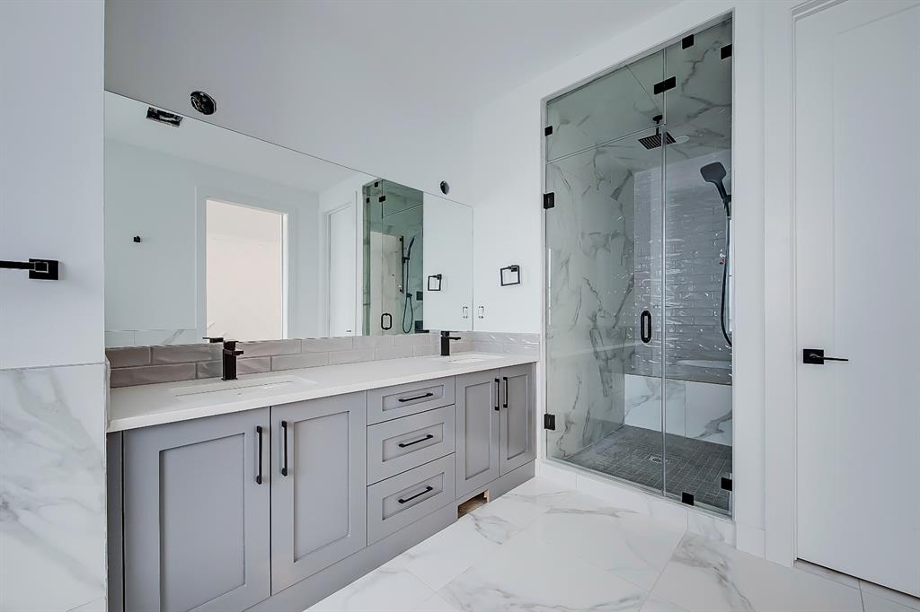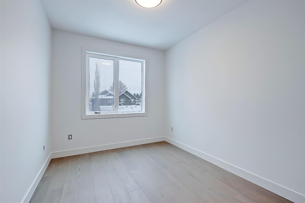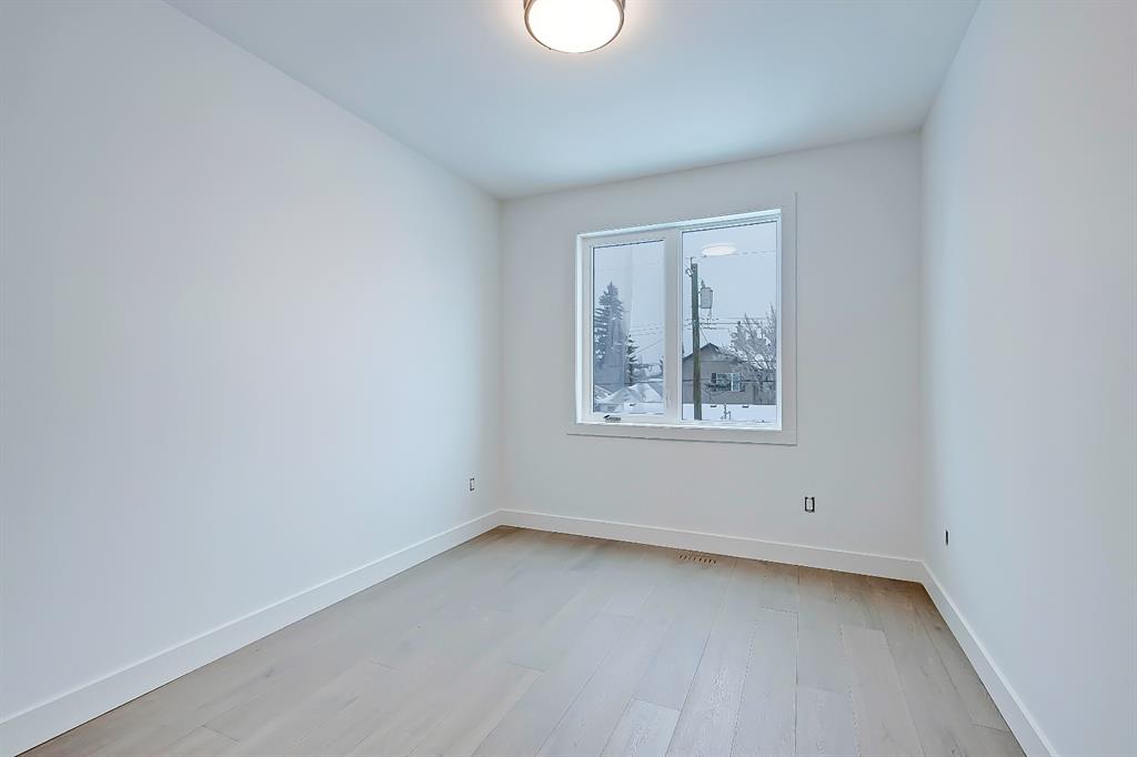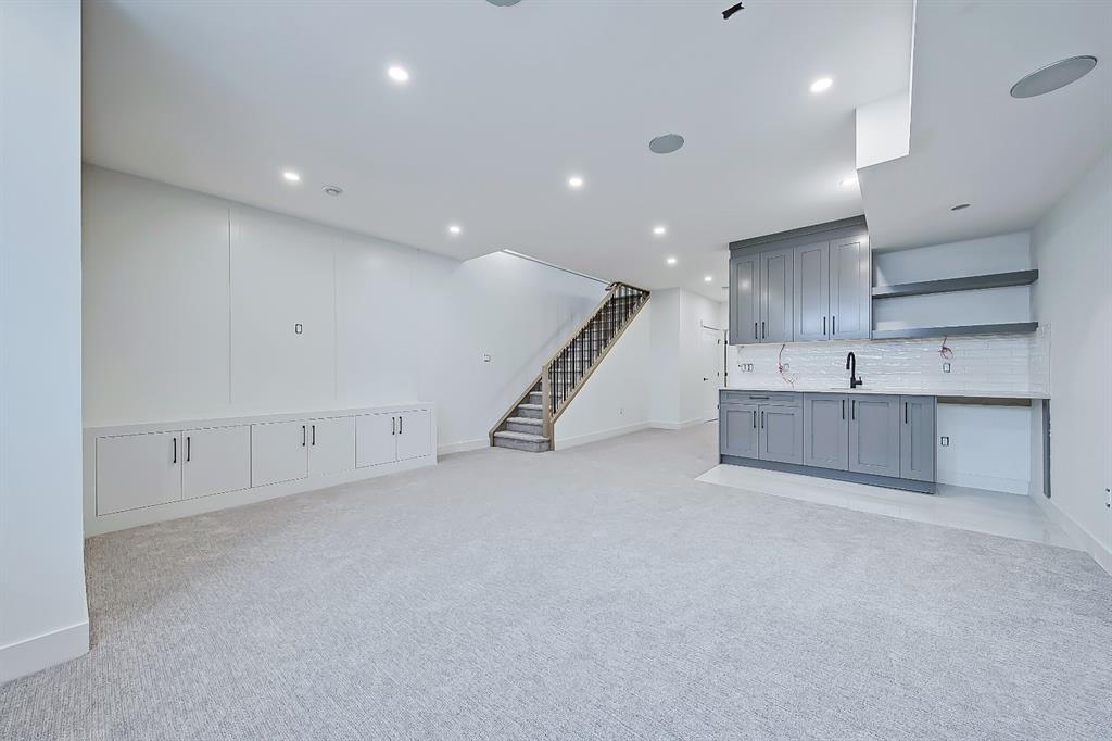 MOVE-IN READY! This incredible brand-new semi-detached infill is ideally located in Winston Heights/Mountview across the street from Munro Park and offers full DT views from all three floors! Close to Mt. View School, with direct access to 16th Avenue, it’s an ideal spot for those who prefer a quiet community with easy access to an abundance of amenities. A sought-after modern farmhouse exterior creates excellent curb appeal. The functional, open-concept floorplan features large primary living spaces, 4-bedrooms, 3.5-bathrooms, and a fully developed basement with a wet bar and a large rec room. Designed with style in mind, this home features several upgrades, including engineered hardwood flooring, built-in ceiling speakers throughout, and designer light fixtures. The custom-built kitchen has quartz countertops, ample cabinetry, a built-in wall pantry, and a stainless-steel appliance package, including a gas cooktop and a built-in wall oven/microwave. The beautiful living room centres on a modern gas fireplace with a custom feature wall and sliding glass doors that directly access the back deck. Complete with an elegant 2-piece powder room and a tiled mudroom with built-in lockers accessing the backyard/garage, this home easily accommodates family life without compromising style and quality. The second level features three large bedrooms, two full bathrooms, and a full-sized laundry room with a sink. The impressive master suite boasts cathedral ceilings, a custom feature wall, and a spacious custom walk-in closet. A barn door makes a bold statement and leads to the luxurious 5-piece ensuite with heated tile floors, modern vanity, and dual under-mount sinks. A freestanding soaker tub supplements an oversized walk-in shower with steam rough-ins and a built-in bench. Downstairs, the fully developed basement features 9-foot ceilings and a large rec room perfect for movie night and entertaining with a custom wet bar and a projector rough-in. A large fourth bedroom with a walk-in closet and quick access to the 4-piece bathroom is perfect for overnight guests. Winston Heights is a favourite among urban buyers for its upscale curb appeal, professional demographic, and family-friendly amenities, including proximity to schools, parks, and 16th Avenue amenities. Don’t forget to check out the multimedia links for all the details on this fantastic opportunity with park views!