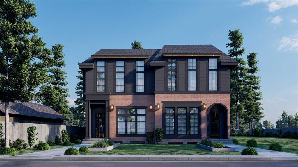 This fantastic upcoming SEMI-DETACHED infill in MONTGOMERY has great curb appeal with RED BRICK front & oversized high-end LUX windows – this home will impress you from the outside in, and even includes a fully developed LEGAL 2-BED BASEMENT SUITE (subject to permits & approvals by the city)! Montgomery is a wonderful inner-city community nestled along the banks of the Bow River. It is ideally located close to both the Foothills and Alberta Children’s Hospitals, UoC, SAIT, and offers easy access to downtown and the beautiful Rocky Mountains! You’re surrounded by beautiful parks, walking and biking paths, and a diverse and ever-growing business community with local shops and services. The main floor showcases engineered hardwood flooring that begins with a separated foyer area with a coat closet and a bench w/ hooks before stepping into the open concept space, starting with the bright dining room overlooking the NE front yard through oversized windows. The chef-inspired kitchen sits in the centre of the home, giving your family tons of space, with extensively upgraded custom cabinetry, an upgraded stainless steel appliance package, an oversized island with quartz countertop and bar seating, and a custom built-in pantry with coffee station! Glass sliding doors take you out to the back deck for a wonderful summertime dining experience! Off the living room, a mudroom with tile flooring, a custom built-in bench w/ hooks, and a built-in closet offer an easy transition outdoors. Rounding off the main level is an elegant 2-piece powder room with a stylish vanity and undermount sink. Upstairs, the expansive primary suite features a sky-high vaulted ceiling to create a welcoming atmosphere in this well-designed retreat, complete with a massive walk-in closet and an outstanding 5-pc ensuite with barn door entrance, vaulted ceiling above the freestanding soaker tub, modern vanity with dual sinks, and a fully tiled walk-in shower w/ bench and rain showerhead. Two secondary bedrooms have built-in closets and share access to the main 4-pc modern bathroom, and a large, tiled laundry room features a quartz folding counter. With its own private, secure side entrance, the LEGAL BASEMENT SUITE (subject to permits & approval by the city) is an excellent mortgage helper or mother-in-law suite with contemporary touches found in the rest of this upscale home. Luxury vinyl plank flooring runs throughout the suite across the open-concept living room and kitchen area with custom full-height cabinetry, quartz countertops, an elegant backsplash, and a central island for even more counter space and storage. There’s also a separate laundry, a 4-pc bathroom, and two bedrooms w/ built-in closets, plus a built-in pantry and coat closet! With time to customize the finishings, this could be your dream home in Montgomery!