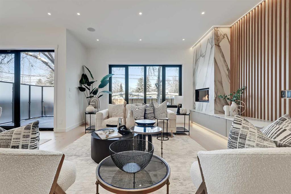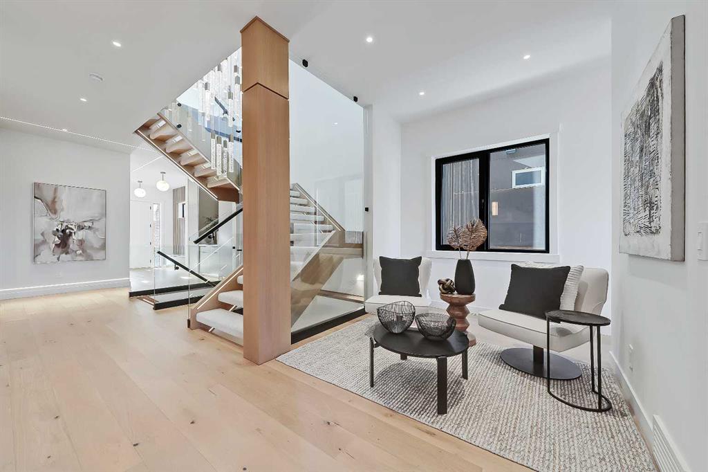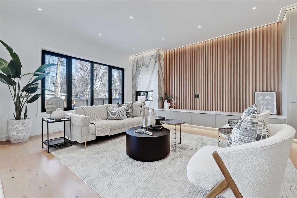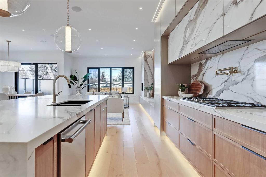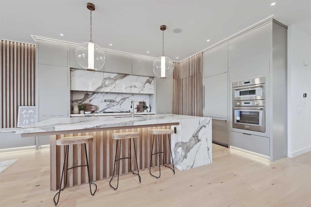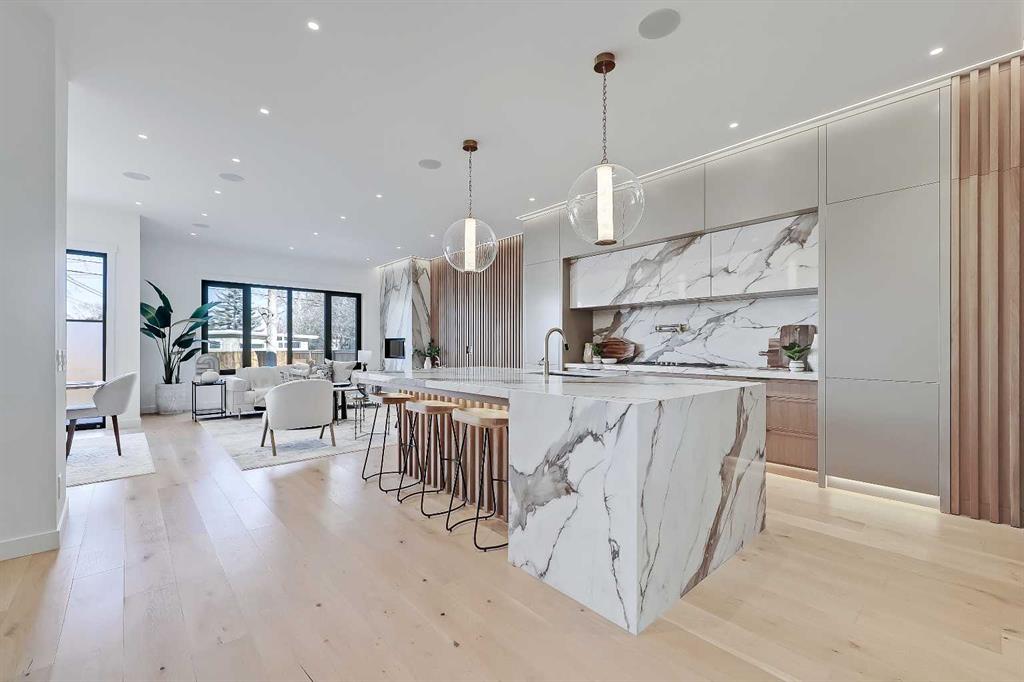 Welcome to this EXQUISITELY DESIGNED CUSTOM-BUILT LUXURY HOME in Calgary’s vibrant inner city! This property exudes elegance from the moment you approach, w/ its STRIKING BRICK EXTERIOR featuring Hardie board & modern accents. The FULLY FINISHED DOUBLE-ATTACHED GARAGE offers EPOXY FLOORING, HOT & COLD WATER TAPS, & an ELECTRIC VEHICLE ROUGH-IN, showcasing meticulous attention to detail. Step inside to discover 10-FT CEILINGS & stunning ENGINEERED WHITE OAK HARDWOOD flooring that flows throughout. The open-concept design is drenched in natural light, creating a warm & inviting ambiance during the day, w/ INSET LIGHTING IN THE CEILING for a lavish atmosphere at night. The kitchen is a chef’s dream, boasting a LONG ISLAND DRIPPING W/ MARBLE FULL SLAB QUARTZ & oak slats, premium flat panel cabinetry, & a THERMADOR APPLIANCE PACKAGE. A versatile WALKTHROUGH PANTRY offers direct garage access, a sink, & additional storage. The dining area is a true showpiece, featuring a CUSTOM WINE DISPLAY & RIBBED GLASS CABINETRY to elevate your entertaining space. Anchoring the living room is a GAS FIREPLACE framed by a PORCELAIN SLAB SURROUND & BENCH, enhanced by a stunning SLATTED WOOD FEATURE WALL, while the bright den/office w/ a FULL-HEIGHT GLASS FEATURE overlooks the central open riser staircase. The mudroom & front entry exudes opulence, w/ CUSTOM WOOD SLAT FEATURE WALLS & PORCELAIN BENCHES. A powder room w/ luxury wallpaper & a BLACK GRANITE VESSEL SINK complete the main level. Upstairs, the luxury continues w/ a VAULTED BONUS ROOM featuring a BUILT-IN MEDIA CENTER & LED LIGHTING, perfect for family gatherings. Two additional bedrooms, each w/ a DESIGNER ENSUITE, provide privacy & comfort. The PRIMARY RETREAT is a showstopper, boasting a VAULTED CEILING, SLATTED OAK FEATURE WALL W/ LED LIGHTING, & an ELECTRIC FIREPLACE W/ FULL-TILE SURROUND. The EXTRAVAGANT WALK-IN CLOSET, illuminated by a SKYLIGHT, is FULLY CUSTOM w/ OAK MILLWORK, glass display cabinets, & an island w/ drawers & a glass top. The spa-like ensuite features a FULL WALL OF QUARTZ, a freestanding tub, dual vanities, heated tile flooring, & a STEAM SHOWER w/ a rain head & body jets. Well thought out & nicely tucked away is your private entrance to the LEGAL 2-BED, 2-BATH SUITE (subject to approvals by the city). This suite boasts 9-ft ceilings, luxury vinyl plank flooring, & acoustic sound insulation. The modern kitchen is outfitted w/ flat-panel cabinetry & quartz counters, while the living room features a BUILT-IN MEDIA CENTER W/ LED LIGHTING. Both bedrooms include built-in closets, & the suite is completed w/ a 3-pc ensuite, a 4-pc main bath, & a dedicated laundry room. Located in the sought-after community of WINSTON HEIGHTS this home places you steps away from The Winston Golf Club, Edmonton Trail, Lina’s Italian Market, & Co-Op. Moments from Bridgeland’s trendy shops & restaurants, w/ schools, parks, & the Renfrew Aquatic Centre nearby, this home delivers luxury, modern conveniences, & an unbeatable location!