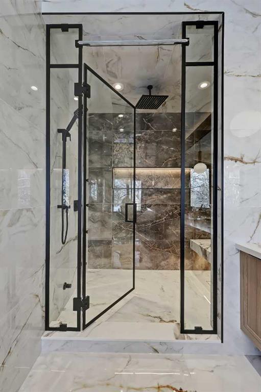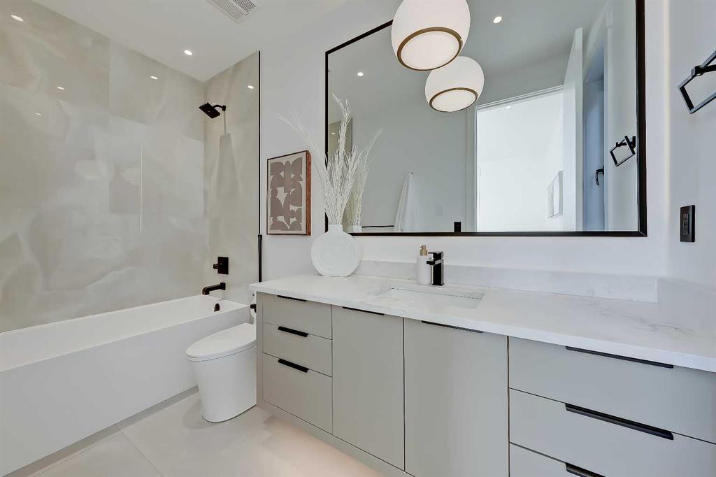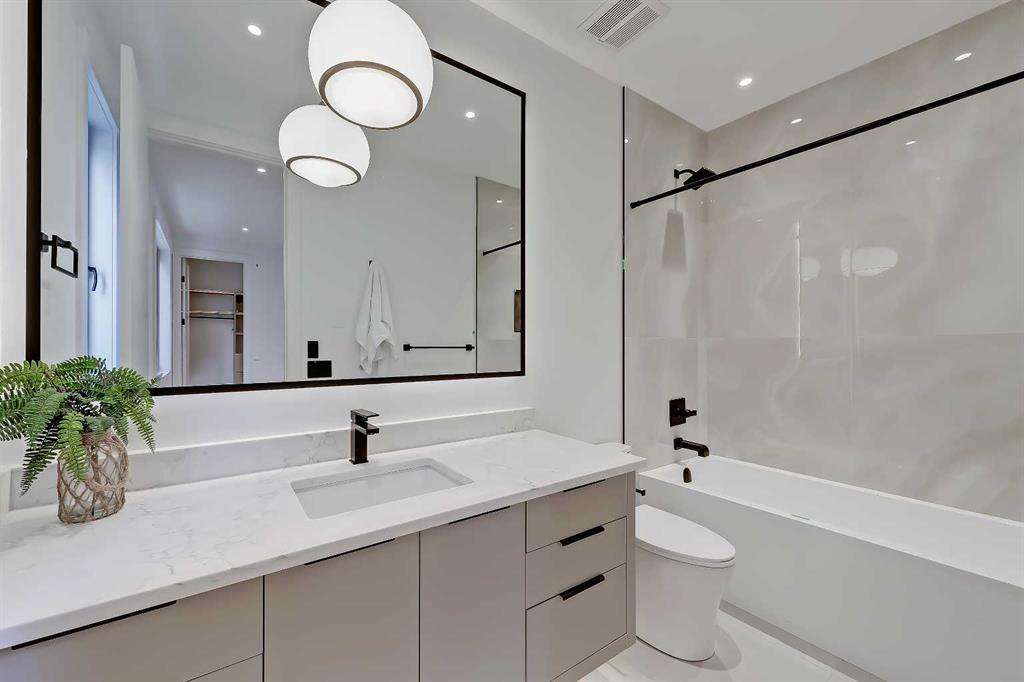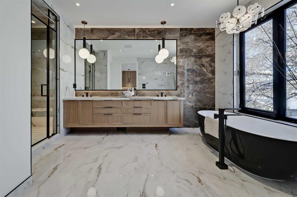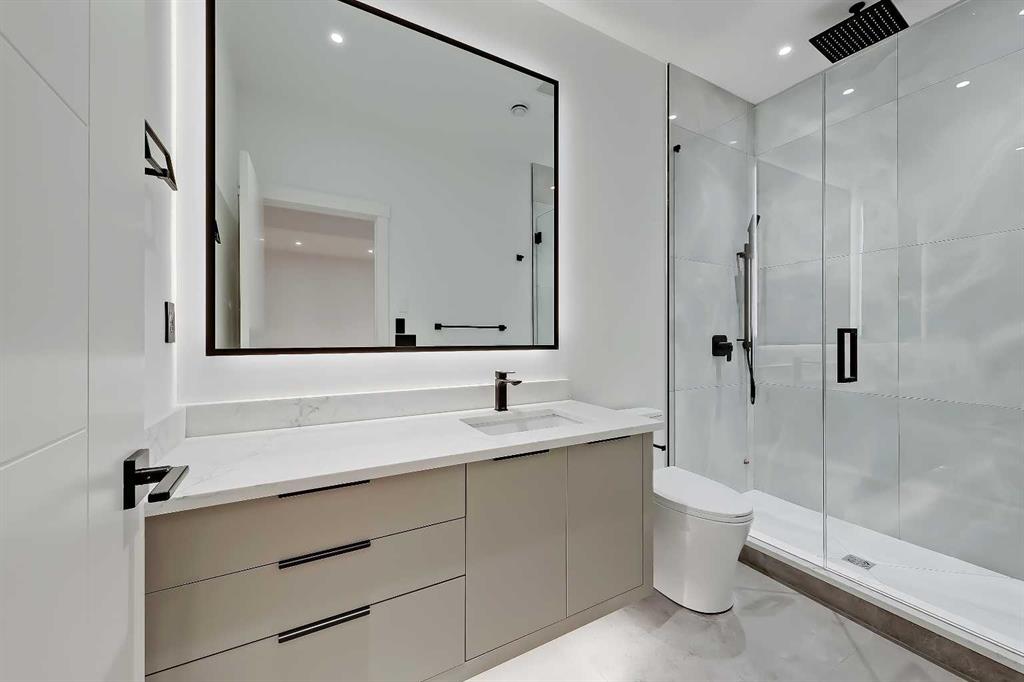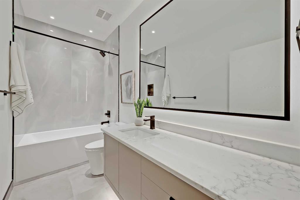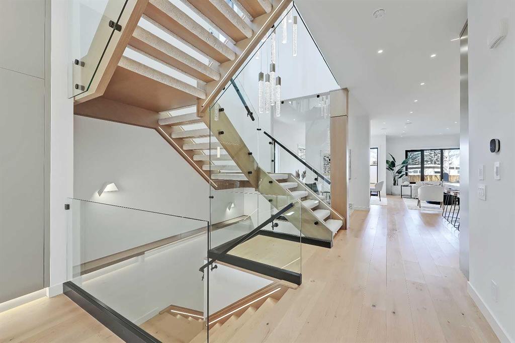 Welcome to this EXQUISITELY DESIGNED CUSTOM-BUILT LUXURY HOME in Calgary’s vibrant inner city! This property exudes elegance from the moment you approach, w/ its STRIKING BRICK EXTERIOR featuring Hardie board & modern accents. The FULLY FINISHED DOUBLE-ATTACHED GARAGE offers EPOXY FLOORING, HOT & COLD WATER TAPS, & an ELECTRIC VEHICLE ROUGH-IN, showcasing meticulous attention to detail. Step inside to discover 10-FT CEILINGS & stunning ENGINEERED WHITE OAK HARDWOOD flooring that flows throughout. The open-concept design is drenched in natural light, creating a warm & inviting ambiance during the day, w/ INSET LIGHTING IN THE CEILING for a lavish atmosphere at night. The kitchen is a chef’s dream, boasting a LONG ISLAND DRIPPING W/ MARBLE FULL SLAB QUARTZ & oak slats, premium flat panel cabinetry, & a THERMADOR APPLIANCE PACKAGE. A versatile WALKTHROUGH PANTRY offers direct garage access, a sink, & additional storage. The dining area is a true showpiece, featuring a CUSTOM WINE DISPLAY & RIBBED GLASS CABINETRY to elevate your entertaining space. Anchoring the living room is a GAS FIREPLACE framed by a PORCELAIN SLAB SURROUND & BENCH, enhanced by a stunning SLATTED WOOD FEATURE WALL, while the bright den/office w/ a FULL-HEIGHT GLASS FEATURE overlooks the central open riser staircase. The mudroom & front entry exudes opulence, w/ CUSTOM WOOD SLAT FEATURE WALLS & PORCELAIN BENCHES. A powder room w/ luxury wallpaper & a BLACK GRANITE VESSEL SINK complete the main level. Upstairs, the luxury continues w/ a VAULTED BONUS ROOM featuring a BUILT-IN MEDIA CENTER & LED LIGHTING, perfect for family gatherings. Two additional bedrooms, each w/ a DESIGNER ENSUITE, provide privacy & comfort. The PRIMARY RETREAT is a showstopper, boasting a VAULTED CEILING, SLATTED OAK FEATURE WALL W/ LED LIGHTING, & an ELECTRIC FIREPLACE W/ FULL-TILE SURROUND. The EXTRAVAGANT WALK-IN CLOSET, illuminated by a SKYLIGHT, is FULLY CUSTOM w/ OAK MILLWORK, glass display cabinets, & an island w/ drawers & a glass top. The spa-like ensuite features a FULL WALL OF QUARTZ, a freestanding tub, dual vanities, heated tile flooring, & a STEAM SHOWER w/ a rain head & body jets. Well thought out & nicely tucked away is your private entrance to the LEGAL 2-BED, 2-BATH SUITE (subject to approvals by the city). This suite boasts 9-ft ceilings, luxury vinyl plank flooring, & acoustic sound insulation. The modern kitchen is outfitted w/ flat-panel cabinetry & quartz counters, while the living room features a BUILT-IN MEDIA CENTER W/ LED LIGHTING. Both bedrooms include built-in closets, & the suite is completed w/ a 3-pc ensuite, a 4-pc main bath, & a dedicated laundry room. Located in the sought-after community of WINSTON HEIGHTS this home places you steps away from The Winston Golf Club, Edmonton Trail, Lina’s Italian Market, & Co-Op. Moments from Bridgeland’s trendy shops & restaurants, w/ schools, parks, & the Renfrew Aquatic Centre nearby, this home delivers luxury, modern conveniences, & an unbeatable location!