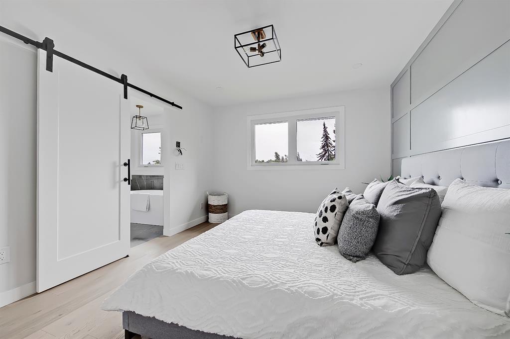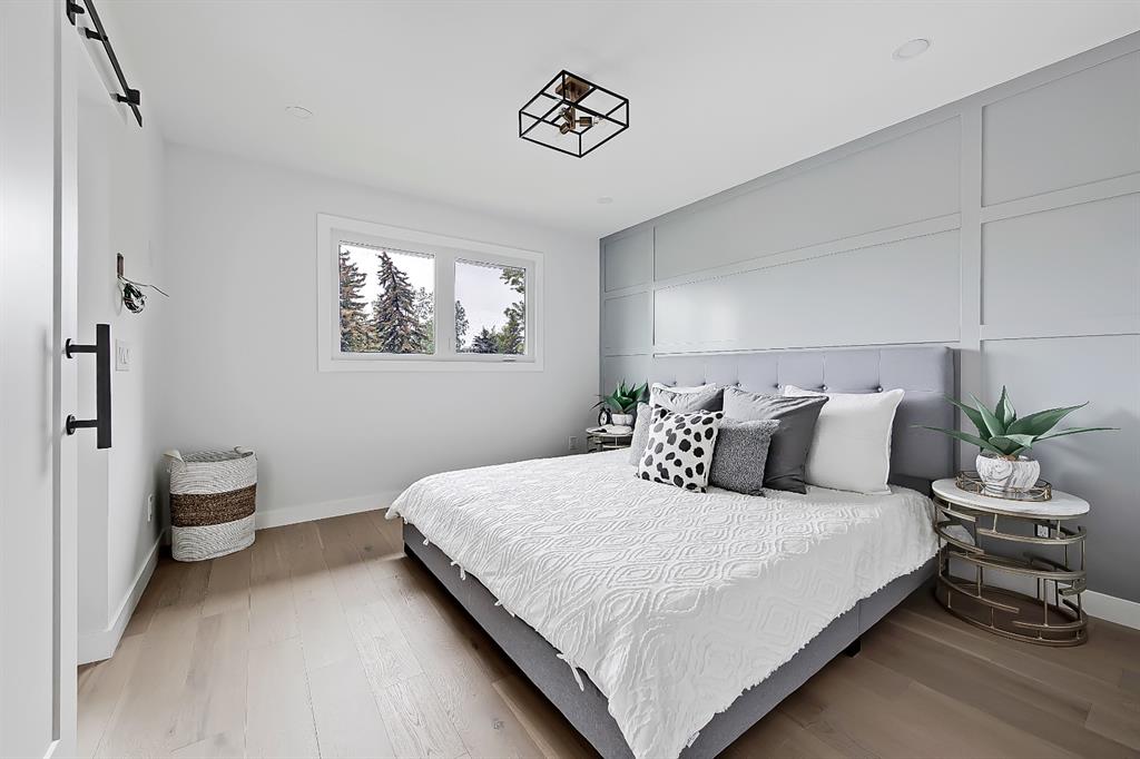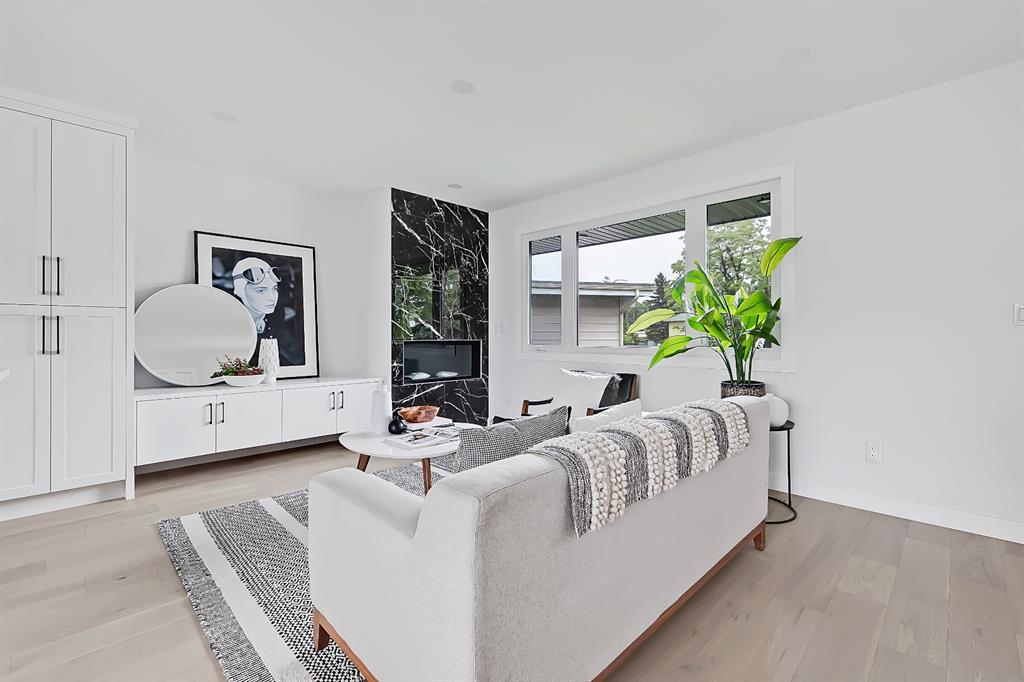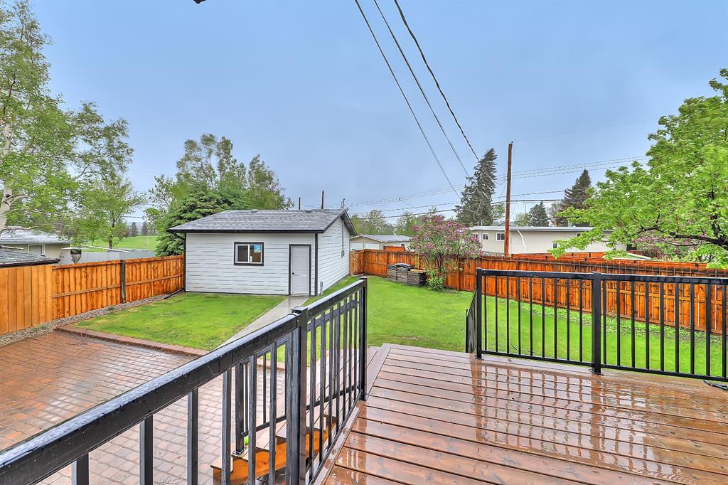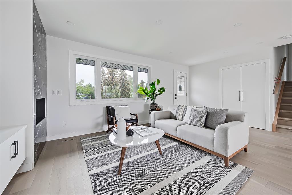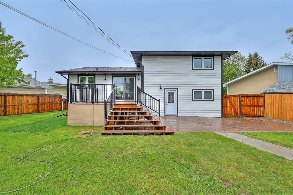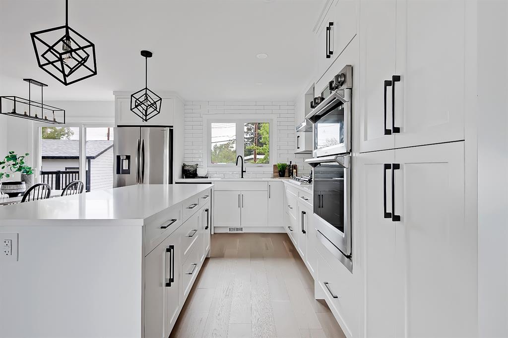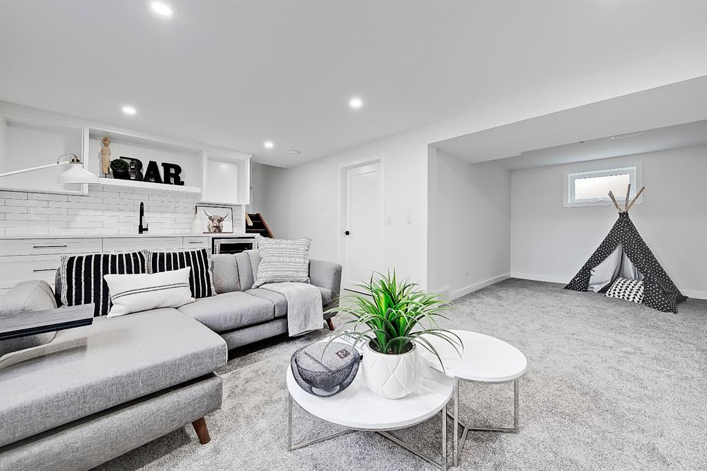 EXTENSIVELY RENOVATED | 5 BEDS + 3 BATHS | 4-LEVEL SPLIT | OVER 2,600 SQ FT OF LIVING SPACE | NEWLY BUILT OVERSIZED DOUBLE CAR GARAGE | FACING A GREEN SPACE This fully renovated home combines a well-thought-out floor plan with luxurious finishing in the sought-after community of Varsity. Only minutes away from the University of Calgary, Market Mall, University District, and LRT, this home offers a great central location in the community and is perfect for families and professionals alike. Renovated from the studs up and finished to 2022 building codes, this home offers new plumbing, electrical, insulation, heating, and exterior. The main floor features a stunning open concept design with engineered hardwood and lots of windows to make it spacious and bright. The modern, renovated kitchen includes custom shaker-style cabinetry including a large pantry, a stylish subway tile backsplash, and a stainless-steel appliance package complete w/ a French door refrigerator, gas cooktop, hood fan, built-in wall oven, microwave, and dishwasher. A large central island is an ideal addition to this space, adding breakfast bar seating, quartz countertops, and a large prep area. The formal living room is centred on an inset gas fireplace with a striking dark tile surround and built-in media. A lovely dining room offers large sliding doors that open onto a massive deck and an interlocking brick patio, perfect for relaxing or barbecuing with family and friends! The upper level also features hardwood floors, and the master suite will be the next stop you make when giving guests the tour! There’s a stunning light grey feature wall next to a large window, a custom walk-in closet, and an attractive barn door that gives you access to the private 5-pc ensuite. The ensuite is just as stunning as the rest of the house, w/ a modern vanity with dual under-mount sinks, a freestanding soaker tub, and a glass shower with a full-height tile surround. The secondary bedroom includes a built-in closet and pleasant views of the front yard and GREEN SPACE across the road. A main 4-piece bathroom close by includes matching quartz countertops, an under-mount sink, and tub/shower combo w/ full height tile. The lower level offers engineered hardwood floors, 3 additional bedrooms, a full bath, and a tiled mudroom with a built-in bench, hooks, and direct access to the backyard. Down one more flight of stairs, the basement opens into a large, bright rec room with plush carpet, a built-in media wall, and a large wet bar with custom-built cabinetry, beverage fridge, and decorative shelf. Finishing off this level is a good-sized laundry room and some extra storage. Out back, you’ll find the perfect space to spend those warm summer days, beautifully surrounded by a tall wood fence offering maximum privacy from the neighbours. The backyard also opens up onto the Varsity Acres Park – great for outdoor activities. This community and exceptional home are the perfect places to move in and call home!