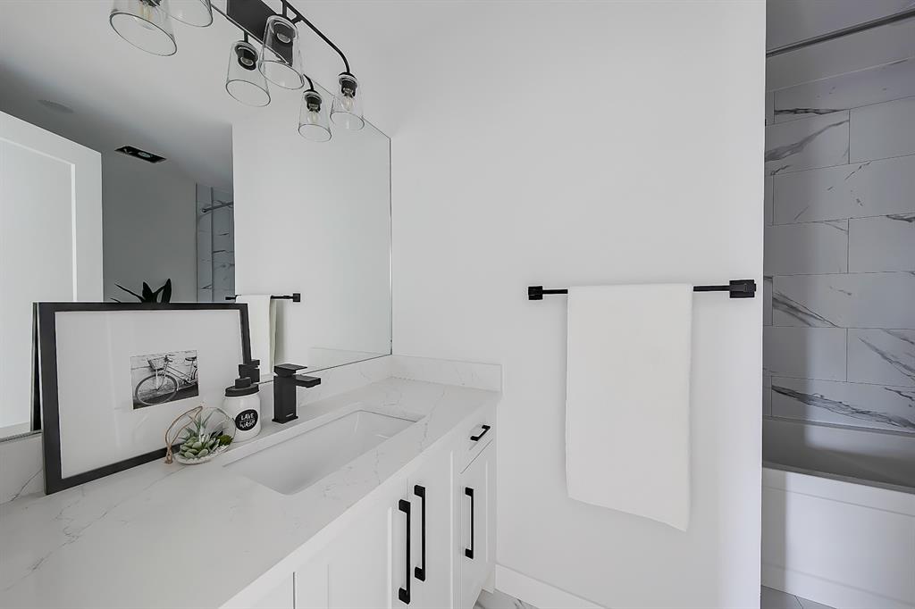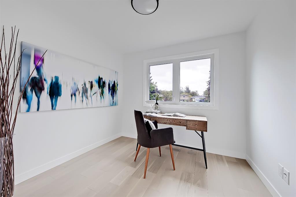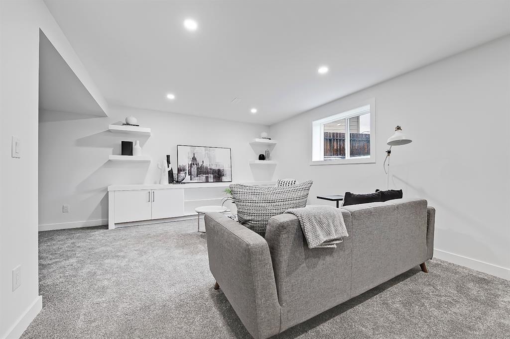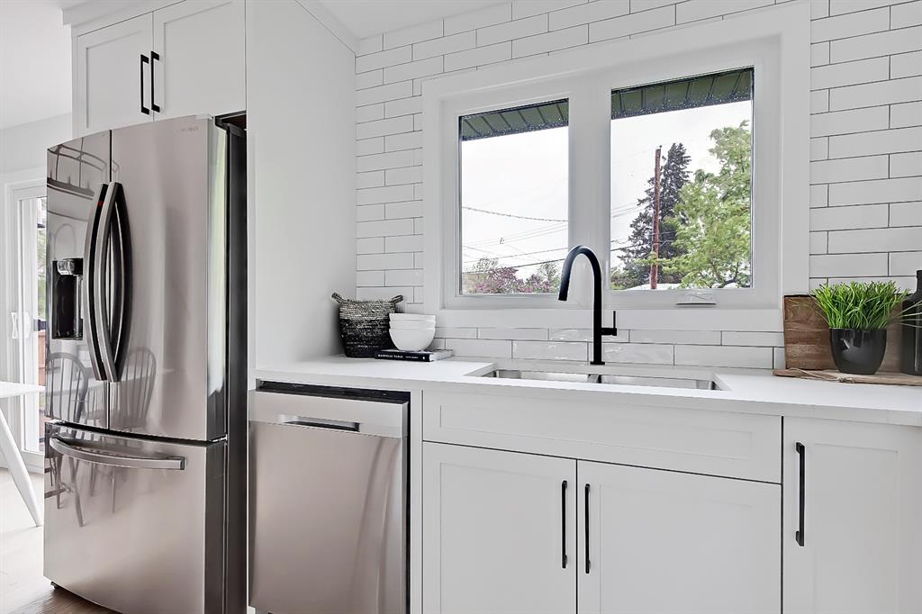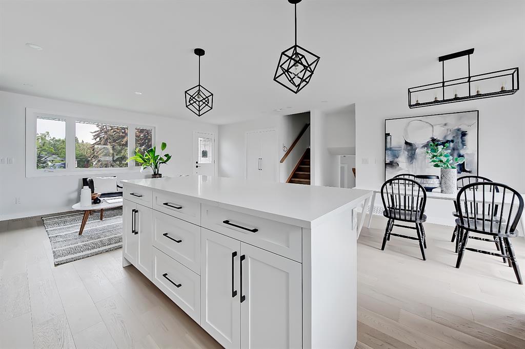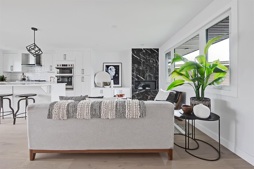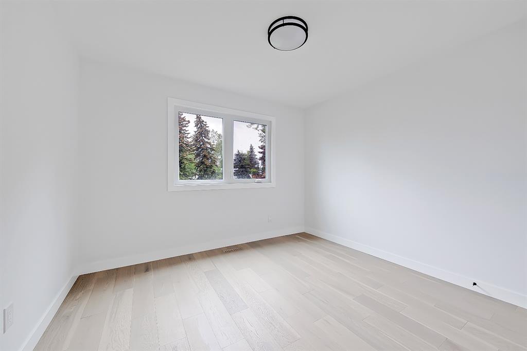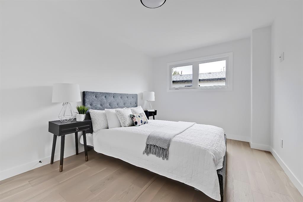 EXTENSIVELY RENOVATED | 5 BEDS + 3 BATHS | 4-LEVEL SPLIT | OVER 2,600 SQ FT OF LIVING SPACE | NEWLY BUILT OVERSIZED DOUBLE CAR GARAGE | FACING A GREEN SPACE This fully renovated home combines a well-thought-out floor plan with luxurious finishing in the sought-after community of Varsity. Only minutes away from the University of Calgary, Market Mall, University District, and LRT, this home offers a great central location in the community and is perfect for families and professionals alike. Renovated from the studs up and finished to 2022 building codes, this home offers new plumbing, electrical, insulation, heating, and exterior. The main floor features a stunning open concept design with engineered hardwood and lots of windows to make it spacious and bright. The modern, renovated kitchen includes custom shaker-style cabinetry including a large pantry, a stylish subway tile backsplash, and a stainless-steel appliance package complete w/ a French door refrigerator, gas cooktop, hood fan, built-in wall oven, microwave, and dishwasher. A large central island is an ideal addition to this space, adding breakfast bar seating, quartz countertops, and a large prep area. The formal living room is centred on an inset gas fireplace with a striking dark tile surround and built-in media. A lovely dining room offers large sliding doors that open onto a massive deck and an interlocking brick patio, perfect for relaxing or barbecuing with family and friends! The upper level also features hardwood floors, and the master suite will be the next stop you make when giving guests the tour! There’s a stunning light grey feature wall next to a large window, a custom walk-in closet, and an attractive barn door that gives you access to the private 5-pc ensuite. The ensuite is just as stunning as the rest of the house, w/ a modern vanity with dual under-mount sinks, a freestanding soaker tub, and a glass shower with a full-height tile surround. The secondary bedroom includes a built-in closet and pleasant views of the front yard and GREEN SPACE across the road. A main 4-piece bathroom close by includes matching quartz countertops, an under-mount sink, and tub/shower combo w/ full height tile. The lower level offers engineered hardwood floors, 3 additional bedrooms, a full bath, and a tiled mudroom with a built-in bench, hooks, and direct access to the backyard. Down one more flight of stairs, the basement opens into a large, bright rec room with plush carpet, a built-in media wall, and a large wet bar with custom-built cabinetry, beverage fridge, and decorative shelf. Finishing off this level is a good-sized laundry room and some extra storage. Out back, you’ll find the perfect space to spend those warm summer days, beautifully surrounded by a tall wood fence offering maximum privacy from the neighbours. The backyard also opens up onto the Varsity Acres Park – great for outdoor activities. This community and exceptional home are the perfect places to move in and call home!