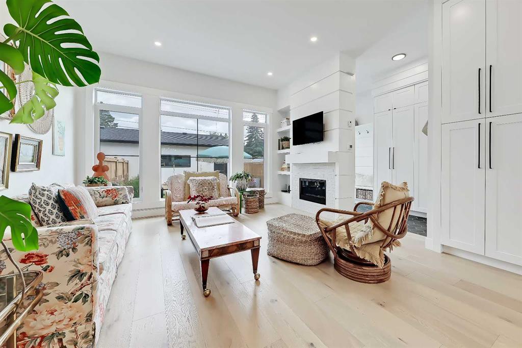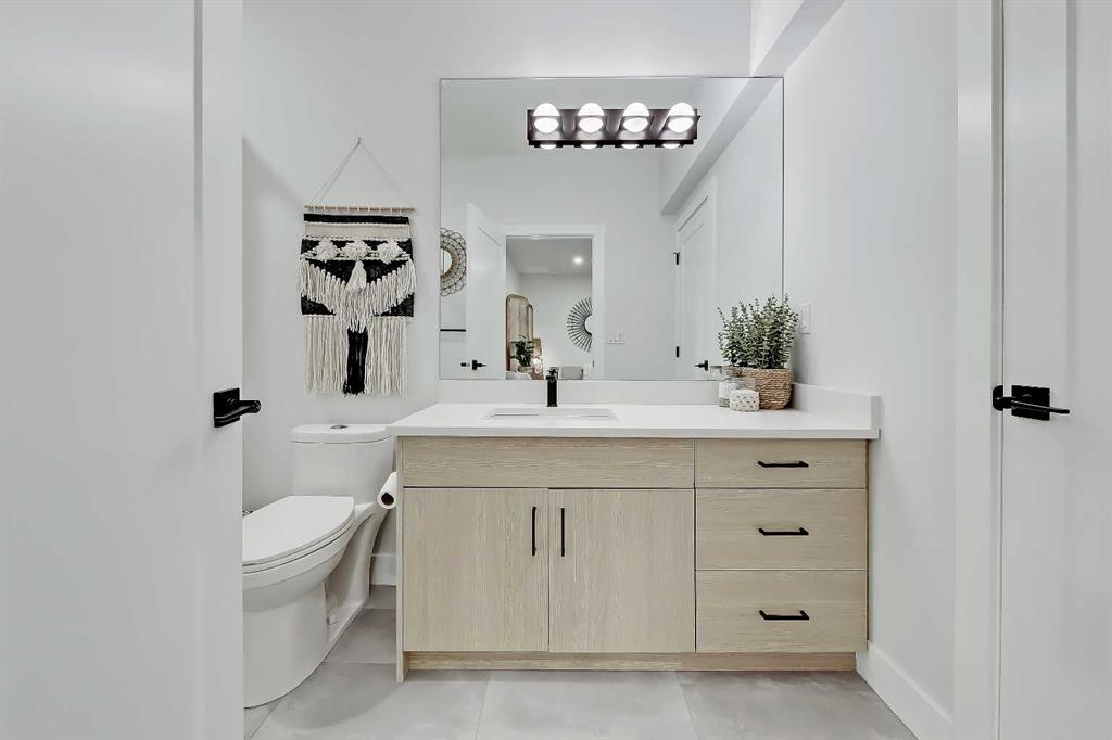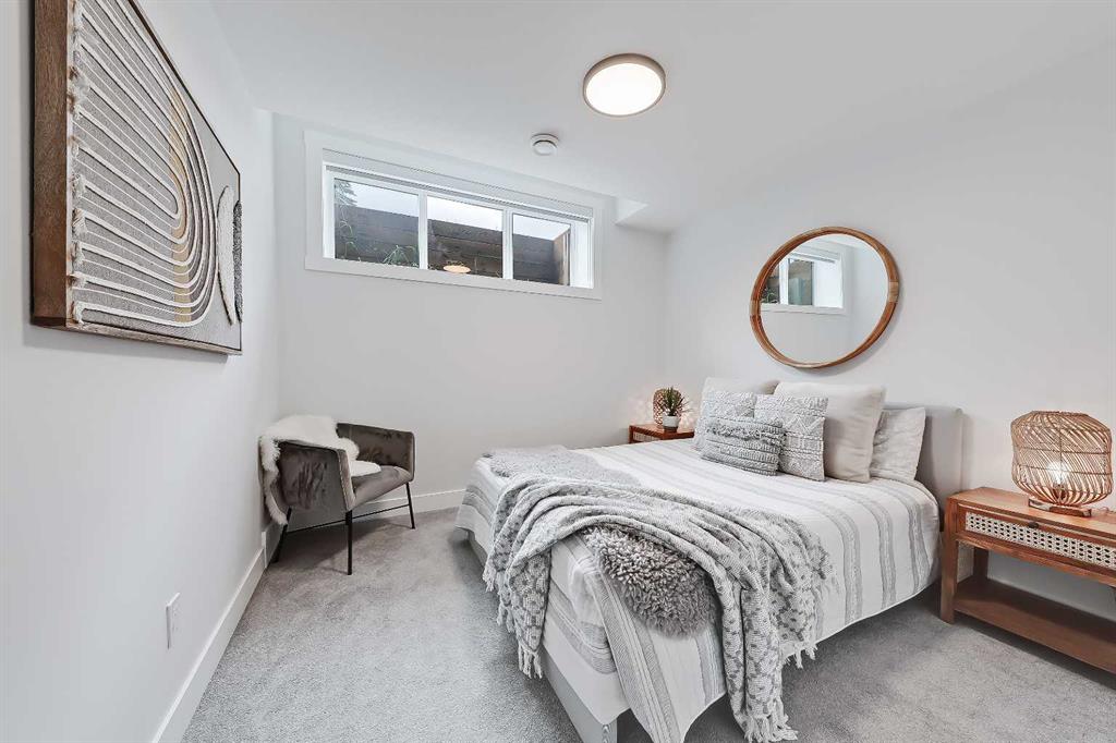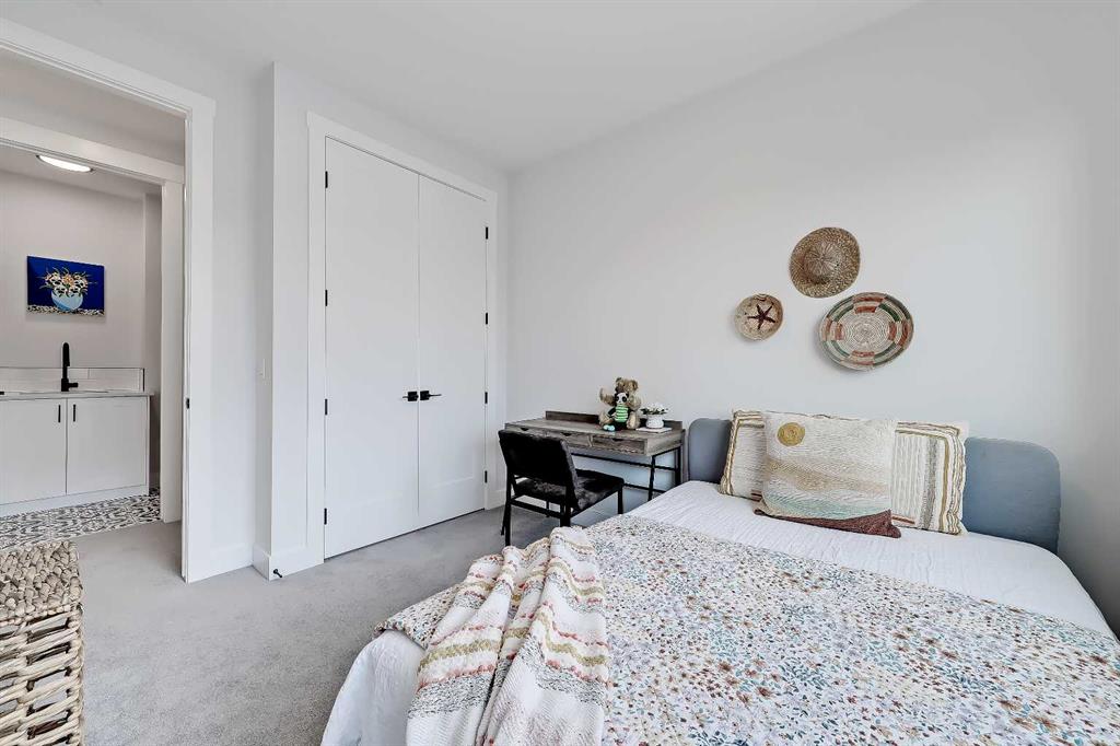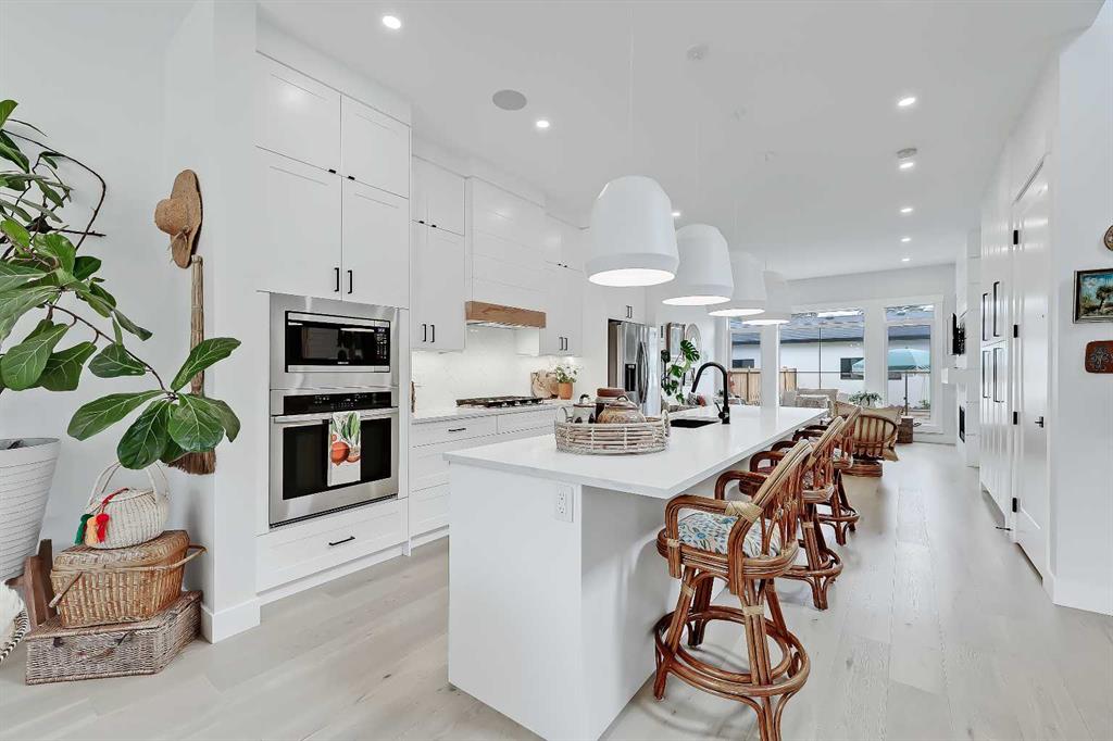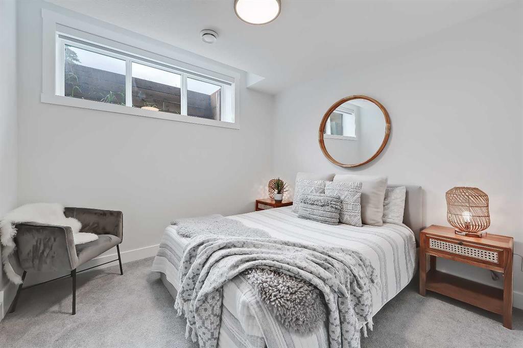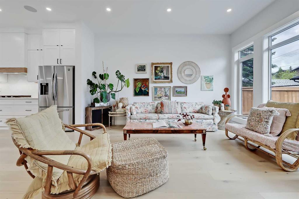 This semi-detached infill in BOWNESS will captivate you with its well thought-out layout and premium finishes, as well as its ideal inner-city location. This contemporary yet elegant home shows off w/ 10-ft painted ceilings on the main level, an upgraded kitchen, hardwood flooring on the main floor, expansive windows, and a 2-BED LEGAL LOWER SUITE. Located w/in walking distance to the Bow River and Bowness Park and a direct shot to downtown for an easy commute, this is the perfect home for families and professionals! At the front of the home, the bright formal dining room provides a view of the front yard and tons of space for a full-sized table, flowing seamlessly into the stunning kitchen upgraded w/ quartz countertops, custom shaker cabinetry w/under cabinet lighting, tons of lower drawers, and a beautiful herringbone tile backsplash. The oversized central island w/ bar seating and a-basin under-mount black granite sink w/ garburator make entertaining a breeze, along w/ the coffee station w/ a beverage fridge and shiplap wall. This stunning kitchen has a premium stainless steel appliance package, including a gas cooktop, custom hood fan, built-in wall oven and microwave, and dishwasher. The spacious living room features large West-facing windows overlooking the backyard and w/ an inset gas fireplace w/ white brick surround, mantle, feature wall, and display shelving. Discreetly tucked behind the main living area, a tiled mudroom offers a perfect entry space from the double detached garage w/ custom built-in storage and a bench, w/ access to the elegant powder room. Upstairs NEWLY INSTALLED CARPET helps showcase this space with two secondary bedrooms w/ built-in closets, a main 5-pc bath w/ dual vanity and fully tiled tub/shower combo, and a large laundry room. The beautiful primary suite features a vaulted ceiling, a large walk-in closet w/ built-in shelving and a bright window, and a luxurious 5-pc ensuite. The ensuite features tile floors, a glass shower w/ full-height surround, a free-standing tub, a modern vanity, dual under-mount sinks, and a separate water closet. An added benefit to this home is the 2-bed lower legal suite w/ a separate entrance w/ foyer, 9-ft ceilings, separate laundry, two good-sized bedrooms, and a main 4-pc bathroom w/ modern vanity w/ lots of storage and a fully tiled tub/shower combo. The central kitchen and living room space is eye-catching w/ two-tone cabinetry, tile backsplash, matte black hardware, and finished w/ a stainless-steel appliance package. This is an excellent space to use for extended family or as a legal rental property for a mortgage helper – previously rented fully furnished for $2100 a month! Other highlights of this already incredible home include dual furnaces, tankless hot water, ceiling speakers w/ three zones, rough-ins for central vacuum and a kick pan in the kitchen, and all window coverings included! All you have to do is move in!