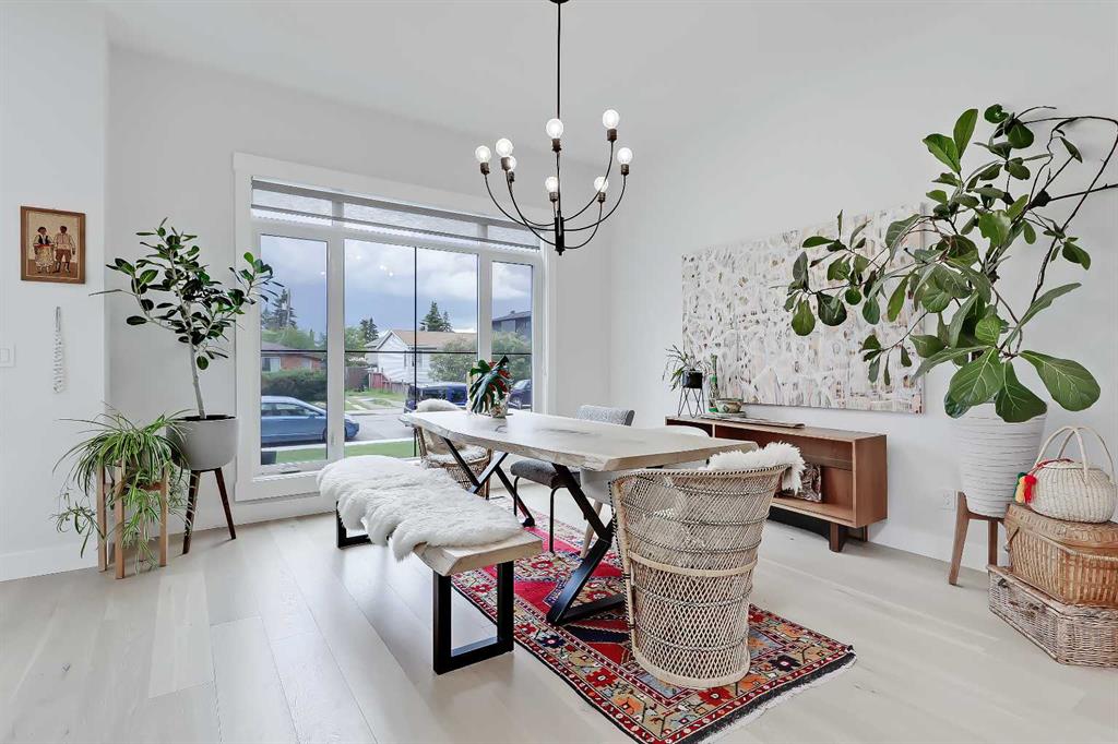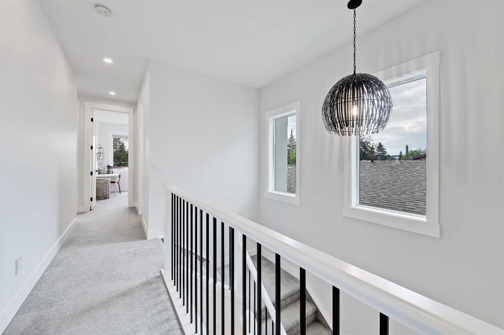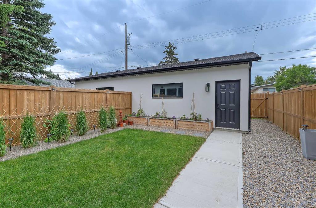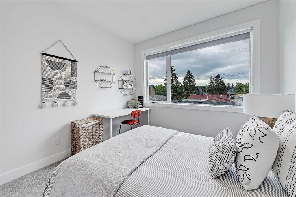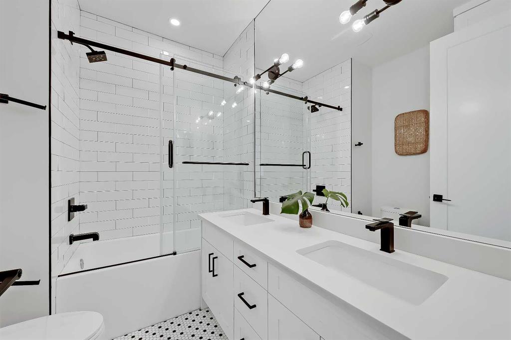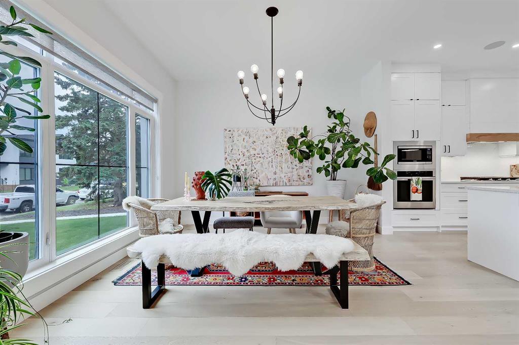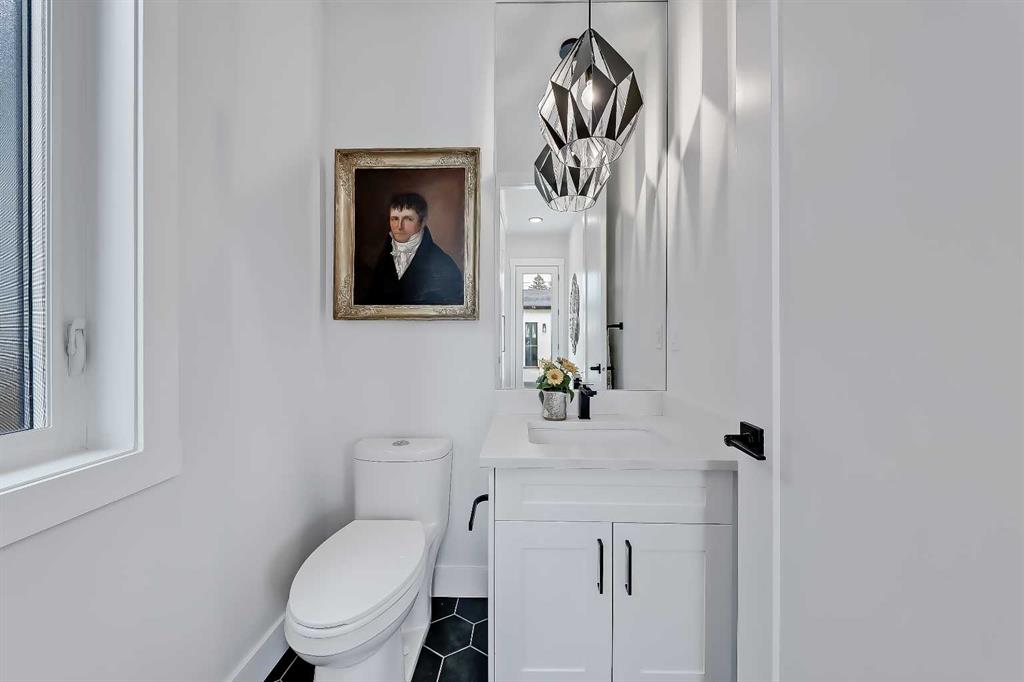 This semi-detached infill in BOWNESS will captivate you with its well thought-out layout and premium finishes, as well as its ideal inner-city location. This contemporary yet elegant home shows off w/ 10-ft painted ceilings on the main level, an upgraded kitchen, hardwood flooring on the main floor, expansive windows, and a 2-BED LEGAL LOWER SUITE. Located w/in walking distance to the Bow River and Bowness Park and a direct shot to downtown for an easy commute, this is the perfect home for families and professionals! At the front of the home, the bright formal dining room provides a view of the front yard and tons of space for a full-sized table, flowing seamlessly into the stunning kitchen upgraded w/ quartz countertops, custom shaker cabinetry w/under cabinet lighting, tons of lower drawers, and a beautiful herringbone tile backsplash. The oversized central island w/ bar seating and a-basin under-mount black granite sink w/ garburator make entertaining a breeze, along w/ the coffee station w/ a beverage fridge and shiplap wall. This stunning kitchen has a premium stainless steel appliance package, including a gas cooktop, custom hood fan, built-in wall oven and microwave, and dishwasher. The spacious living room features large West-facing windows overlooking the backyard and w/ an inset gas fireplace w/ white brick surround, mantle, feature wall, and display shelving. Discreetly tucked behind the main living area, a tiled mudroom offers a perfect entry space from the double detached garage w/ custom built-in storage and a bench, w/ access to the elegant powder room. Upstairs NEWLY INSTALLED CARPET helps showcase this space with two secondary bedrooms w/ built-in closets, a main 5-pc bath w/ dual vanity and fully tiled tub/shower combo, and a large laundry room. The beautiful primary suite features a vaulted ceiling, a large walk-in closet w/ built-in shelving and a bright window, and a luxurious 5-pc ensuite. The ensuite features tile floors, a glass shower w/ full-height surround, a free-standing tub, a modern vanity, dual under-mount sinks, and a separate water closet. An added benefit to this home is the 2-bed lower legal suite w/ a separate entrance w/ foyer, 9-ft ceilings, separate laundry, two good-sized bedrooms, and a main 4-pc bathroom w/ modern vanity w/ lots of storage and a fully tiled tub/shower combo. The central kitchen and living room space is eye-catching w/ two-tone cabinetry, tile backsplash, matte black hardware, and finished w/ a stainless-steel appliance package. This is an excellent space to use for extended family or as a legal rental property for a mortgage helper – previously rented fully furnished for $2100 a month! Other highlights of this already incredible home include dual furnaces, tankless hot water, ceiling speakers w/ three zones, rough-ins for central vacuum and a kick pan in the kitchen, and all window coverings included! All you have to do is move in!