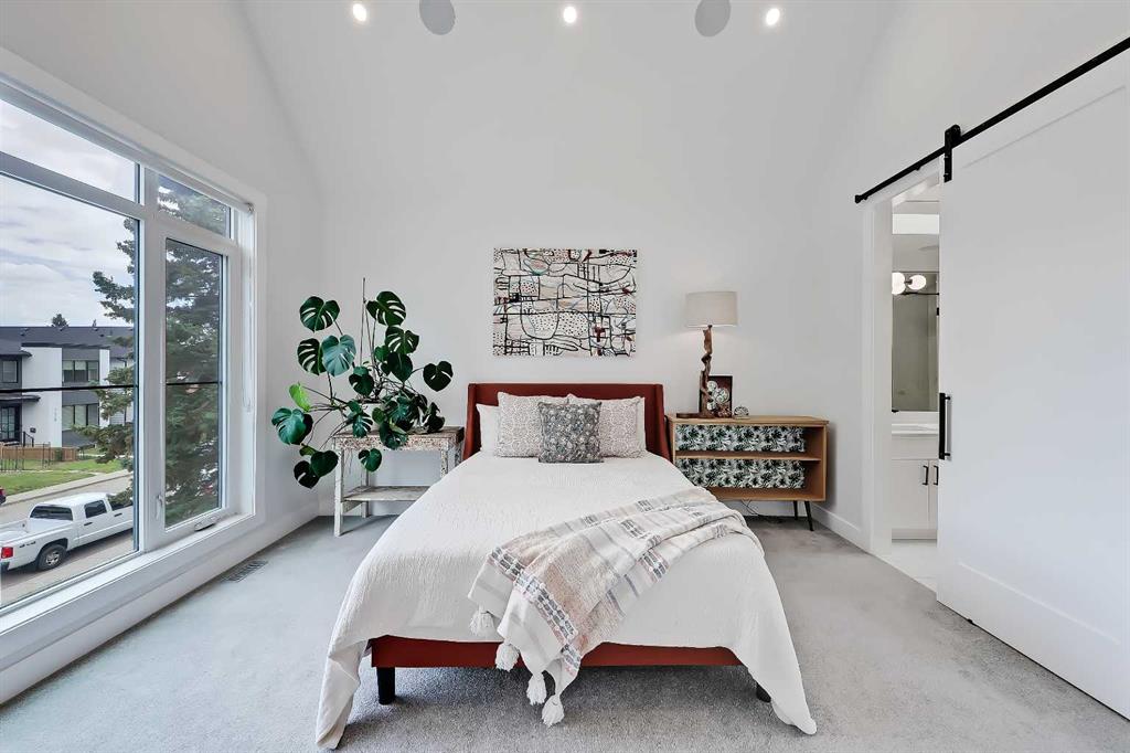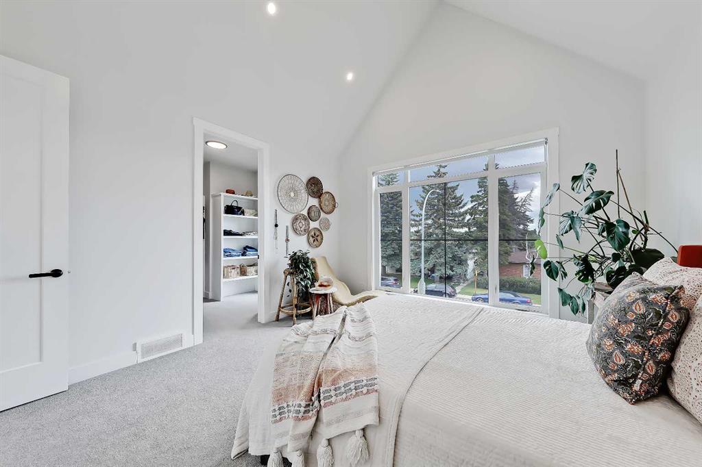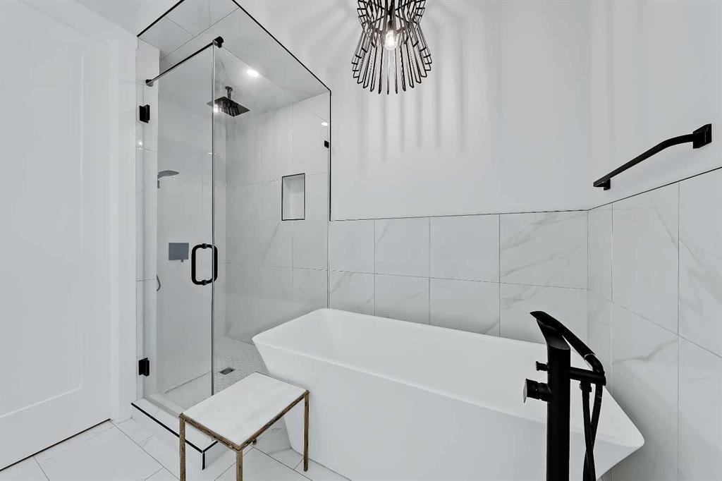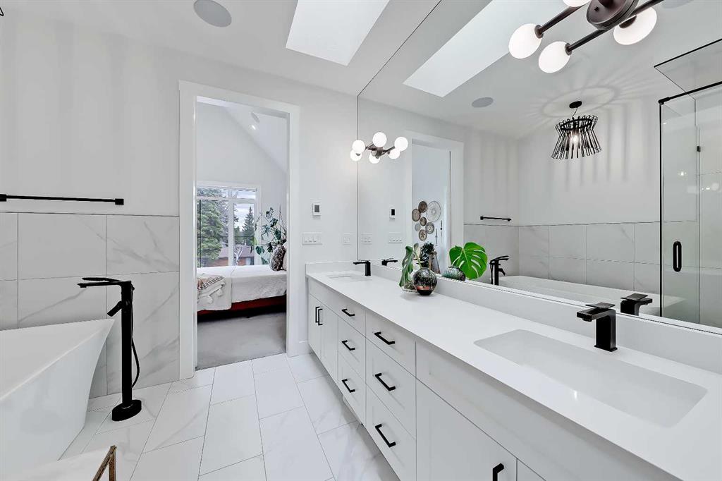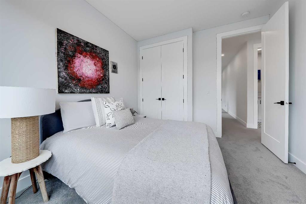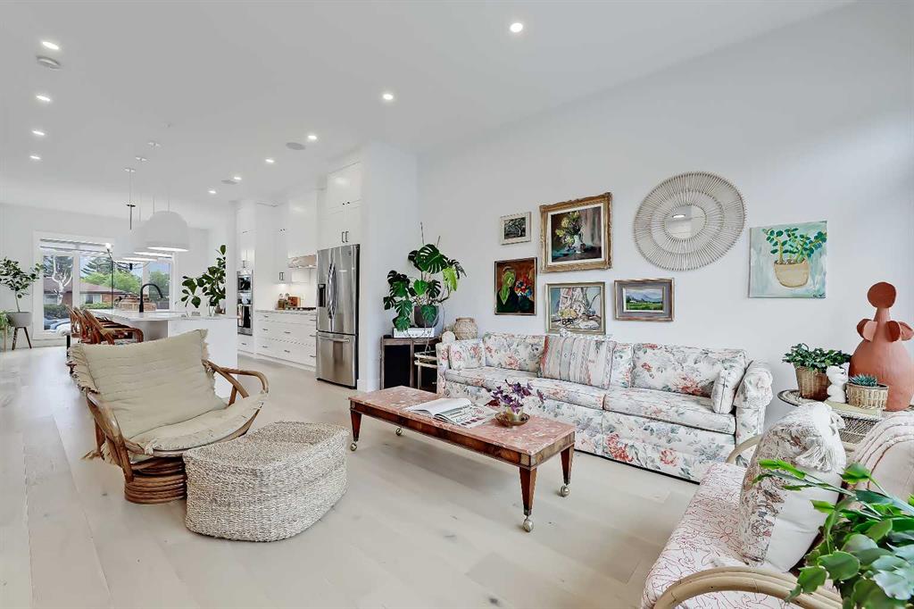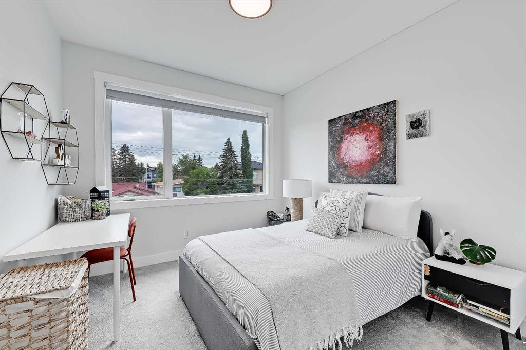 This semi-detached infill in BOWNESS will captivate you with its well thought-out layout and premium finishes, as well as its ideal inner-city location. This contemporary yet elegant home shows off w/ 10-ft painted ceilings on the main level, an upgraded kitchen, hardwood flooring on the main floor, expansive windows, and a 2-BED LEGAL LOWER SUITE. Located w/in walking distance to the Bow River and Bowness Park and a direct shot to downtown for an easy commute, this is the perfect home for families and professionals! At the front of the home, the bright formal dining room provides a view of the front yard and tons of space for a full-sized table, flowing seamlessly into the stunning kitchen upgraded w/ quartz countertops, custom shaker cabinetry w/under cabinet lighting, tons of lower drawers, and a beautiful herringbone tile backsplash. The oversized central island w/ bar seating and a-basin under-mount black granite sink w/ garburator make entertaining a breeze, along w/ the coffee station w/ a beverage fridge and shiplap wall. This stunning kitchen has a premium stainless steel appliance package, including a gas cooktop, custom hood fan, built-in wall oven and microwave, and dishwasher. The spacious living room features large West-facing windows overlooking the backyard and w/ an inset gas fireplace w/ white brick surround, mantle, feature wall, and display shelving. Discreetly tucked behind the main living area, a tiled mudroom offers a perfect entry space from the double detached garage w/ custom built-in storage and a bench, w/ access to the elegant powder room. Upstairs NEWLY INSTALLED CARPET helps showcase this space with two secondary bedrooms w/ built-in closets, a main 5-pc bath w/ dual vanity and fully tiled tub/shower combo, and a large laundry room. The beautiful primary suite features a vaulted ceiling, a large walk-in closet w/ built-in shelving and a bright window, and a luxurious 5-pc ensuite. The ensuite features tile floors, a glass shower w/ full-height surround, a free-standing tub, a modern vanity, dual under-mount sinks, and a separate water closet. An added benefit to this home is the 2-bed lower legal suite w/ a separate entrance w/ foyer, 9-ft ceilings, separate laundry, two good-sized bedrooms, and a main 4-pc bathroom w/ modern vanity w/ lots of storage and a fully tiled tub/shower combo. The central kitchen and living room space is eye-catching w/ two-tone cabinetry, tile backsplash, matte black hardware, and finished w/ a stainless-steel appliance package. This is an excellent space to use for extended family or as a legal rental property for a mortgage helper – previously rented fully furnished for $2100 a month! Other highlights of this already incredible home include dual furnaces, tankless hot water, ceiling speakers w/ three zones, rough-ins for central vacuum and a kick pan in the kitchen, and all window coverings included! All you have to do is move in!