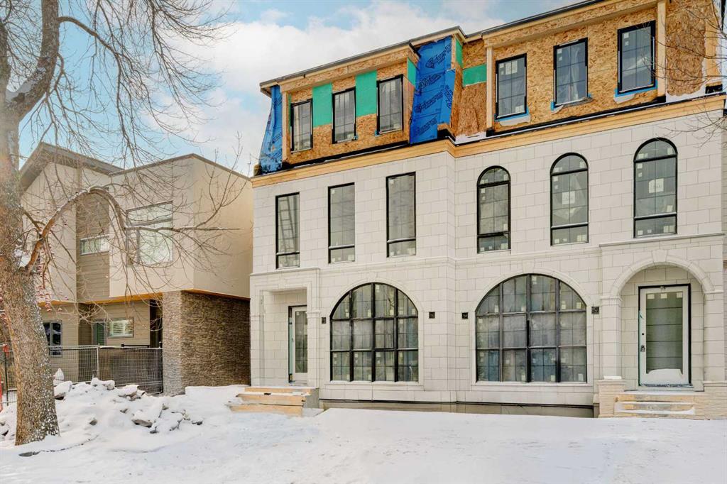Luxurious 3-STOREY SEMI-DETACHED MODERN INFILL coming soon to ALTADORE w/ a FULLY DEVELOPED 2-BED LEGAL SUITE (subject to permits & approvals by the city), MAIN FLOOR POCKET OFFICE, & THIRD FLOOR BONUS, PRIMARY SUITE, & BALCONY w/ MOUNTAIN VIEWS! Situated on a quiet street, steps away from the Flames Community Arenas and Playground & minutes to Central Memorial High School, Bishop Carrol High School, the Marda Loop shopping district, & Mount Royal! The foyer enjoys a built-in closet & bench w/ hooks w/ direct access to the front dining room, which enjoys large East-facing windows overlooking the front yard. Past the main floor office w/ built-in desk & upper shelving, the central kitchen is sure to impress w/ sophisticated finishes & top-of-the-line upgrades, including custom ceiling-height cabinetry, a built-in pantry, a full-height backsplash, & an oversized island ideal for daily life & entertaining w/ flush bar seating. The upgraded S/S appliance package includes a gas range, custom hood fan, a built-in microwave drawer, dishwasher, & a French-door refrigerator. The living area centres on an inset gas fireplace w/ full-height tile & custom millwork. Sliding glass doors provide direct access to the West back deck & fully fenced & landscaped yard, while a large mudroom w/ a built-in closet & a bench w/ hooks is great for you to keep everyone organized when entering the home from the double detached garage. The powder room is neatly tucked away off the mudroom for privacy. The second level features painted ceilings, engineered hardwood flooring, bonus room, two junior suites w/ walk-in closets and 3-pc ensuites, & a tiled laundry room. Up another level, you’re in the spacious third-floor PRIMARY RETREAT. A true retreat space, you have a large bedroom with TWO walk-in closets, an elegant 5-pc ensuite with barn door entrance, soaker tub, and walk-in shower and large sliding glass doors to take you out to your fully private BALCONY with mountain views! And don’t forget the bonus room AND private home office on this level! The living space continues into the LEGAL 2-BED LOWER SUITE (subject to permits & approvals by the city) w/ private access, dedicated laundry, contemporary kitchen, spacious living room, & a modern 4-pc bath w/ fully tiled tub/shower combo. Altadore is one of Calgary’s most coveted inner-city communities, consistently topping wish lists for its blend of vibrant urban living and family-friendly atmosphere. Nestled near the Elbow River, this neighbourhood offers an unbeatable lifestyle with quick access to parks, top schools, and trendy Marda Loop amenities!