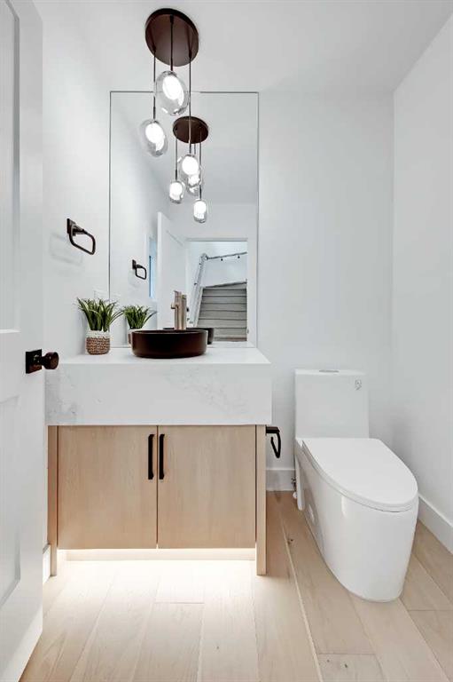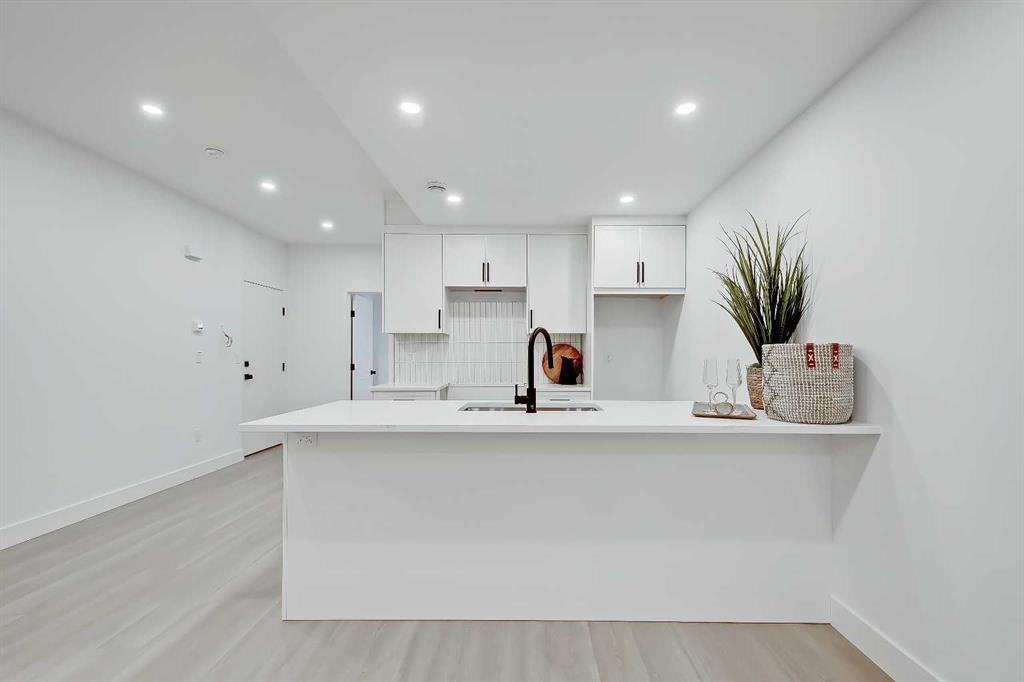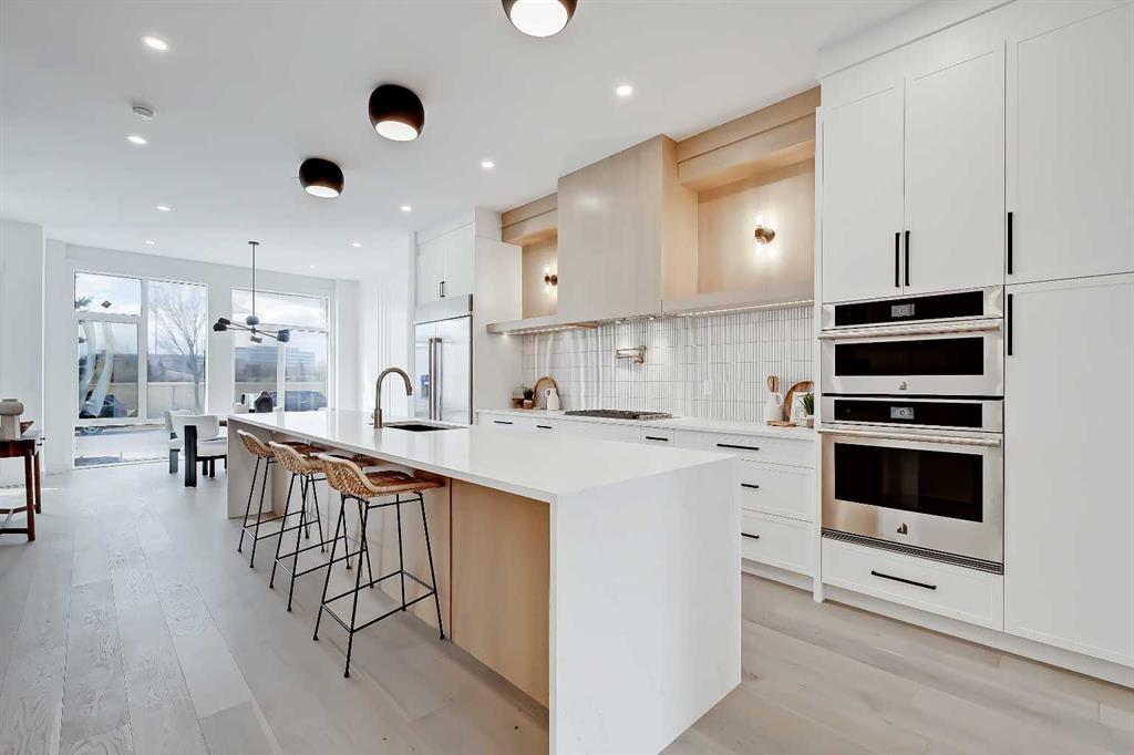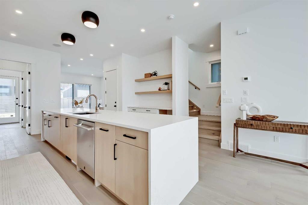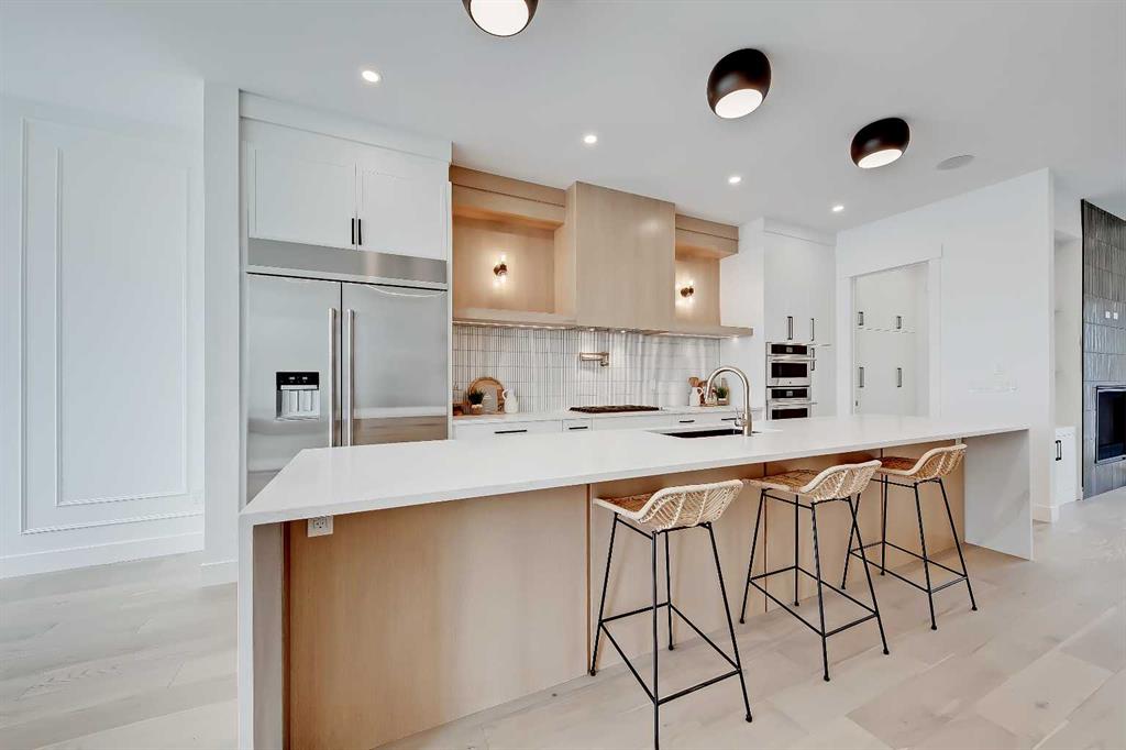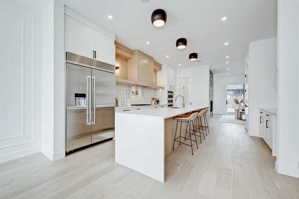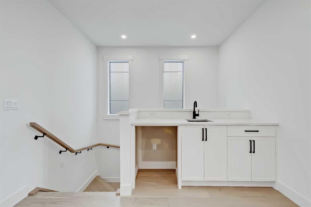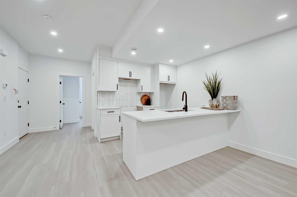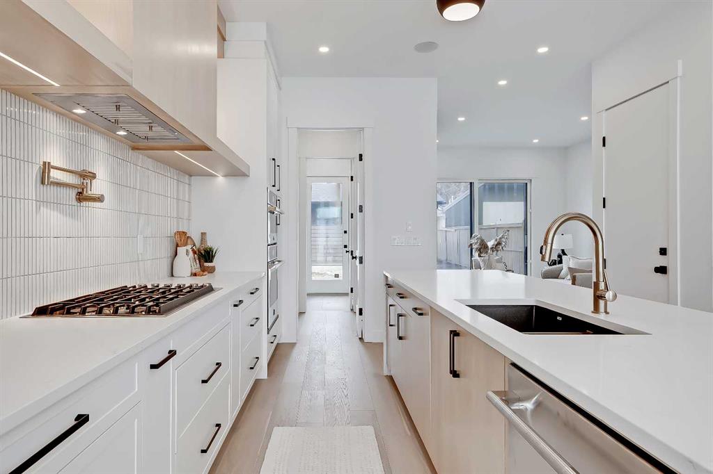 Don’t miss your chance to own a BRAND-NEW SEMI-DETACHED INFILL with a 3-BED, 2-BATH LEGAL BASEMENT SUITE in ALTADORE! This infill by Alliance Custom Homes is now MOVE-IN READY and offers top-notch finishes & features, including 3,130 sq ft of developed living space across 6 beds, 4.5 baths, a walkthrough pantry, upper bonus room/office space w/ wet bar, and a highly desirable THREE-BED LEGAL BASEMENT SUITE (subject to permits & approval by city). This location is highly sought-after, and homes in this area don’t stay on the market long. Altadore is the ideal location for young families looking to be close to parks, schools, and amenities – you’re only a couple of blocks away from Flander’s Park, My Favourite Ice Cream Shoppe, and Dr. Oakley Playground, plus you’re within easy walking distance to the entire Marda Loop shopping district, River Park and Sandy Beach, and the Glenmore Athletic Fields and Aquatic Centre! The neighbourhood is only 5 km from the downtown core and has public and separate schools, junior high and high schools nearby, and Mount Royal University to the south. The open-concept main floor features a chef’s inspired kitchen with ceiling-height custom cabinetry, a built in coffee station with extra storage & decorative shelves, a modern tile backsplash, designer lighting, massive island with ample bar seating with waterfall edges, plus a walkthrough pantry for an ultra-lux aesthetic. The spacious living room centres on a stunning gas fireplace feature wall with a full-height tile surround & built-in cabinetry. Off of this space, you can easily access the rear deck & backyard through dual glass sliding doors, nicely combining your indoor/outdoor living spaces. Finishing off this level, the large dining room offers a custom feature wall and two oversized windows, allowing lots of natural light into the home. Upstairs, the elegant primary suite features a soaring vaulted ceiling, large windows, & a walk-in closet with ample storage. The spa-inspired ensuite is elegantly finished with heated tile floors, quartz countertops, dual undermount sinks, a stand-alone soaker tub, and a stunning glass shower with a built-in bench. Two additional good-sized bedrooms open onto a large BONUS ROOM or OFFICE SPACE, perfect for your family’s needs, with a built-in media cabinet and a full wet bar. A 4-pc bathroom with tile floors, a modern vanity and a fully tiled tub/shower combo nicely finishes off the upper floor. With its own private, secure side entrance, the legal basement suite (subject to permits & approval by the city) is an excellent mortgage helper or mother-in-law suite! This open-concept space features a modern kitchen w/ custom cabinetry, quartz countertops, a good-sized living room, a separate laundry room w/ sink, 3 bedrooms, and 2 full bathrooms! Outside, the East-facing backyard is fully fenced w/ a double detached garage, and the front enjoys park views! Don’t wait to come and see this beautiful house and make it your family’s ideal home today!