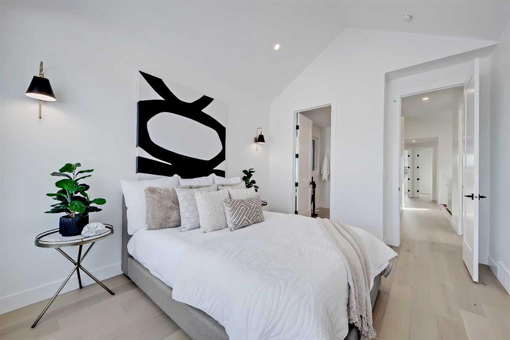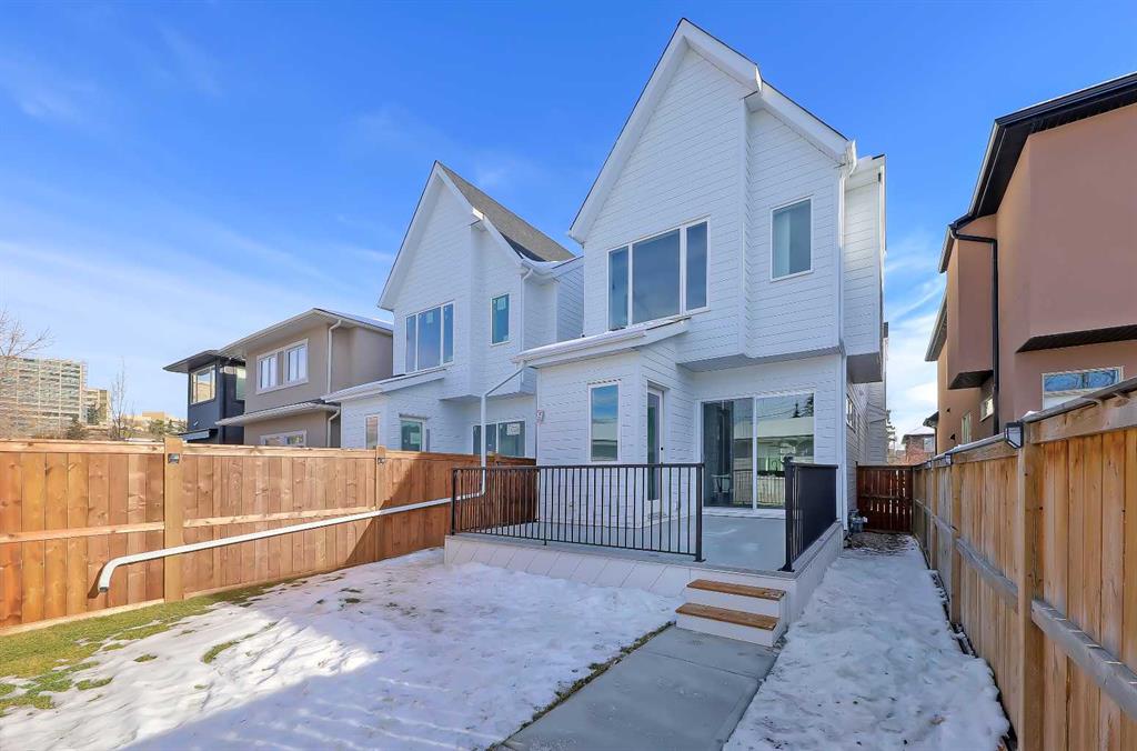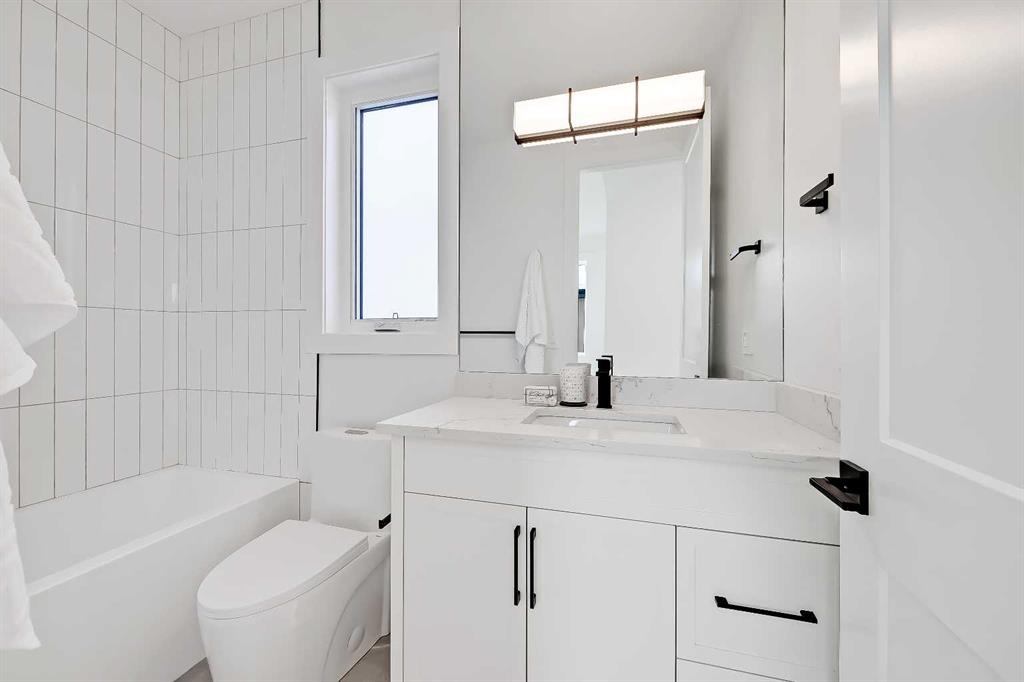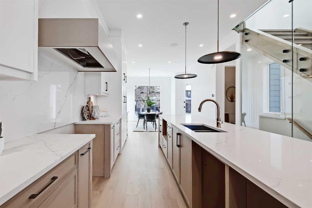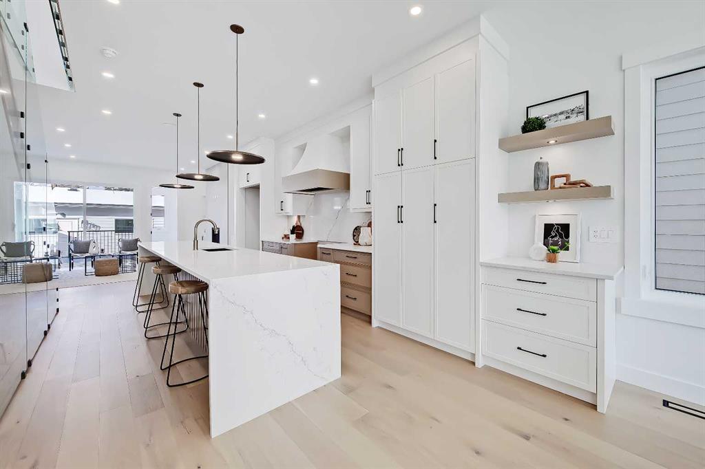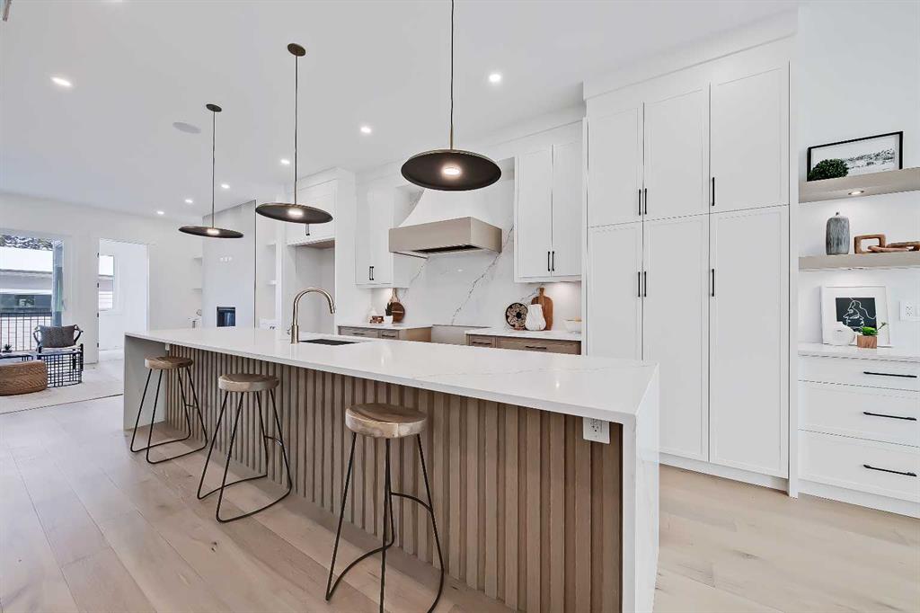 MOVE IN TODAY! A true reflection of what a modern farmhouse should be! This 2-storey DETACHED infill in PARKDALE is a stunning home built with outstanding detail and quality. This home provides over 2,664 sq ft of total finished living space, 3 bedrooms above grade, a fully developed basement, and features luxury upgrades and finishes throughout. The open-concept main floor features 10-ft ceilings, large exterior windows, and wide-plank engineered hardwood flooring. The kitchen sits at the center of the bright main level, drawing in the eye with quartz countertops, stunning custom cabinetry with soft-close hardware, and a full-height tile backsplash. The 14-ft oversized central island gives you lots of extra space for day-to-day prep, ample bar seating, and a dual basin under-mounted sink. And to top it all off, this upscale kitchen comes with a premium stainless steel appliance package – a gas cooktop, built-in hood fan, French door refrigerator, built-in wall oven and microwave, and dishwasher. A formal dining area overlooks the East facing front yard, while the rear living room creates a cozy yet spacious atmosphere and features an inset gas fireplace and a built-in media centre. Easily step out to the rear deck and backyard through dual glass sliding doors, nicely combining your indoor/outdoor living spaces. Rounding off the main floor is a simple but elegant 2-piece powder room and large mudroom with a built-in bench and closet! Upstairs, you’ll find 2 good-sized bedrooms with custom closets, a full bathroom, and a large laundry room with a laundry sink. The primary retreat features soaring vaulted ceilings, oversized West-facing windows, and a walk-in closet with custom millwork. The spa-inspired ensuite is elegantly finished with tile floors, dual vanities with a built-in make-up desk, a stand-alone soaker tub, a large curbless shower with a built-in bench and rough-ins for steam. Downstairs, the lower level is fully developed with a large rec room and full wet bar featuring quartz counters, custom cabinetry, and a bar sink. The 4-pc bathroom has quartz counters and a tub/shower combo easily accessible from the guest bedroom. And not overlooked – storage space! There are dual storage areas in the basement! This home also comes with additional rough-ins for a security system, and air conditioning. Located in family-friendly Parkdale, you’ll enjoy inner-city living at its finest. Across the street is the Parkdale Community Association for year-round activities, and the Bow River and the pathway system are only 2-blocks away. Local favourite Lazy Loaf and Kettle is a 2-minute walk, perfect for afternoon lunch after enjoying time by the river! Plus, you have shopping, amenities, and major thoroughfares, making living and commuting a breeze! MOVE IN TODAY!