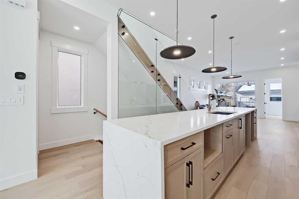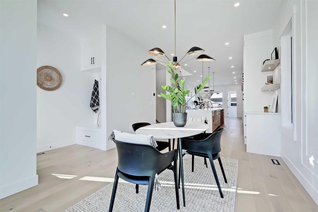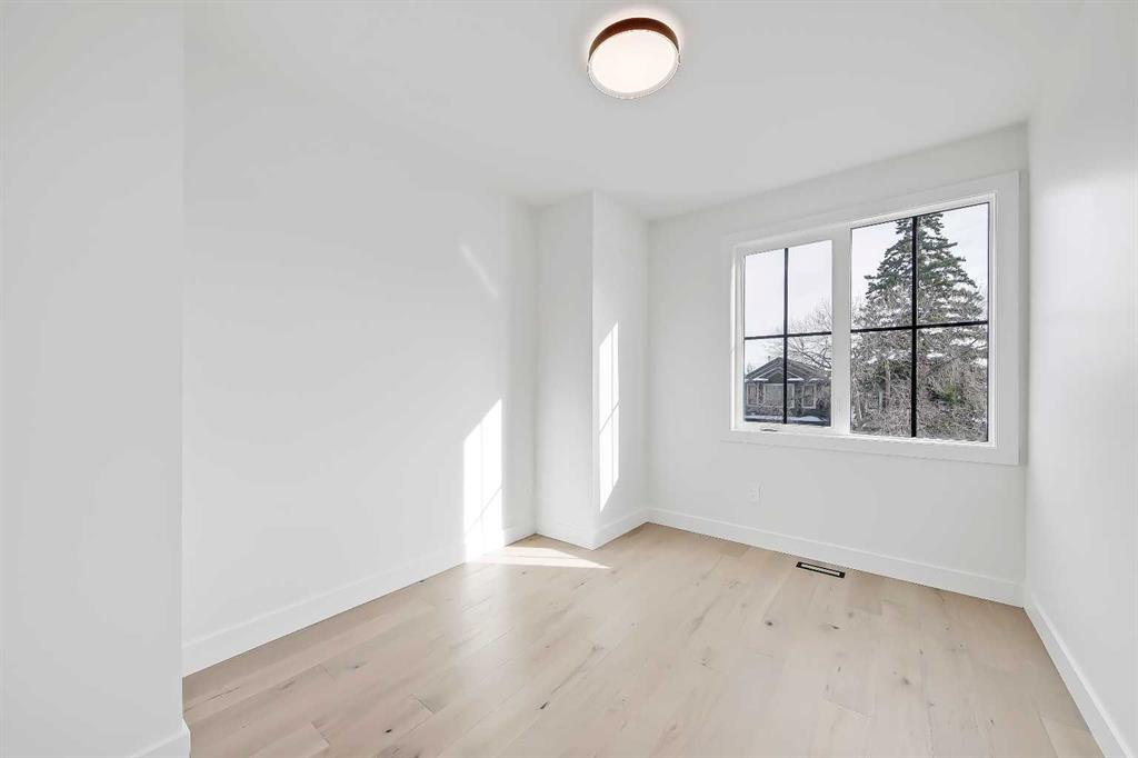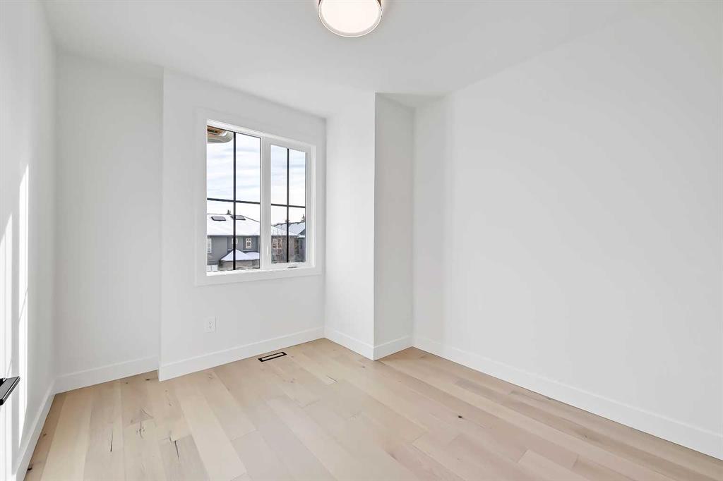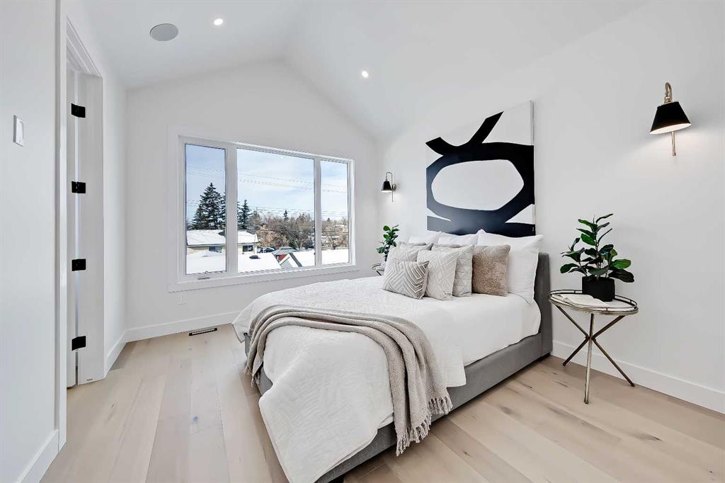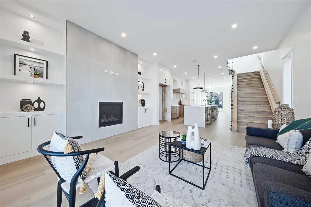 MOVE IN TODAY! A true reflection of what a modern farmhouse should be! This 2-storey DETACHED infill in PARKDALE is a stunning home built with outstanding detail and quality. This home provides over 2,664 sq ft of total finished living space, 3 bedrooms above grade, a fully developed basement, and features luxury upgrades and finishes throughout. The open-concept main floor features 10-ft ceilings, large exterior windows, and wide-plank engineered hardwood flooring. The kitchen sits at the center of the bright main level, drawing in the eye with quartz countertops, stunning custom cabinetry with soft-close hardware, and a full-height tile backsplash. The 14-ft oversized central island gives you lots of extra space for day-to-day prep, ample bar seating, and a dual basin under-mounted sink. And to top it all off, this upscale kitchen comes with a premium stainless steel appliance package – a gas cooktop, built-in hood fan, French door refrigerator, built-in wall oven and microwave, and dishwasher. A formal dining area overlooks the East facing front yard, while the rear living room creates a cozy yet spacious atmosphere and features an inset gas fireplace and a built-in media centre. Easily step out to the rear deck and backyard through dual glass sliding doors, nicely combining your indoor/outdoor living spaces. Rounding off the main floor is a simple but elegant 2-piece powder room and large mudroom with a built-in bench and closet! Upstairs, you’ll find 2 good-sized bedrooms with custom closets, a full bathroom, and a large laundry room with a laundry sink. The primary retreat features soaring vaulted ceilings, oversized West-facing windows, and a walk-in closet with custom millwork. The spa-inspired ensuite is elegantly finished with tile floors, dual vanities with a built-in make-up desk, a stand-alone soaker tub, a large curbless shower with a built-in bench and rough-ins for steam. Downstairs, the lower level is fully developed with a large rec room and full wet bar featuring quartz counters, custom cabinetry, and a bar sink. The 4-pc bathroom has quartz counters and a tub/shower combo easily accessible from the guest bedroom. And not overlooked – storage space! There are dual storage areas in the basement! This home also comes with additional rough-ins for a security system, and air conditioning. Located in family-friendly Parkdale, you’ll enjoy inner-city living at its finest. Across the street is the Parkdale Community Association for year-round activities, and the Bow River and the pathway system are only 2-blocks away. Local favourite Lazy Loaf and Kettle is a 2-minute walk, perfect for afternoon lunch after enjoying time by the river! Plus, you have shopping, amenities, and major thoroughfares, making living and commuting a breeze! MOVE IN TODAY!