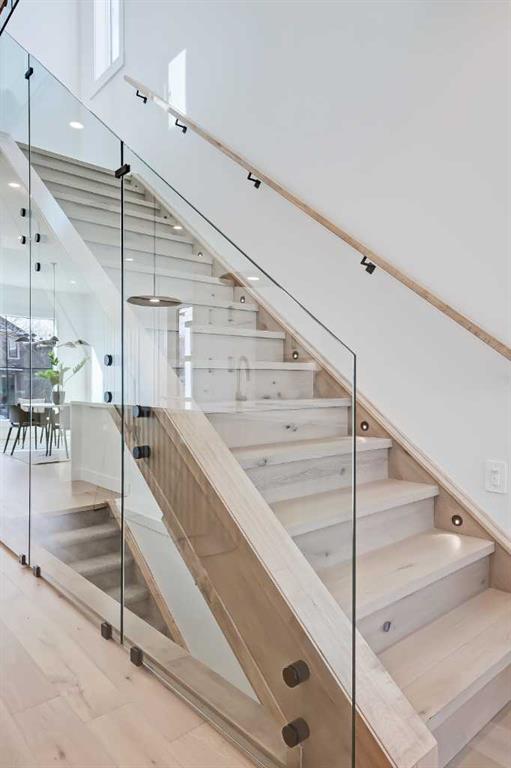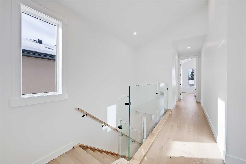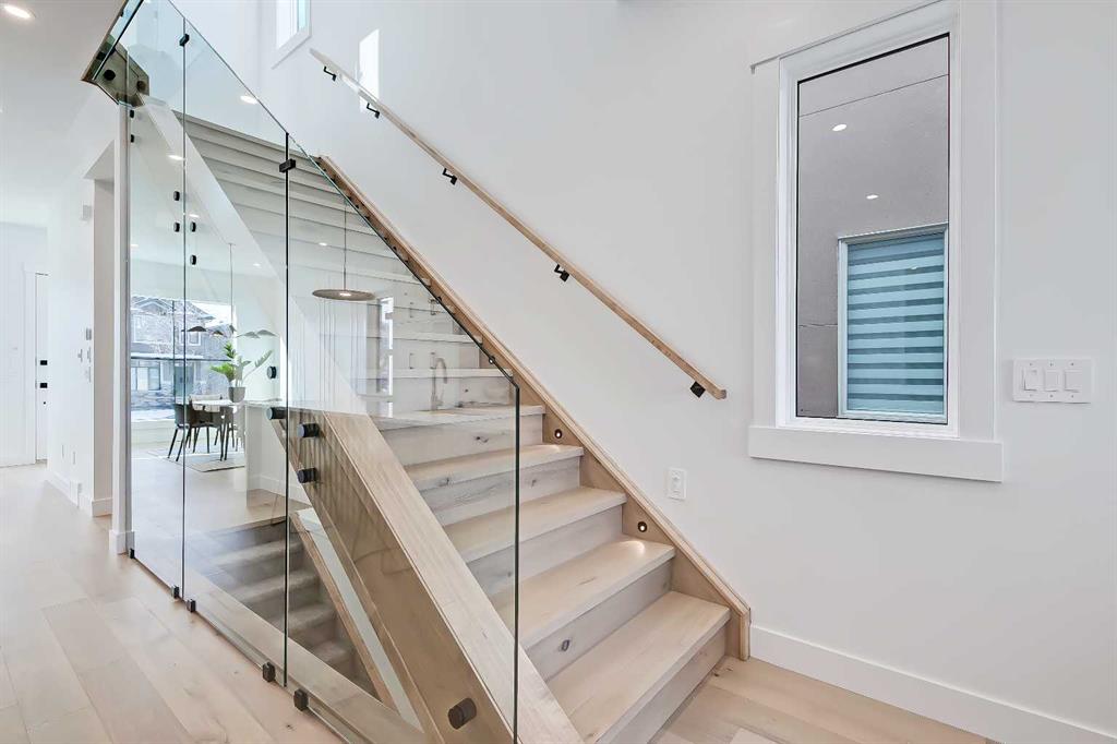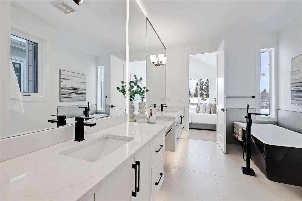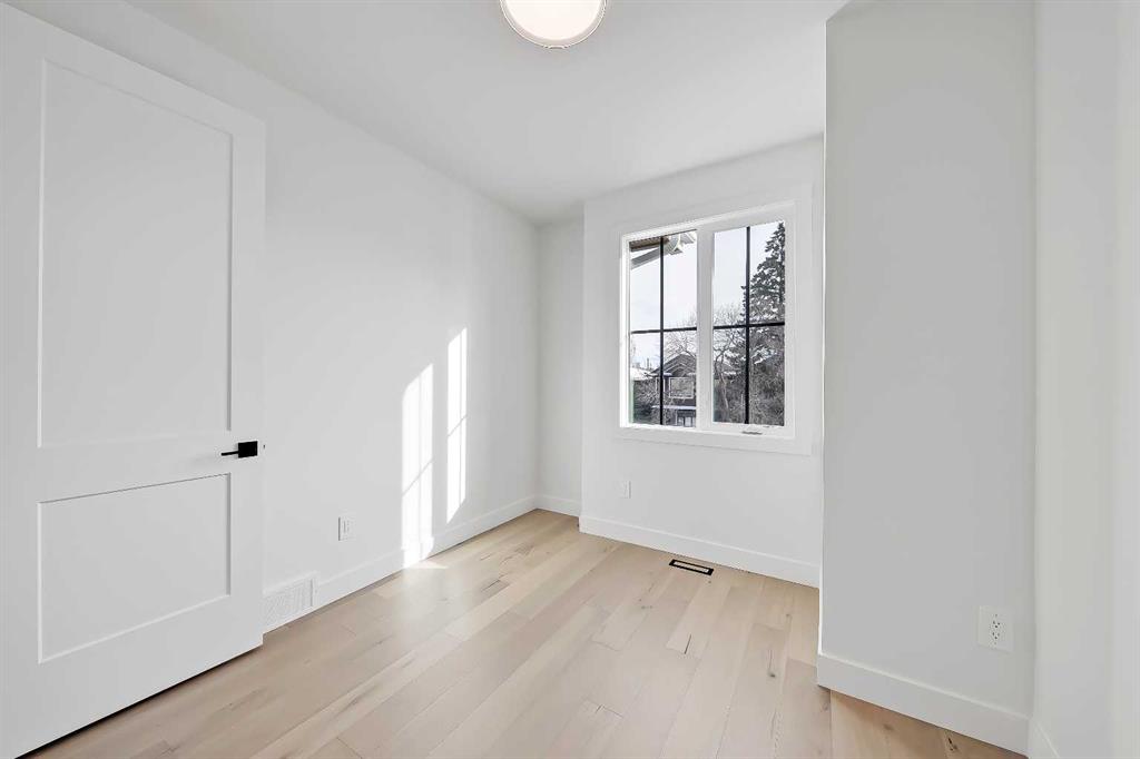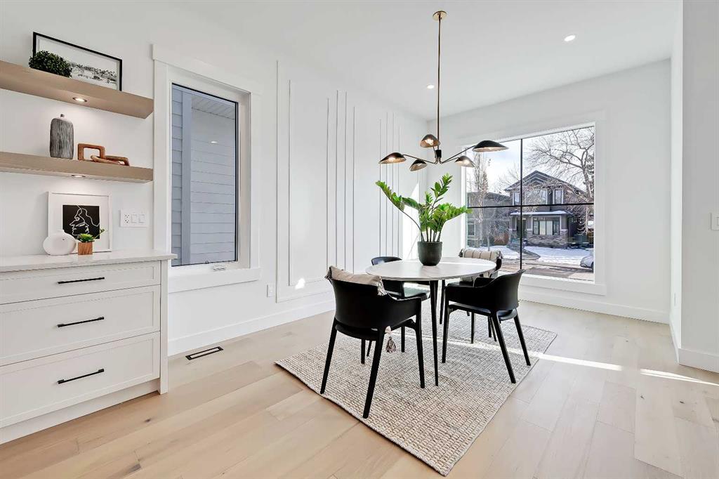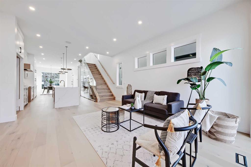 MOVE IN TODAY! A true reflection of what a modern farmhouse should be! This 2-storey DETACHED infill in PARKDALE is a stunning home built with outstanding detail and quality. This home provides over 2,664 sq ft of total finished living space, 3 bedrooms above grade, a fully developed basement, and features luxury upgrades and finishes throughout. The open-concept main floor features 10-ft ceilings, large exterior windows, and wide-plank engineered hardwood flooring. The kitchen sits at the center of the bright main level, drawing in the eye with quartz countertops, stunning custom cabinetry with soft-close hardware, and a full-height tile backsplash. The 14-ft oversized central island gives you lots of extra space for day-to-day prep, ample bar seating, and a dual basin under-mounted sink. And to top it all off, this upscale kitchen comes with a premium stainless steel appliance package – a gas cooktop, built-in hood fan, French door refrigerator, built-in wall oven and microwave, and dishwasher. A formal dining area overlooks the East facing front yard, while the rear living room creates a cozy yet spacious atmosphere and features an inset gas fireplace and a built-in media centre. Easily step out to the rear deck and backyard through dual glass sliding doors, nicely combining your indoor/outdoor living spaces. Rounding off the main floor is a simple but elegant 2-piece powder room and large mudroom with a built-in bench and closet! Upstairs, you’ll find 2 good-sized bedrooms with custom closets, a full bathroom, and a large laundry room with a laundry sink. The primary retreat features soaring vaulted ceilings, oversized West-facing windows, and a walk-in closet with custom millwork. The spa-inspired ensuite is elegantly finished with tile floors, dual vanities with a built-in make-up desk, a stand-alone soaker tub, a large curbless shower with a built-in bench and rough-ins for steam. Downstairs, the lower level is fully developed with a large rec room and full wet bar featuring quartz counters, custom cabinetry, and a bar sink. The 4-pc bathroom has quartz counters and a tub/shower combo easily accessible from the guest bedroom. And not overlooked – storage space! There are dual storage areas in the basement! This home also comes with additional rough-ins for a security system, and air conditioning. Located in family-friendly Parkdale, you’ll enjoy inner-city living at its finest. Across the street is the Parkdale Community Association for year-round activities, and the Bow River and the pathway system are only 2-blocks away. Local favourite Lazy Loaf and Kettle is a 2-minute walk, perfect for afternoon lunch after enjoying time by the river! Plus, you have shopping, amenities, and major thoroughfares, making living and commuting a breeze! MOVE IN TODAY!