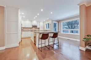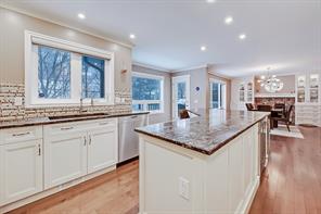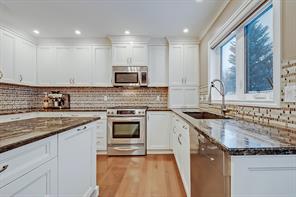 RARE FIND IN SPRINGBANK HILL! This 5 bedroom, 4.5 bathroom nicely updated and maintained home backs onto a green space/play park and features numerous upgrades throughout. Springbank Hill is a fantastic community with parks, playgrounds, schools, and amenities nearby. It’s ideally situated on the West side of Calgary for easy access to outdoor pursuits in Canmore and Banff, plus it’s ideally located for easy access to downtown – the best of both worlds. Equipped with over 2,300 sq ft across all levels, the main level displays a large foyer with ceilings open to the second floor, a main floor office, and large main living spaces. The open floor plan complements all the finishings, including hardwood floors, crown mouldings, 9’ ceilings, LED pot lights, newer double and triple-paned windows, and beautiful built-ins in the living and dining rooms. A renovated custom kitchen features an oversized central island with a beverage/wine fridge, custom granite counters, premium appliances, a dual basin undermount sink that overlooks the yard/greenspace, custom ceiling height cabinets, and a gas range. The luxurious primary suite has a large walk-in closet and a beautiful 4pc ensuite with a walk-in shower, a soaker tub, and a makeup counter. Three additional bedrooms share the main 4pc bathroom with a tub/shower combo. The basement was professionally developed and features a large rec room, a formal laundry room, a 5th bedroom, TONS OF STORAGE, and a 3pc bathroom. Other upgrades of this home include central air, newer triple and double-paned windows, no maintenance landscaping with AstroTurf backyard, maintained roof (inspected in 2019), new garage door opener (2019), new high-efficiency multistage furnace with 3rd generation NEST thermostat (2020), a new Samsung washing machine (Dec 2021), a full house water softener, a KRAUS commercial kitchen faucet, Ring Pro Doorbell, and new indoor and outdoor light fixtures. This location is a quick 6-minute drive to shopping and amenities at Signal Hill Centre and Westhills Towne Centre, and it’s only an 11-minute bike ride to the idyllic Griffith Woods Park! Not to mention, it’s close to an off-leash area for your furry friends and located next to the Clearwater Tipi Park, which is an excellent spot for river walks and family adventures! Nearby schools include Ambrose University, Menno Simons Christian School, and Griffith Woods School. You are going to love this Springbank Hill location!