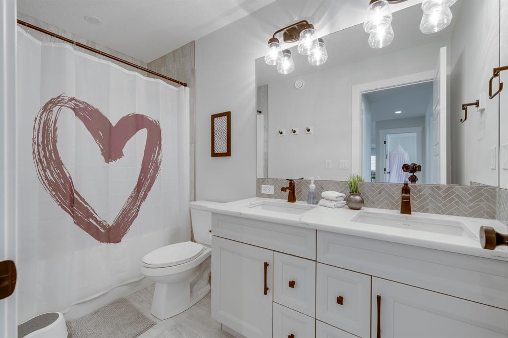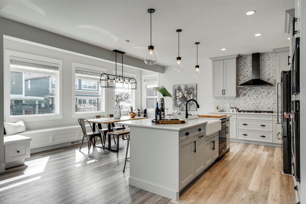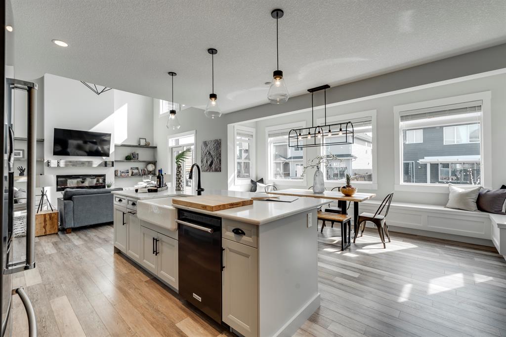 Live the Lake Lifestyle enjoying year-round lake activities in this welcoming, family-friendly neighbourhood! Enjoy 2,965 sq ft of space, plus a fully finished basement, in this beautiful 5-bed home in Auburn Bay! Situated a quick 10-min walk to the lake on a quiet side street, where kids playing with their neighbours is not an uncommon scene. Community walking paths, two playgrounds, and a lovely nature pond are steps from your front door, along with Prince of Peace School and Auburn Bay School. Co-op, Sobeys, Save-On, and Superstore surround the neighbourhood, making weekly groceries and popping in for bread on the way home extremely easy, with other convenient shopping and amenities nearby. Built in 2020 by Morrison Homes, this stunning upgraded floorplan is sure to impress and feels brand new! The large open-concept main floor features a modern, clean kitchen with designer tile backsplash, shaker-style cabinetry, a 5-range gas stove top, a large central island with bar seating, quartz counters, and a breakfast nook. The rear mudroom features a built-in bench with hooks and walkthrough access to the kitchen and pantry for everyday convenience. A built-in counter and desk are perfect for weekly meal planning or extra workspace, too! The living room is open-to-above, meaning there are TWO STORIES OF WINDOWS, flooding the entire floor in the bright sun all year long. A built-in fireplace and open display shelves overlook glass patio doors onto the rear upper deck, perfect for family get-togethers and entertaining. The main floor is rounded off with a good-sized den/office, a 2-pc powder room, and a formal dining room. A contemporary feature wall follows you up the spiral staircase to the open bonus room overlooking the living room below. Three secondary bedrooms can accommodate large families, with a modern 4-pc main bathroom and upper laundry room easily accessible from each. The primary suite enjoys large windows, an oversized walk-in closet w/ built-in shelving, and a welcoming ensuite with cheater access to the laundry room, plus a large vanity w/ dual sinks, a stand-up shower with full-height tile surround, and a built-in soaker tub. Downstairs, the spacious basement is equipped with a large rec area, a 5th bedroom, and a full 4-pc bathroom w/ tub/shower combo! Plus, never worry about Wi-Fi dead spots, as built-in extenders are included! And if this incredible family home couldn’t get any better, the backyard will surely put the cherry on top! An upper composite deck is big enough for a BBQ and complete dining set, while the lower exposed aggregate patio is the perfect outdoor lounge spot. The fully fenced yard enjoys lush grass and built-in planters, perfect for kids, dogs, and outdoor enthusiasts of all sizes! This incredible, contemporary family home in the sought-after lake community won’t be available for long; come see it for yourself today!