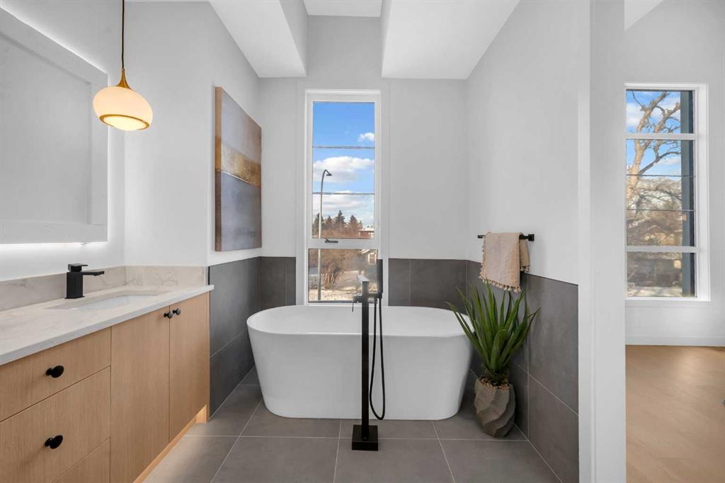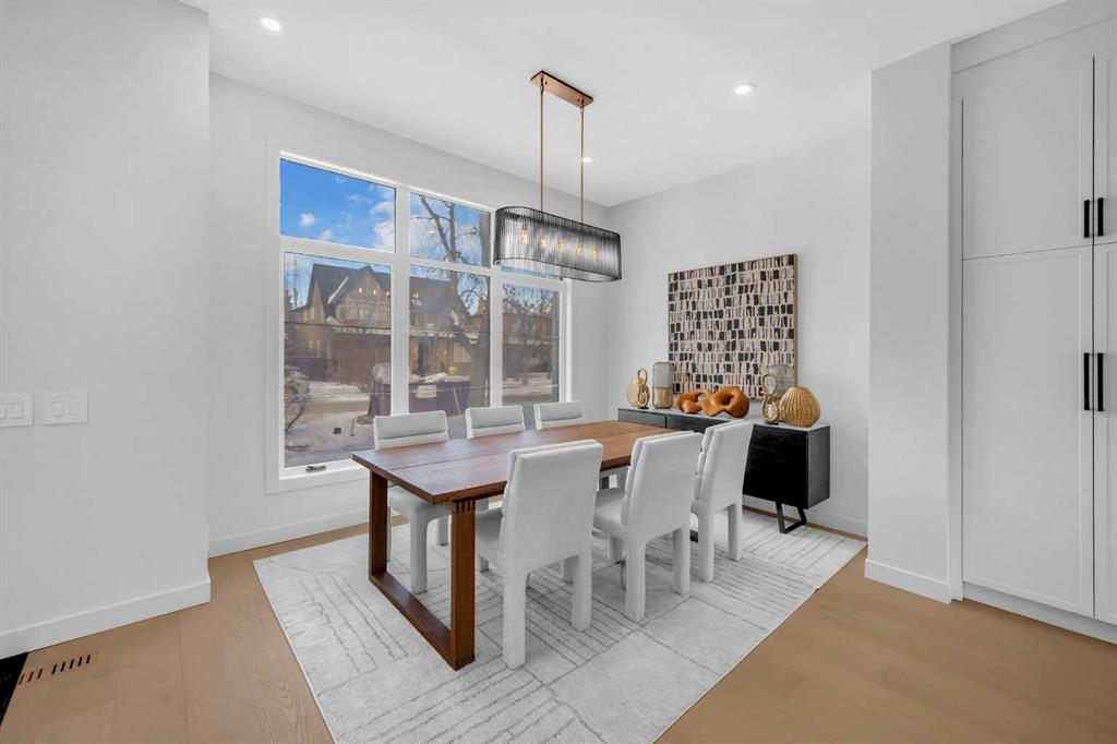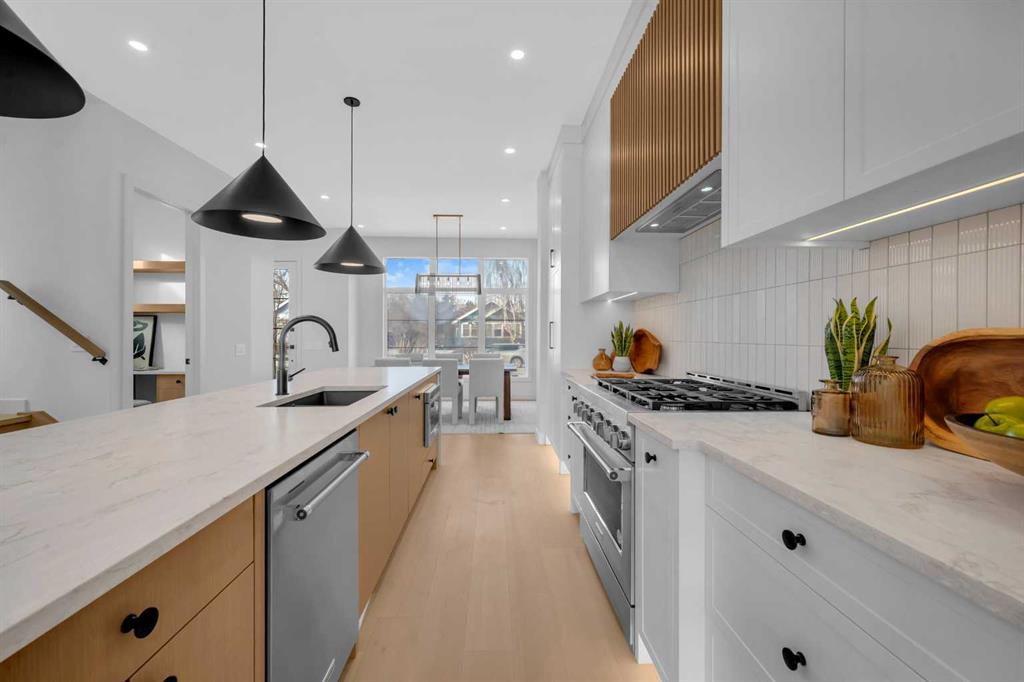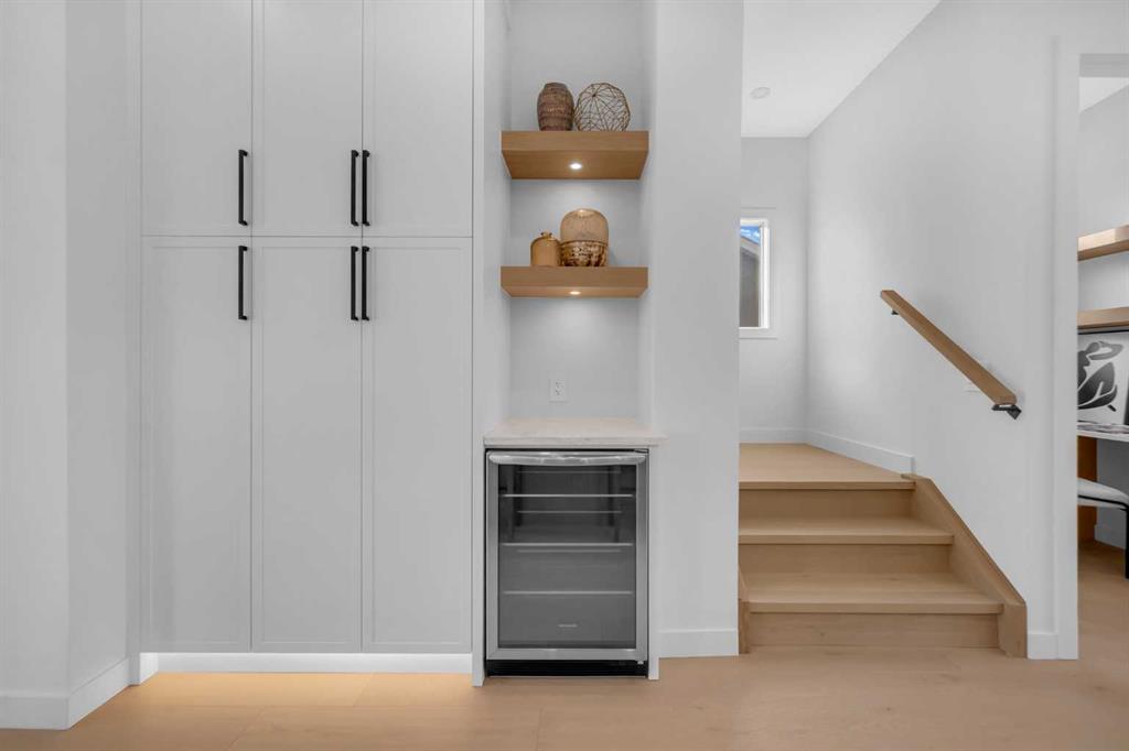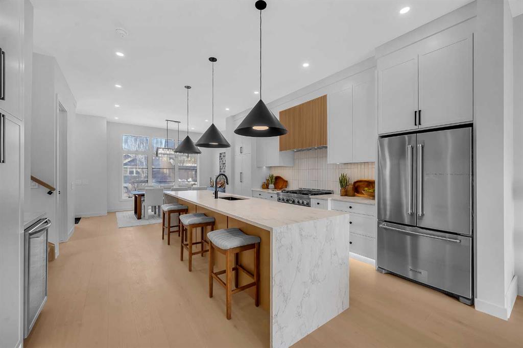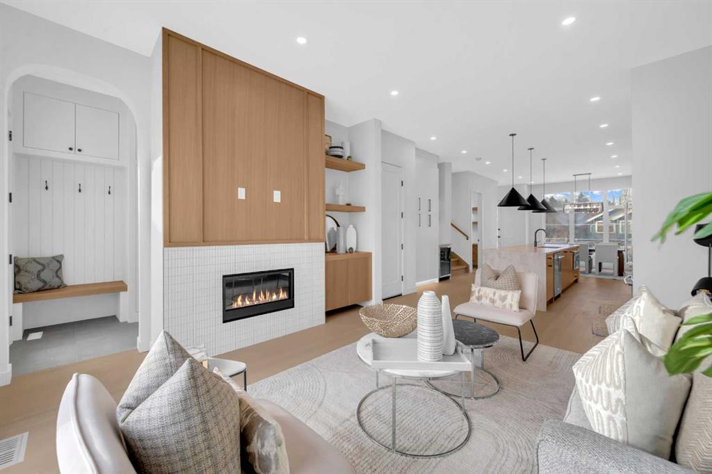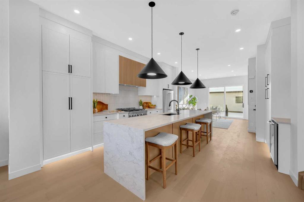 This beautifully designed MOVE-IN READY infill blends contemporary luxury with functional elegance, offering high-end finishes and an intuitive layout. From the moment you step inside, the bright and airy atmosphere welcomes you with soaring 10-ft ceilings, expansive windows, and an open-concept design that flows effortlessly throughout the main floor. The inviting entryway welcomes you with a built-in bench with shiplap wall and built-in closets. The welcoming dining area is bathed in natural light, offering the perfect spot for gatherings. Flowing seamlessly into the chef-inspired kitchen, you’ll find ceiling-height custom cabinetry, sleek quartz countertops, a full-height designer backsplash, and high-end S/S appliances with custom wood slat hood fan. The large waterfall island is a natural gathering place—ideal for meal prep, casual dining, or a glass of wine with friends, made easier with the addition of a beverage fridge and coffee counter with floating wood shelves with LED lighting! Off the kitchen, the office provides a quiet retreat with a built-in desk, open shelving, and a convenient window for natural light. The heart of the home is the stunning living room, featuring a custom wood panelled feature wall above the modern tiled fireplace and large sliding glass doors to the backyard. The mudroom with built-in storage keeps everything organized, leading to a stylish powder room with quartz skirted countertop and black vessel sink that completes the main floor. Upstairs, the primary suite is pure luxury. An extra-high ceiling and custom wall panelling add a designer touch, while the massive walk-in closet offers plenty of space for your wardrobe. The ensuite is built for relaxation, with a soaker tub, a long vanity with dual sinks, more designer lighting with beautiful LED skirt lighting and a backlit mirror, and an oversized glass shower featuring both rainfall and handheld sprays. Two additional bedrooms provide comfortable retreats, with easy access to a beautifully finished 4-piece bathroom. A dedicated laundry room with extra storage makes daily life even more convenient. The fully developed basement expands the living space, offering options for multi-generational living, a rental suite (subject to permits & approval by the city), or the ultimate entertainment space. The living room space is perfect for movie nights or hanging out, while the sleek kitchen adds flexibility for guests or daily use for potential renters. Two bright bedrooms and a modern 4-piece bathroom complete this lower level. Outside, the SOUTH-FACING BACKYARD is fully fenced and ready for summer BBQs and a space for kids and pets to play. The double detached garage adds extra storage and convenience. Nestled in vibrant Renfrew, this home offers quick access to DT, while being close to local favourites along Edmonton Trail and Bridgeland. Reader Greens Park, Stew Hendry Arena, and the Renfrew Community Association are all within a couple of blocks, perfect for families of all sizes!