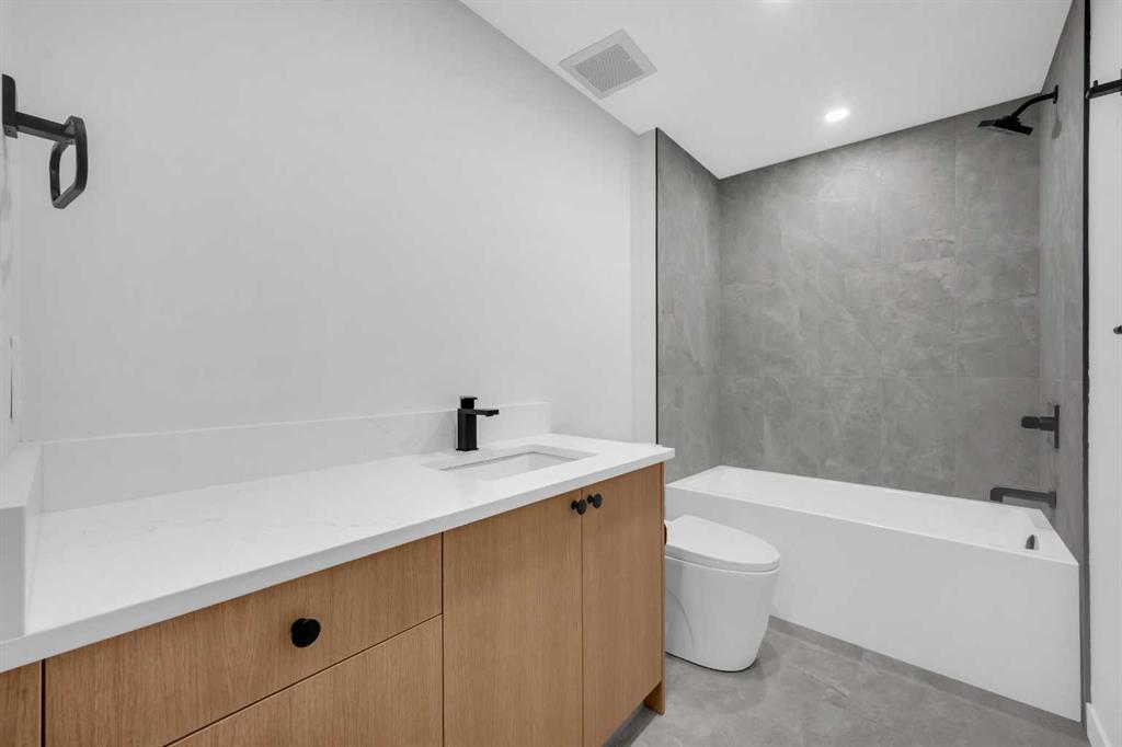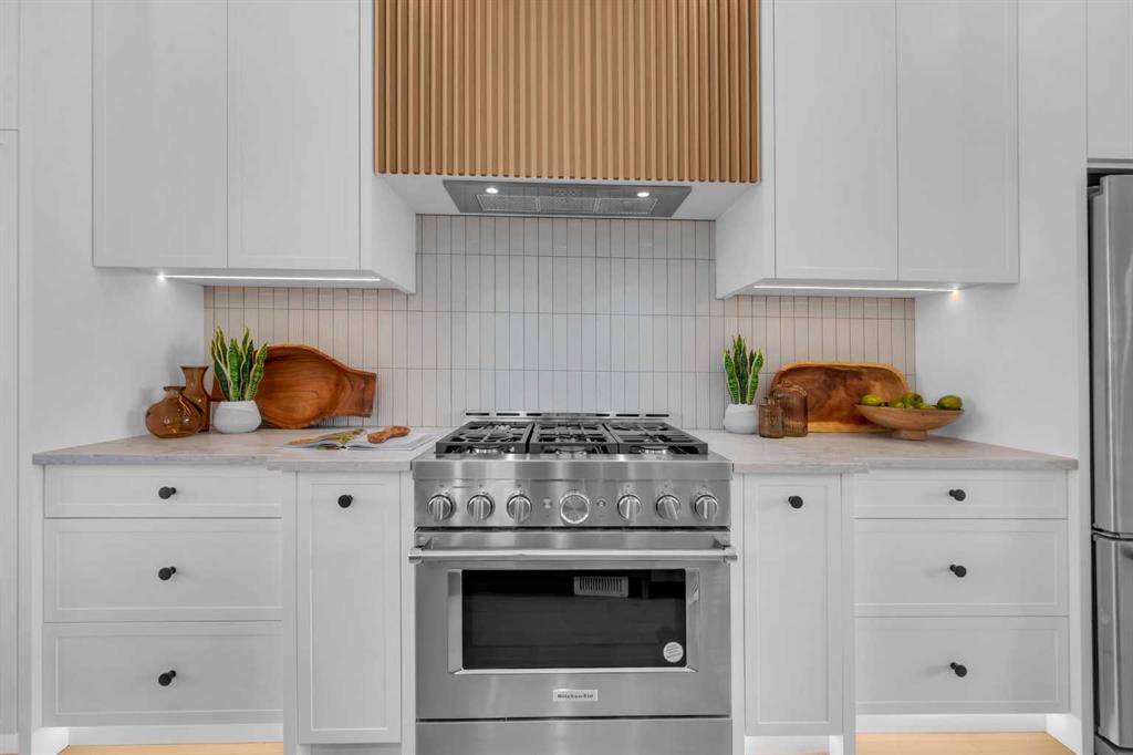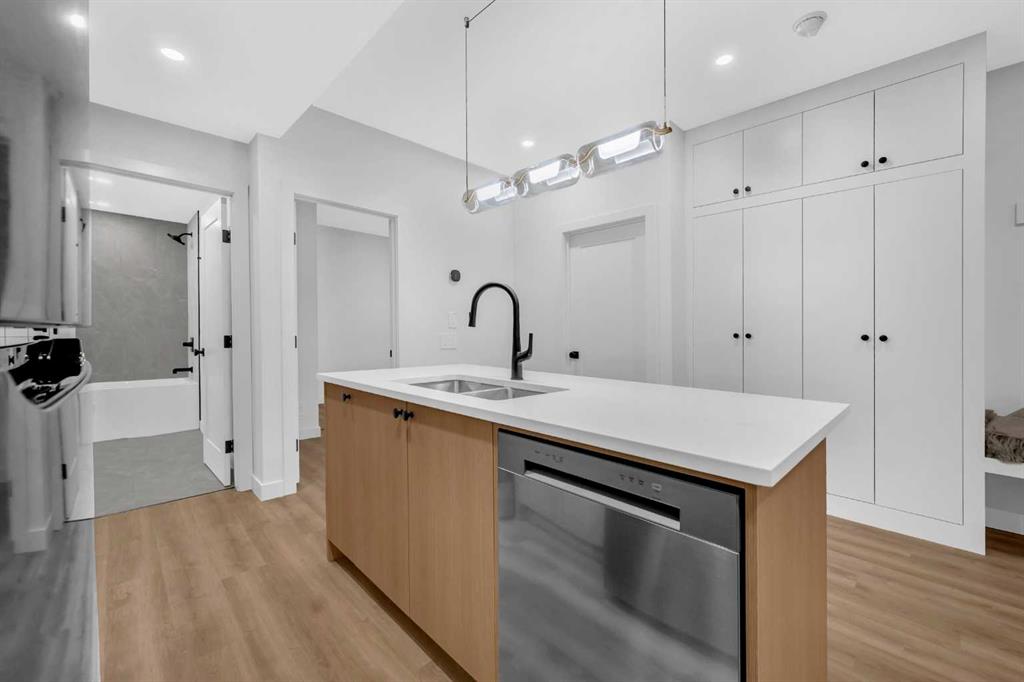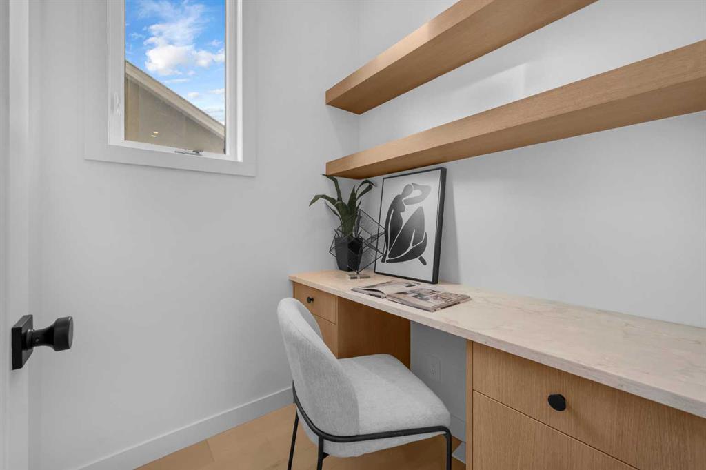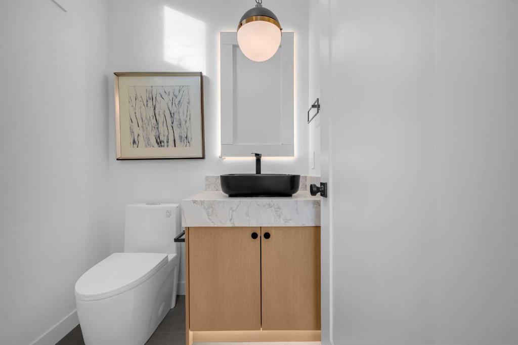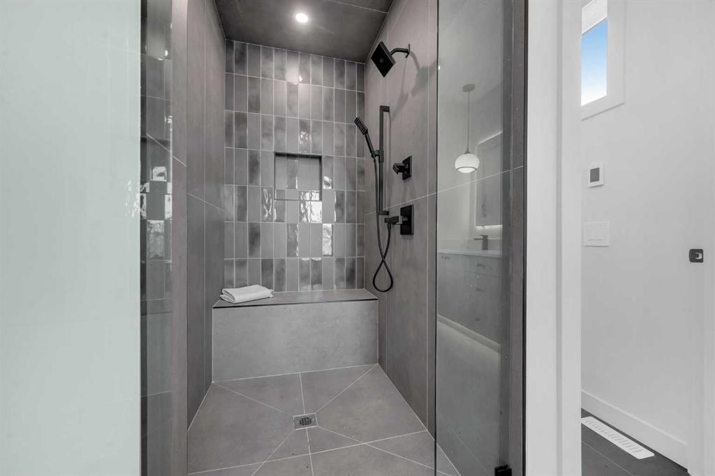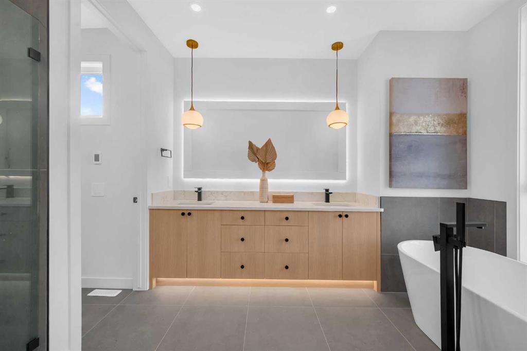 This beautifully designed MOVE-IN READY infill blends contemporary luxury with functional elegance, offering high-end finishes and an intuitive layout. From the moment you step inside, the bright and airy atmosphere welcomes you with soaring 10-ft ceilings, expansive windows, and an open-concept design that flows effortlessly throughout the main floor. The inviting entryway welcomes you with a built-in bench with shiplap wall and built-in closets. The welcoming dining area is bathed in natural light, offering the perfect spot for gatherings. Flowing seamlessly into the chef-inspired kitchen, you’ll find ceiling-height custom cabinetry, sleek quartz countertops, a full-height designer backsplash, and high-end S/S appliances with custom wood slat hood fan. The large waterfall island is a natural gathering place—ideal for meal prep, casual dining, or a glass of wine with friends, made easier with the addition of a beverage fridge and coffee counter with floating wood shelves with LED lighting! Off the kitchen, the office provides a quiet retreat with a built-in desk, open shelving, and a convenient window for natural light. The heart of the home is the stunning living room, featuring a custom wood panelled feature wall above the modern tiled fireplace and large sliding glass doors to the backyard. The mudroom with built-in storage keeps everything organized, leading to a stylish powder room with quartz skirted countertop and black vessel sink that completes the main floor. Upstairs, the primary suite is pure luxury. An extra-high ceiling and custom wall panelling add a designer touch, while the massive walk-in closet offers plenty of space for your wardrobe. The ensuite is built for relaxation, with a soaker tub, a long vanity with dual sinks, more designer lighting with beautiful LED skirt lighting and a backlit mirror, and an oversized glass shower featuring both rainfall and handheld sprays. Two additional bedrooms provide comfortable retreats, with easy access to a beautifully finished 4-piece bathroom. A dedicated laundry room with extra storage makes daily life even more convenient. The fully developed basement expands the living space, offering options for multi-generational living, a rental suite (subject to permits & approval by the city), or the ultimate entertainment space. The living room space is perfect for movie nights or hanging out, while the sleek kitchen adds flexibility for guests or daily use for potential renters. Two bright bedrooms and a modern 4-piece bathroom complete this lower level. Outside, the SOUTH-FACING BACKYARD is fully fenced and ready for summer BBQs and a space for kids and pets to play. The double detached garage adds extra storage and convenience. Nestled in vibrant Renfrew, this home offers quick access to DT, while being close to local favourites along Edmonton Trail and Bridgeland. Reader Greens Park, Stew Hendry Arena, and the Renfrew Community Association are all within a couple of blocks, perfect for families of all sizes!