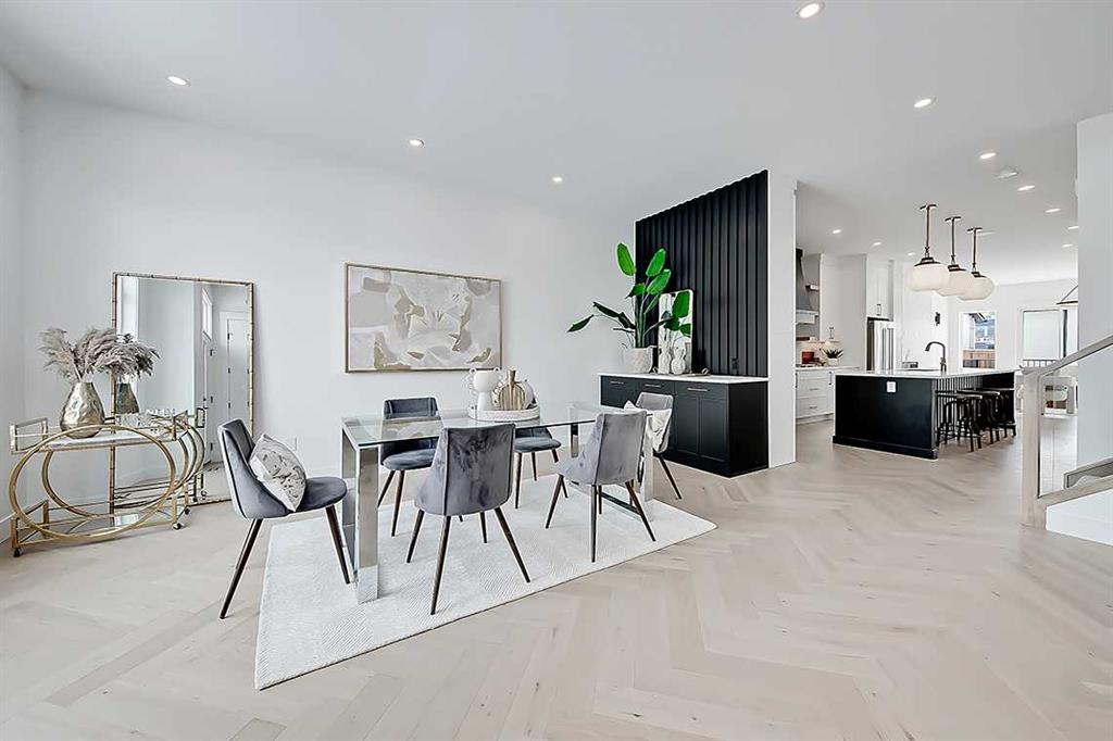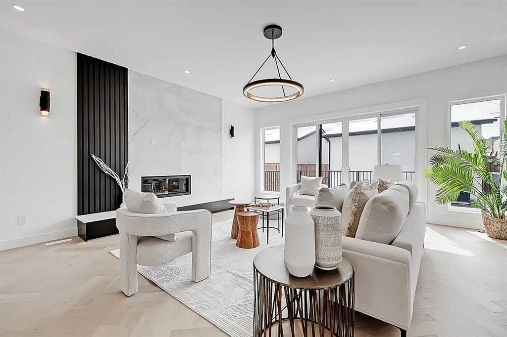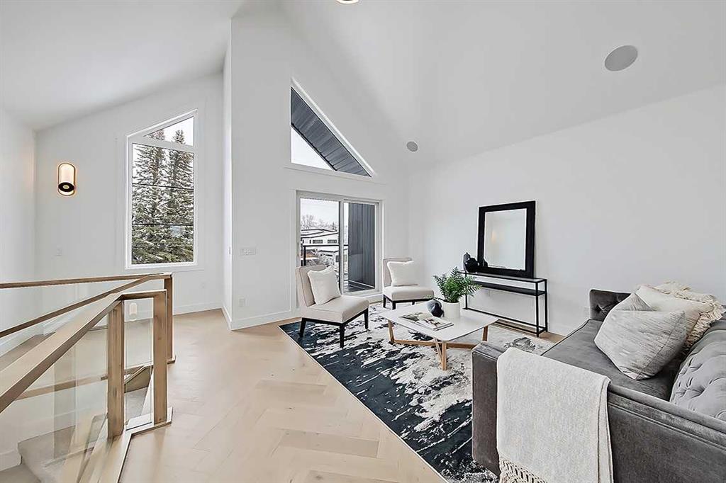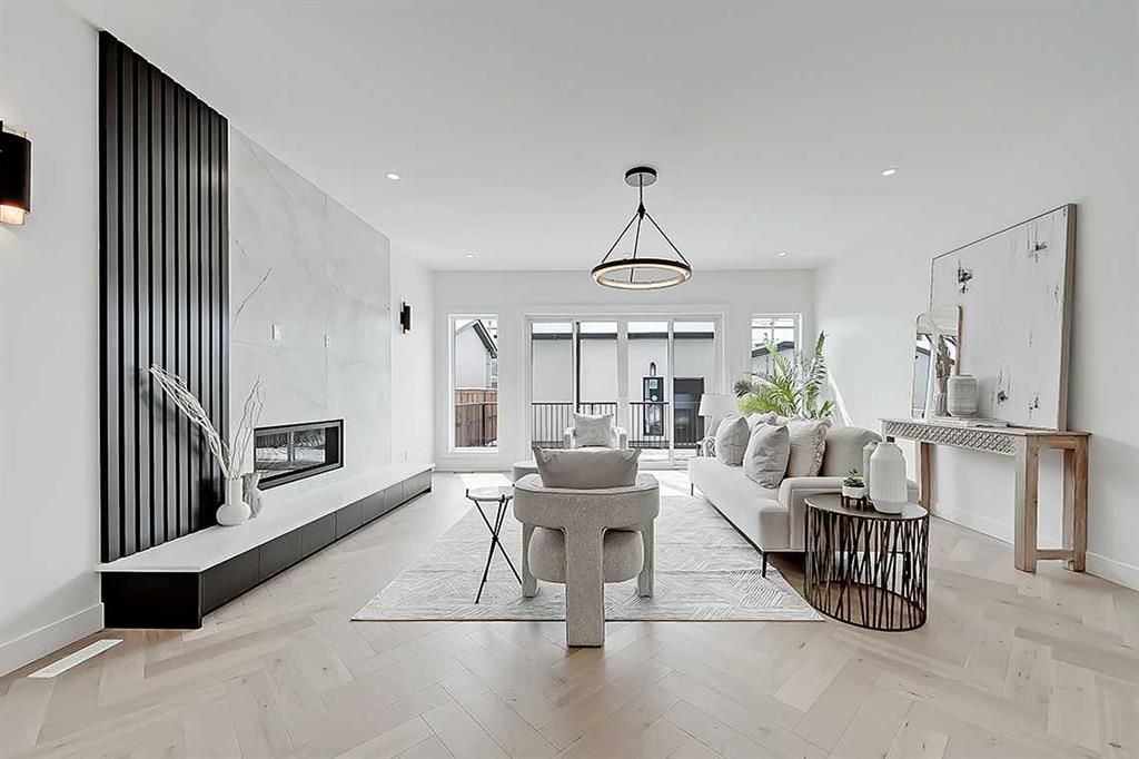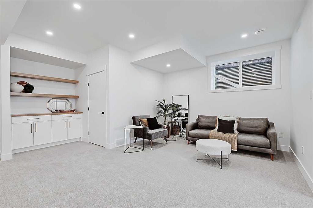 DETACHED LUXURY INFILL ON ONE OF THE MOST PRESTIGIOUS STREETS IN BOWNESS! Situated only a block from the Bow River in one direction and from your favourite restaurants and shops on Bowness Road in the other, the location of this new build by Baidwan Constructions just can’t be beat! Featuring over 3,150+ sq ft of developed living space across 4 bedrooms, 3 full baths, a bonus vaulted loft space, and basement rec room/media area with full wet bar! Stunning herringbone hardwood draws you into the space and adds to the elegant upscale feel of this home. A modern kitchen with a S/S appliance package sits in the centre of the main floor, surrounded by stunning shaker-style cabinetry, a large central quartz island with waterfall edges, a custom hood fan & additional built ins w/display shelving all highlighting this well thought out space. The spacious dining room has extra built in cabinetry and millwork and overlooks the front yard. The spacious family room with oversized windows and ample natural light includes a gas fireplace with a stunning oversized tile surround and dual sliding glass doors onto the back deck and the spacious South-facing backyard. A mudroom and elegant half bath sit off the side of the main floor, next to the spacious walk-in pantry with two walls of built-in shelving. Up the open riser stairs the additional living space is impressive with a soaring vaulted loft space finished with a wet bar and access to a PRIVATE BALCONY. Next to the loft is a dedicated den with space for a desk and window making the space feel open and bright. Two secondary bedrooms have big windows and generously sized closets, close to the main 5-piece bath. The primary bedroom showcases a vaulted ceiling, a large walk-in closet with custom shelving, and an expansive 5-piece ensuite with more vaulted ceilings, brushed gold plumbing fixtures, dual under-mounted sinks, a free-standing soaker tub, a separate tiled shower w/ 10mm glass door, and a private water closet. Downstairs, the spacious rec room features another full wet bar with quartz countertop, upper & lower cabinets, sink, and a tile backsplash. A flex space is perfect for a home gym or games area and the fourth bedroom has a huge walk-in closet, large window and access to the 3-piece bath with walk in shower. How can you go wrong with this beautiful, upgraded infill with rough-ins for central vac, a sound system, and fully landscaped yard and built in gemstone lighting. Bowness is an attractive community for many looking for the best outdoor activities, convenient amenities, and a deep-rooted community feel. There’s something special about living close to the river – early-morning jogs and late-night star gazing to the sounds of rushing water just can’t be beaten! Don’t miss your chance to enjoy life riverside in this brand-new infill today!