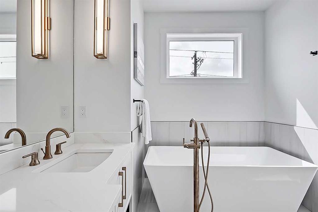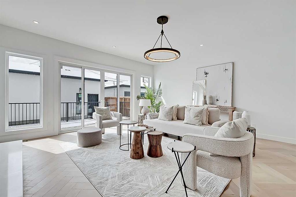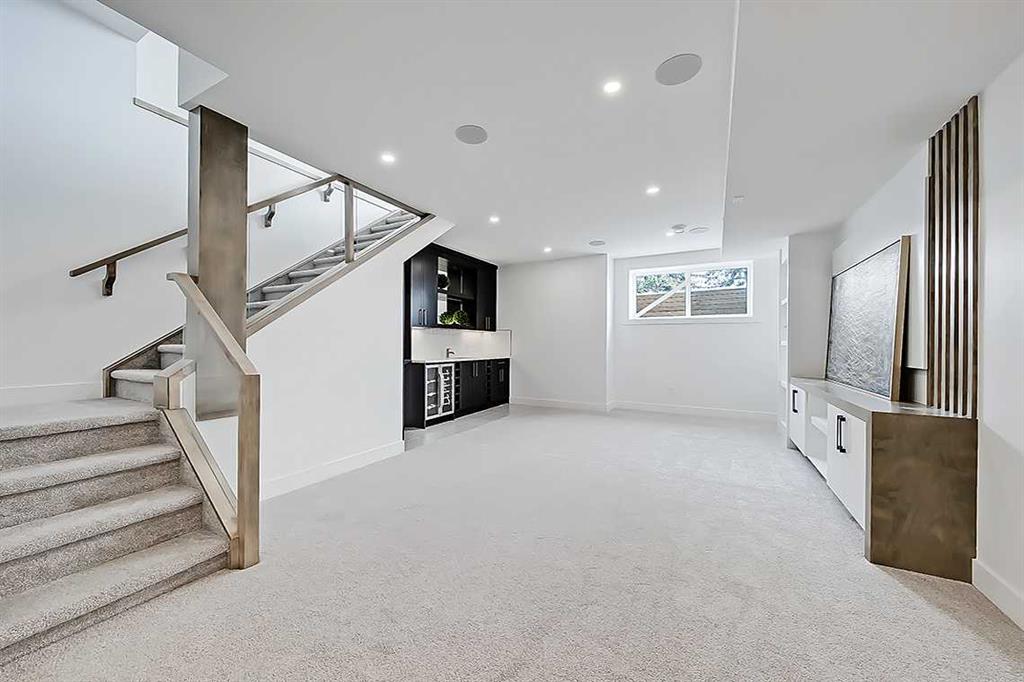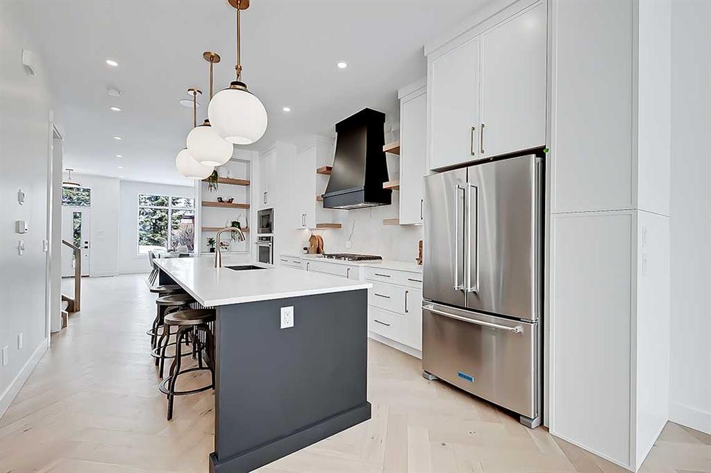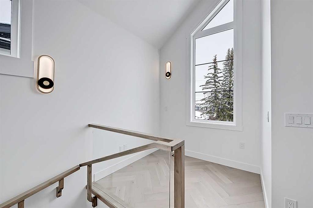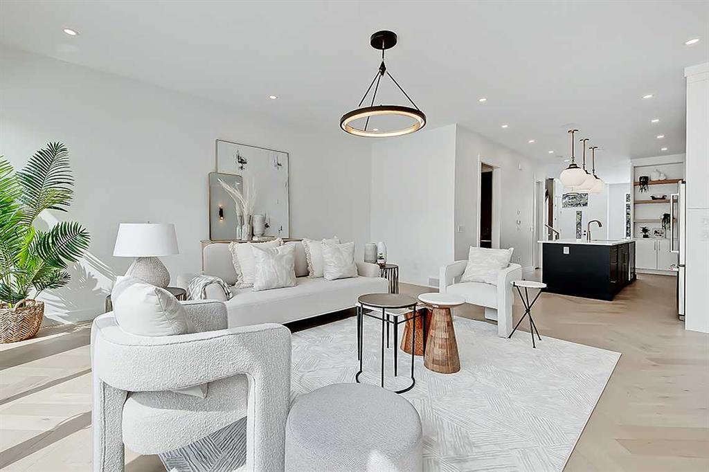 DETACHED LUXURY INFILL ON ONE OF THE MOST PRESTIGIOUS STREETS IN BOWNESS! Situated only a block from the Bow River in one direction and from your favourite restaurants and shops on Bowness Road in the other, the location of this new build by Baidwan Constructions just can’t be beat! Featuring over 3,150+ sq ft of developed living space across 4 bedrooms, 3 full baths, a bonus vaulted loft space, and basement rec room/media area with full wet bar! Stunning herringbone hardwood draws you into the space and adds to the elegant upscale feel of this home. A modern kitchen with a S/S appliance package sits in the centre of the main floor, surrounded by stunning shaker-style cabinetry, a large central quartz island with waterfall edges, a custom hood fan & additional built ins w/display shelving all highlighting this well thought out space. The spacious dining room has extra built in cabinetry and millwork and overlooks the front yard. The spacious family room with oversized windows and ample natural light includes a gas fireplace with a stunning oversized tile surround and dual sliding glass doors onto the back deck and the spacious South-facing backyard. A mudroom and elegant half bath sit off the side of the main floor, next to the spacious walk-in pantry with two walls of built-in shelving. Up the open riser stairs the additional living space is impressive with a soaring vaulted loft space finished with a wet bar and access to a PRIVATE BALCONY. Next to the loft is a dedicated den with space for a desk and window making the space feel open and bright. Two secondary bedrooms have big windows and generously sized closets, close to the main 5-piece bath. The primary bedroom showcases a vaulted ceiling, a large walk-in closet with custom shelving, and an expansive 5-piece ensuite with more vaulted ceilings, brushed gold plumbing fixtures, dual under-mounted sinks, a free-standing soaker tub, a separate tiled shower w/ 10mm glass door, and a private water closet. Downstairs, the spacious rec room features another full wet bar with quartz countertop, upper & lower cabinets, sink, and a tile backsplash. A flex space is perfect for a home gym or games area and the fourth bedroom has a huge walk-in closet, large window and access to the 3-piece bath with walk in shower. How can you go wrong with this beautiful, upgraded infill with rough-ins for central vac, a sound system, and fully landscaped yard and built in gemstone lighting. Bowness is an attractive community for many looking for the best outdoor activities, convenient amenities, and a deep-rooted community feel. There’s something special about living close to the river – early-morning jogs and late-night star gazing to the sounds of rushing water just can’t be beaten! Don’t miss your chance to enjoy life riverside in this brand-new infill today!