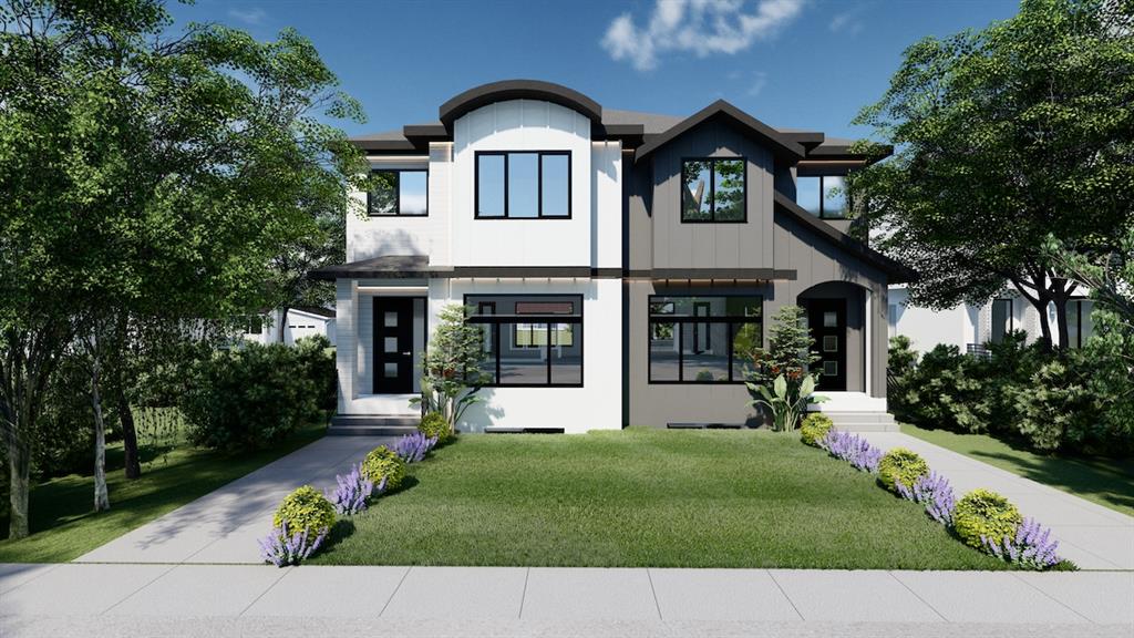 MOVE IN TODAY!! Live your best life close to the river in this brand-new semi-detached infill in trendy BOWNESS! Situated only three blocks from the Bow River and a short 10-min bike ride from Bowness Park, this new build by Baidwan Constructions features over 2,660 sq ft of developed living space across 4 bedrooms, a spacious bonus loft space, and a massive basement rec room! The main floor features stunning wide-plank Luxury Vinyl Plank flooring and a modern central kitchen. The kitchen consists of contemporary custom-built shaker-style cabinetry, a built-in pantry, a large central island, and a full stainless steel appliance package (including a gas cooktop and built-in wall oven and microwave). On either side of the kitchen is a spacious dining room and family room, both with oversized windows and ample natural light. The family room includes a gas fireplace with a stunning tile surround and access to the rear mudroom. The mudroom offers access to the SOUTH-FACING BACKYARD with a double detached garage and the elegant 2-piece powder room with custom cabinetry and quartz countertop. An open and spacious loft space greets you at the top of the stairs, the ideal space for an additional family room, large home office, or even a kid’s playroom! Off to one side of the loft, the primary retreat enjoys an oversized window, a large walk-in closet with custom millwork, and an expansive 5-piece ensuite with dual under-mounted sinks, a large soaker tub, a separate tiled shower w/ 10mm glass door, and a private water closet. Two secondary bedrooms have South-facing windows and generously sized closets, close to a main 4-piece bath. The laundry room features custom cabinetry and a sink for ultimate convenience. Downstairs, the spacious rec room features a full wet bar with a quartz countertop, upper and lower cabinets, an undermount sink, and a modern tile backsplash. There’s also a 4-piece bath and fourth bedroom with a huge walk-in closet and large window, perfect for guests. With rough-ins for central vac, a sound system, and an included landscaping package, how can you go wrong with this beautiful, upgraded infill? Bowness is an attractive community for many looking for the best in outdoor activities, convenient amenities, and a deep-rooted community feel. Tucked away in Bowness, this home is mere steps away from unlimited river pathways and is only minutes from Shouldice, Bowness Park, the Foothills Hospital, and the University of Calgary. Bowness Park features a train, outdoor ice skating, a lagoon, and nature-laden walking trails; Shouldice Park is home to batting cages, soccer fields, and a 15,000 sq ft accessible playground; and WinSport is only 7 minutes away for anyone looking to ski or mountain bike. You’re also in close reach of multiple schools, parks, local amenities, and easy access to Highway 1A and Stoney Trail makes running errands and commuting a breeze!