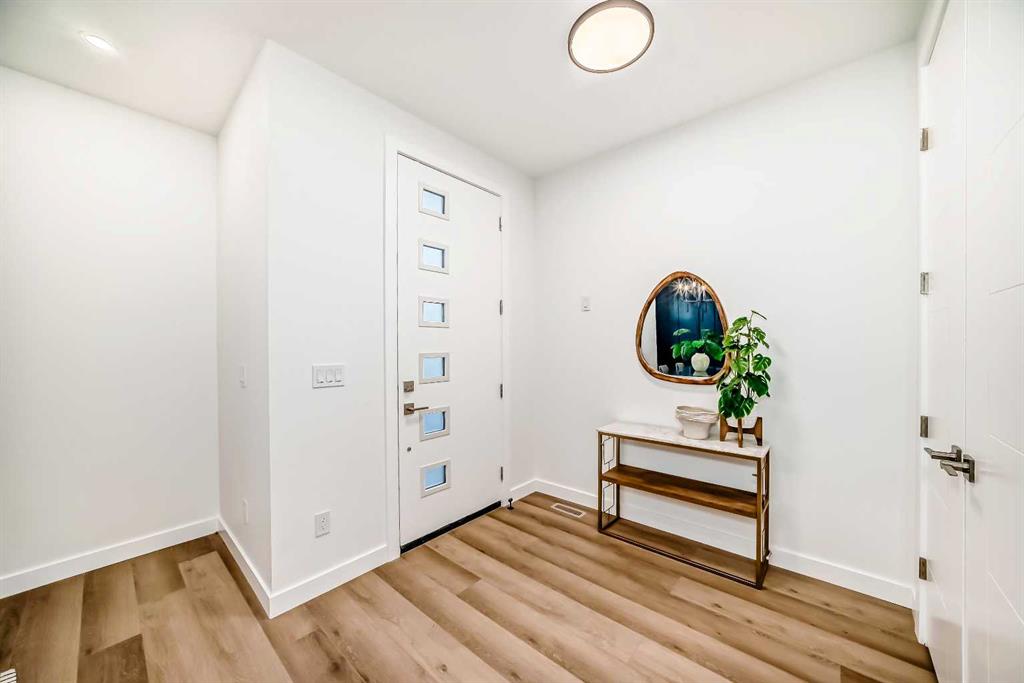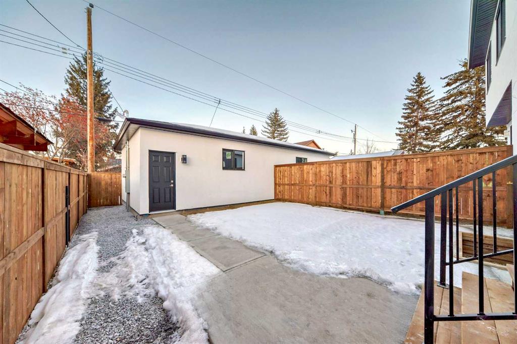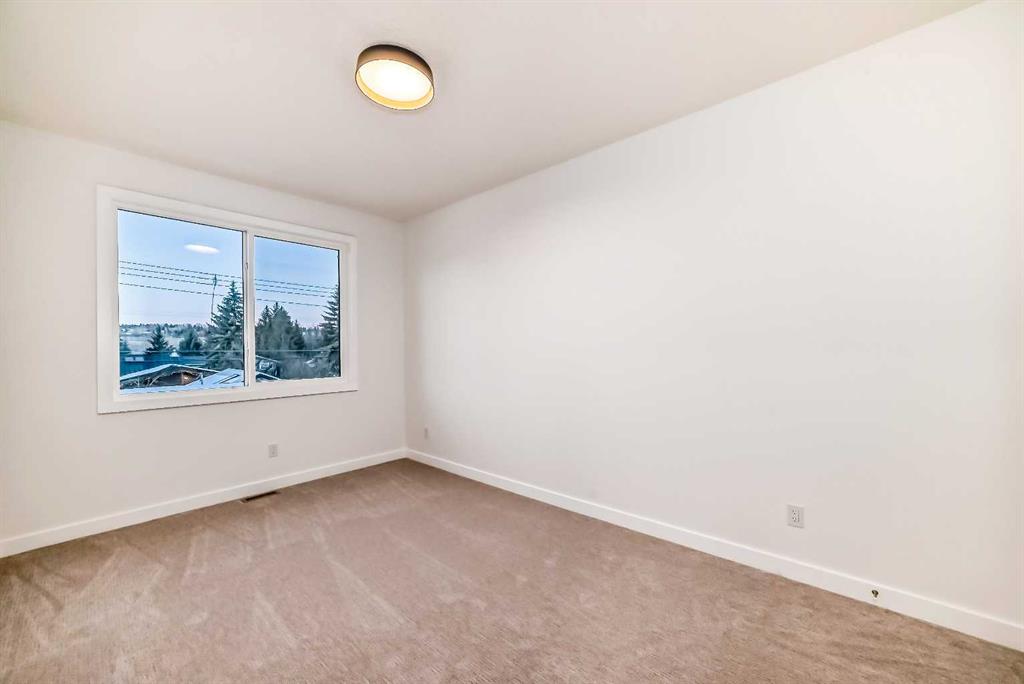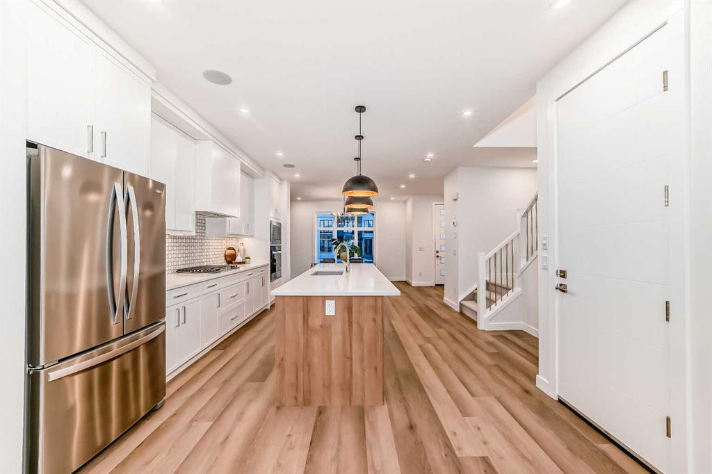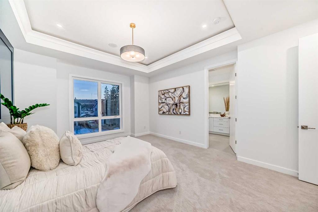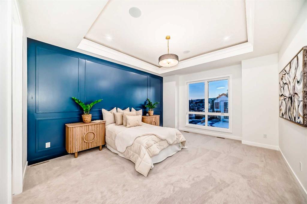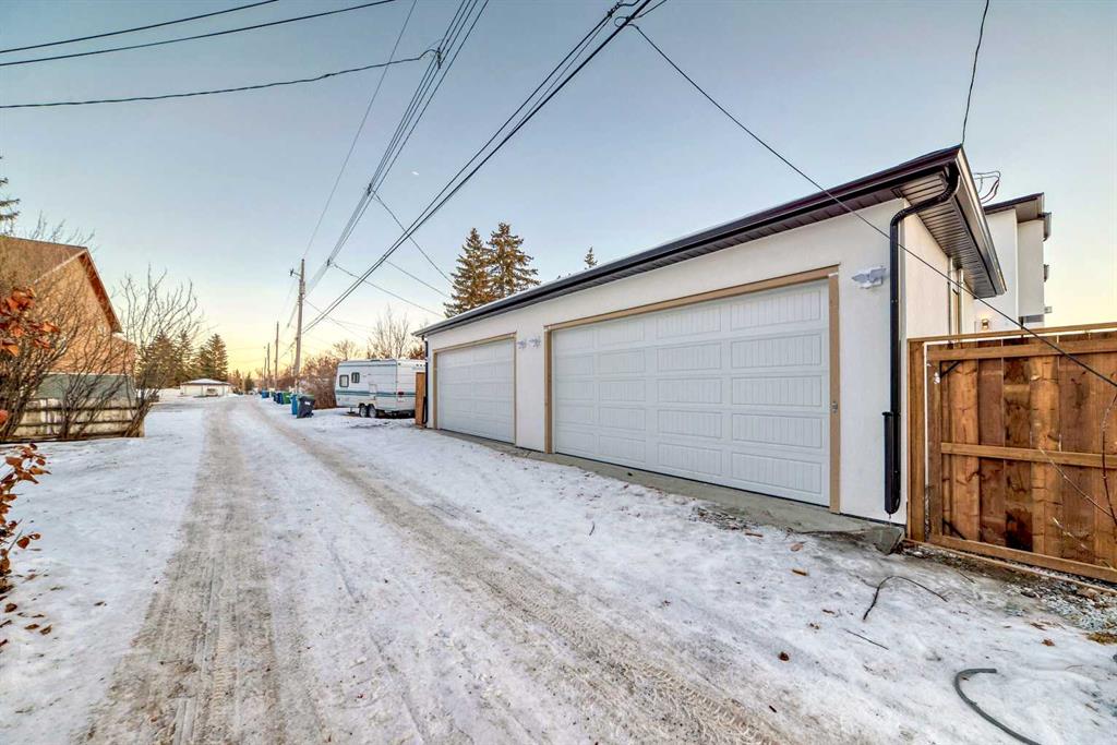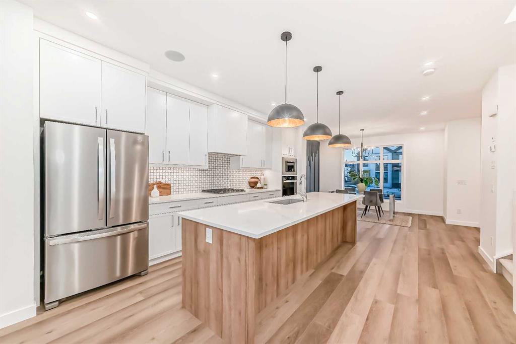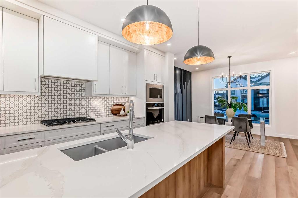 Discover the epitome of modern living in this beautifully designed semi-detached home located in the heart of vibrant Bowness! This meticulously crafted residence blends contemporary elegance with functional design, creating a perfect haven for family life and entertaining. Step into a bright and airy main floor featuring soaring ceilings, large windows, and an open-concept layout. A cozy dining space sits near the front foyer, illuminated by a statement feature wall, and flows seamlessly into the chef-inspired kitchen. The central focal point of this level, the kitchen features sleek ceiling-height custom cabinetry, a spacious waterfall island with quartz countertops, a star and cross designer tile backsplash, and high-end appliances that cater to culinary enthusiasts. Anchored by a stylish stone fireplace and surrounded by built-in shelving, the rear living room is perfect for gathering with loved ones or unwinding after a long day. A rear mudroom with a built-in bench and a private modern ensuite with designer tile flooring finish off the main floor perfectly. The upper level offers a private retreat with three spacious bedrooms, a modern main 4-pc bathroom, and a large laundry room with tile flooring and a sink. The luxurious primary suite exudes tranquillity, complete with a tray ceiling, a generous walk-in closet, and an opulent ensuite. Enjoy a spa-like experience with a freestanding tub, an oversized glass-enclosed shower with full-height tile surround, and dual vanities. Two additional bedrooms are well-equipped, with ample closet space, and share a thoughtfully designed bathroom. The fully developed basement expands the living space, featuring a LEGAL 2-BED LOWER SUITE (subject to permits & approvals by the city), for an excellent mother-in-law suite or a mortgage helper. The modern elegance continues into this space, which enjoys a private entrance, a dedicated laundry space, 2 good-sized bedrooms, and a modern 4-pc bathroom. The kitchen and living area will suit your needs perfectly, with custom oak ceiling-height cabinetry, luxury vinyl plank flooring, a subway tile backsplash, and a beautiful quartz countertop. This home is as functional as it is beautiful, offering a detached double garage, a private deck, and a professionally landscaped yard to enjoy. Situated in the charming community of Bowness, this property offers easy access to schools, parks, and the Bow River pathways. Walk to local coffee shops, explore nearby restaurants, or take a short drive to downtown Calgary. With its thoughtful design and unbeatable location, this home offers an unparalleled lifestyle opportunity. Don’t miss your chance to make this stunning property your new home – schedule your viewing today!