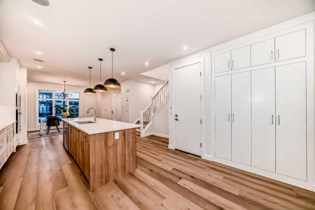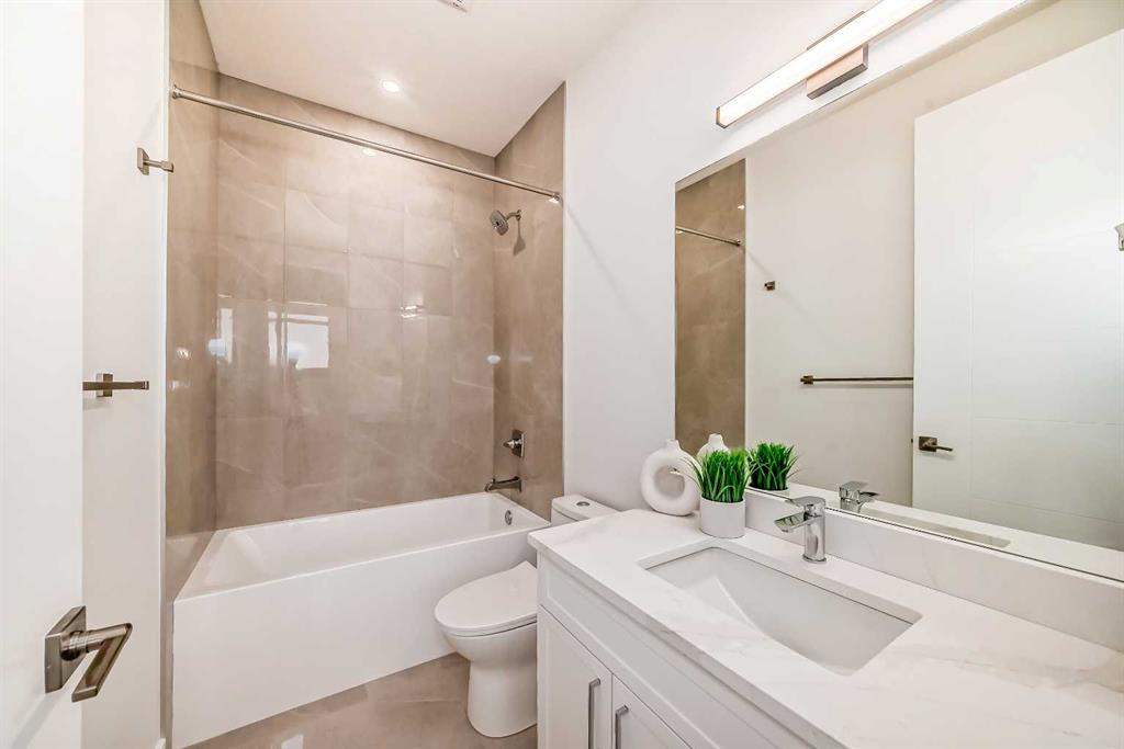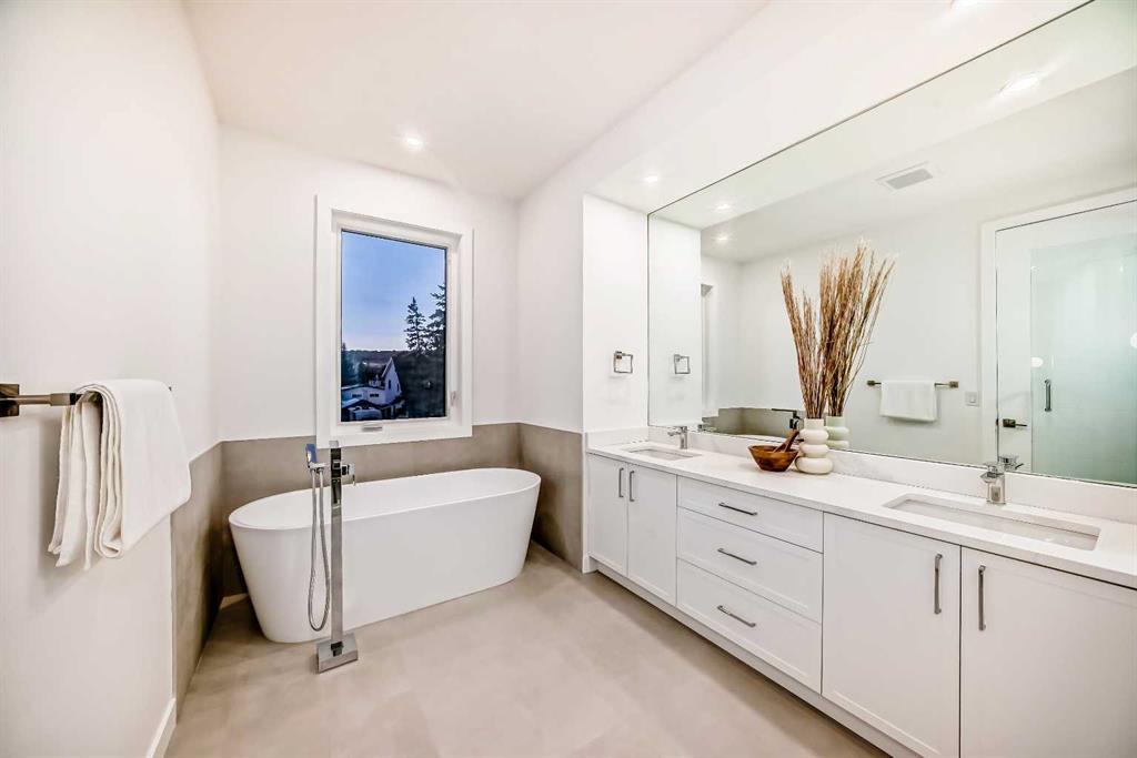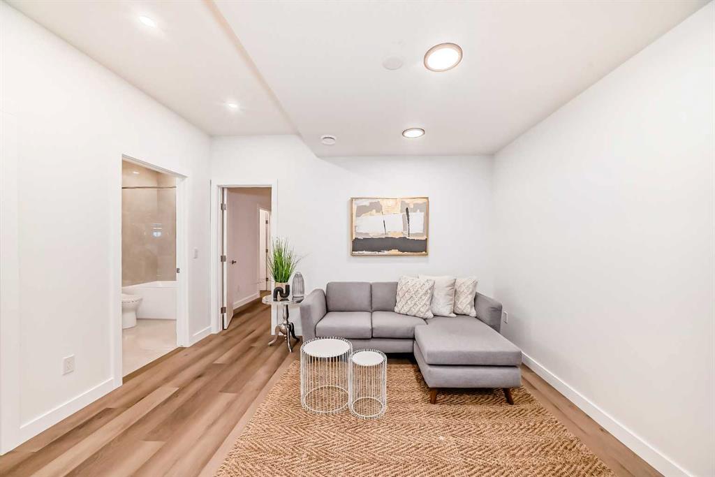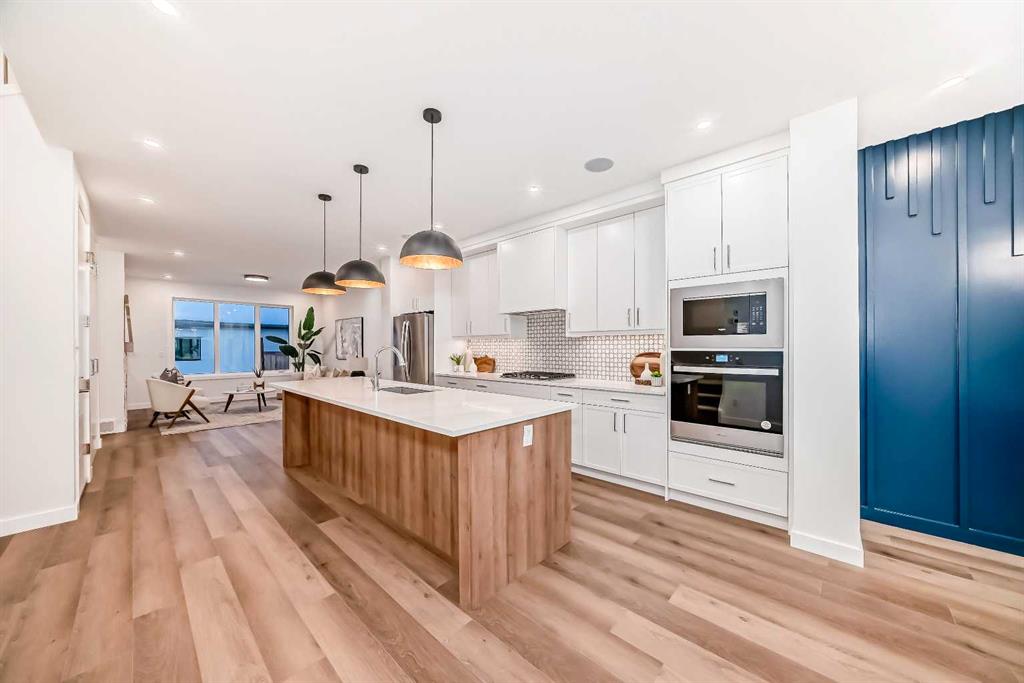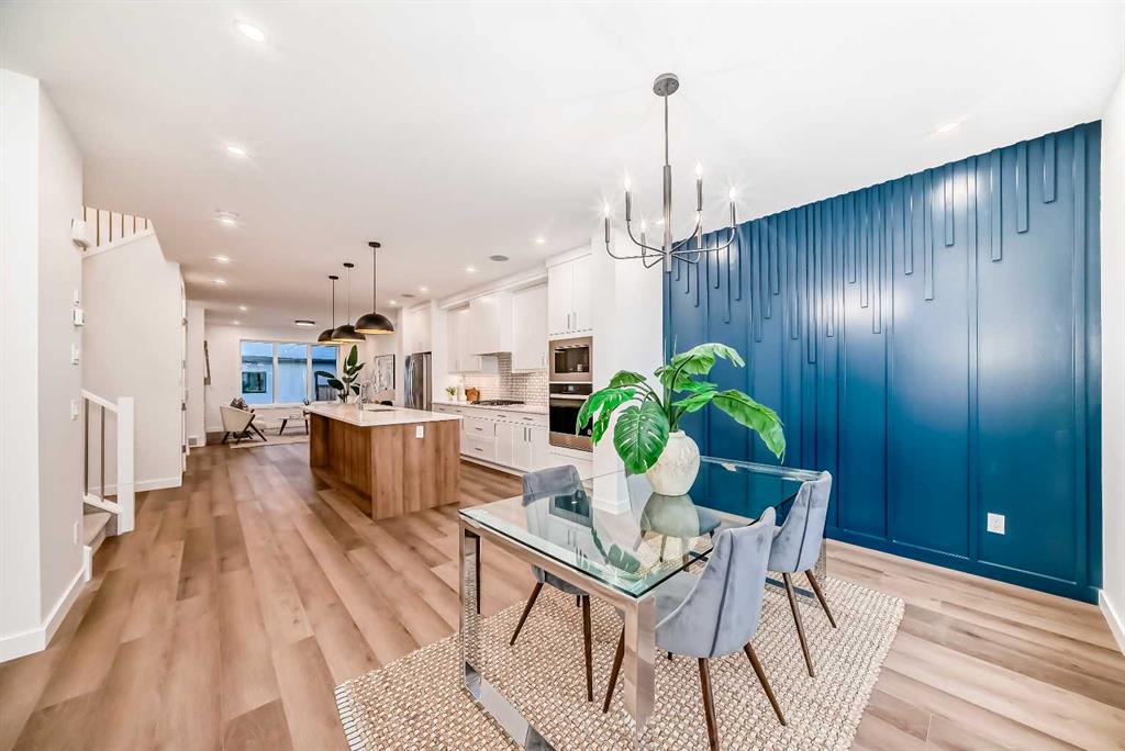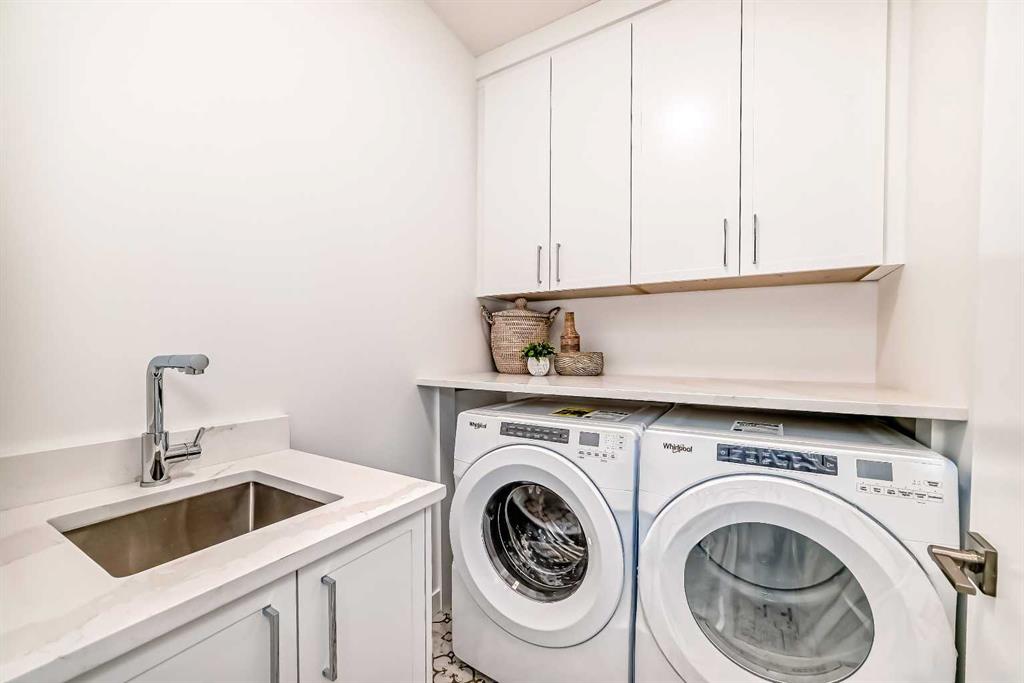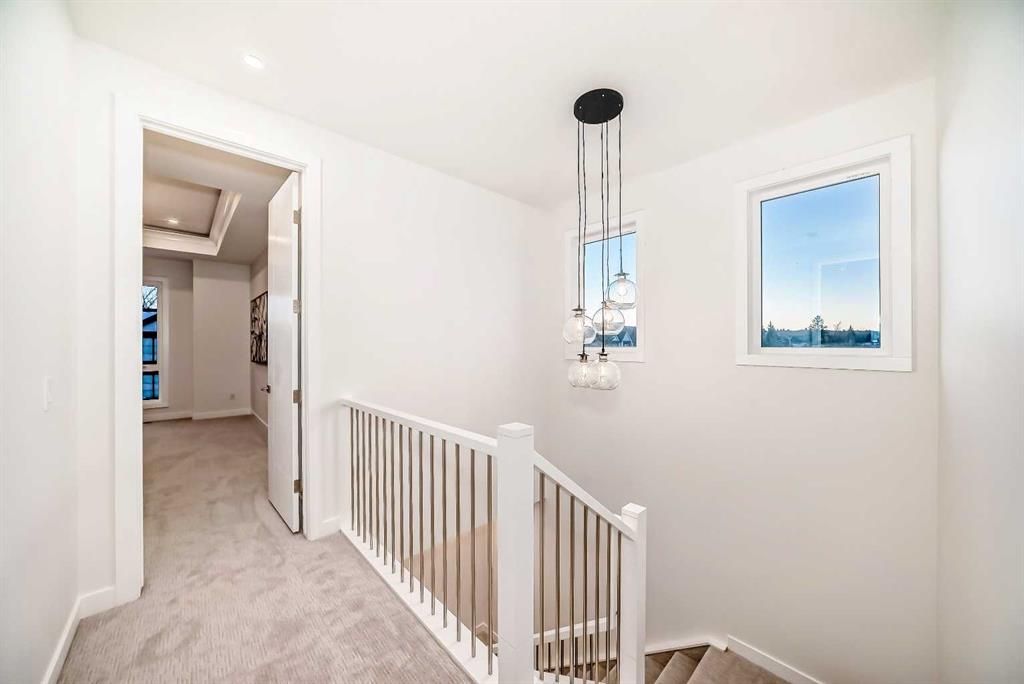 Discover the epitome of modern living in this beautifully designed semi-detached home located in the heart of vibrant Bowness! This meticulously crafted residence blends contemporary elegance with functional design, creating a perfect haven for family life and entertaining. Step into a bright and airy main floor featuring soaring ceilings, large windows, and an open-concept layout. A cozy dining space sits near the front foyer, illuminated by a statement feature wall, and flows seamlessly into the chef-inspired kitchen. The central focal point of this level, the kitchen features sleek ceiling-height custom cabinetry, a spacious waterfall island with quartz countertops, a star and cross designer tile backsplash, and high-end appliances that cater to culinary enthusiasts. Anchored by a stylish stone fireplace and surrounded by built-in shelving, the rear living room is perfect for gathering with loved ones or unwinding after a long day. A rear mudroom with a built-in bench and a private modern ensuite with designer tile flooring finish off the main floor perfectly. The upper level offers a private retreat with three spacious bedrooms, a modern main 4-pc bathroom, and a large laundry room with tile flooring and a sink. The luxurious primary suite exudes tranquillity, complete with a tray ceiling, a generous walk-in closet, and an opulent ensuite. Enjoy a spa-like experience with a freestanding tub, an oversized glass-enclosed shower with full-height tile surround, and dual vanities. Two additional bedrooms are well-equipped, with ample closet space, and share a thoughtfully designed bathroom. The fully developed basement expands the living space, featuring a LEGAL 2-BED LOWER SUITE (subject to permits & approvals by the city), for an excellent mother-in-law suite or a mortgage helper. The modern elegance continues into this space, which enjoys a private entrance, a dedicated laundry space, 2 good-sized bedrooms, and a modern 4-pc bathroom. The kitchen and living area will suit your needs perfectly, with custom oak ceiling-height cabinetry, luxury vinyl plank flooring, a subway tile backsplash, and a beautiful quartz countertop. This home is as functional as it is beautiful, offering a detached double garage, a private deck, and a professionally landscaped yard to enjoy. Situated in the charming community of Bowness, this property offers easy access to schools, parks, and the Bow River pathways. Walk to local coffee shops, explore nearby restaurants, or take a short drive to downtown Calgary. With its thoughtful design and unbeatable location, this home offers an unparalleled lifestyle opportunity. Don’t miss your chance to make this stunning property your new home – schedule your viewing today!