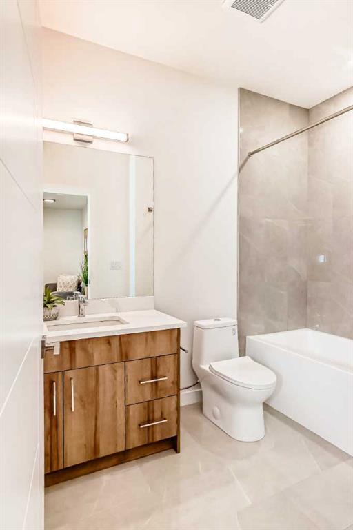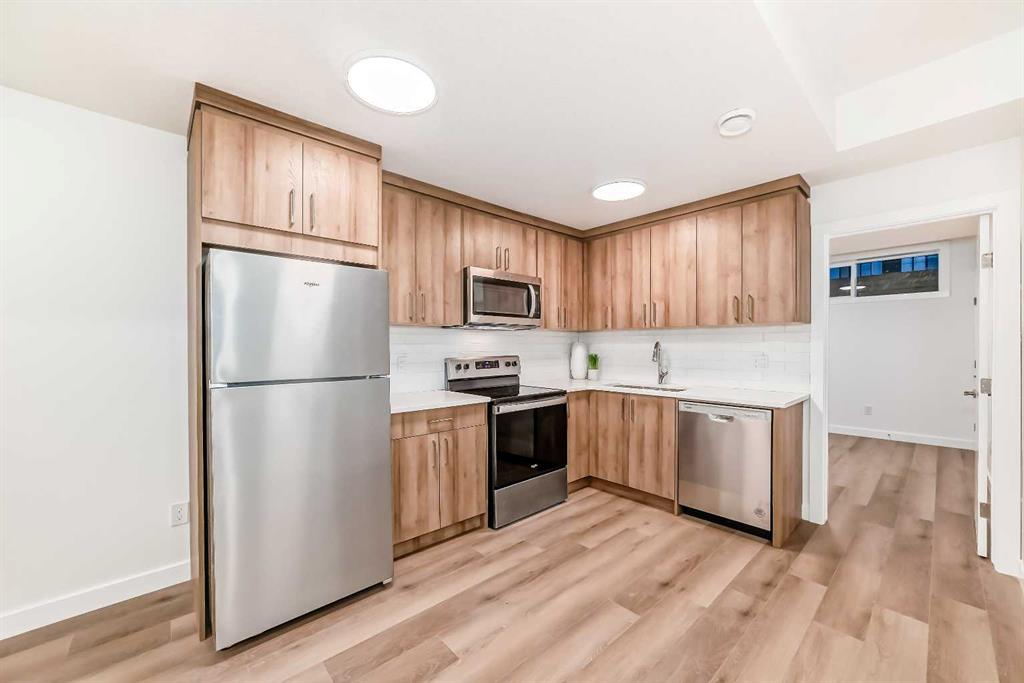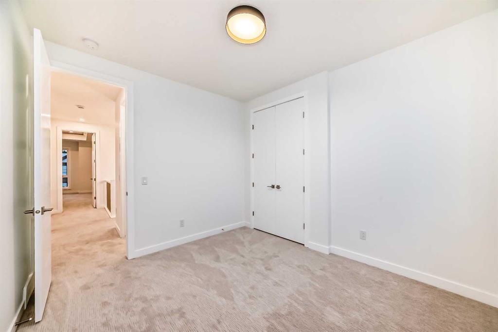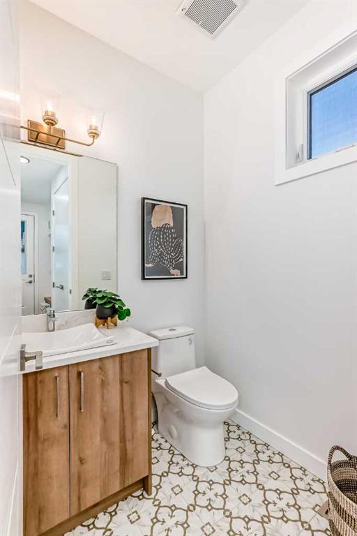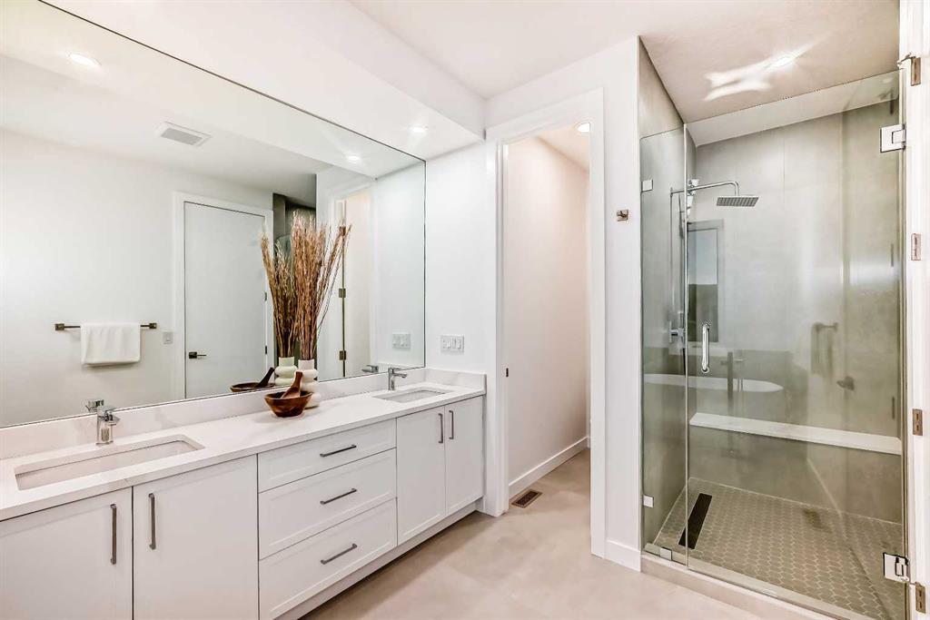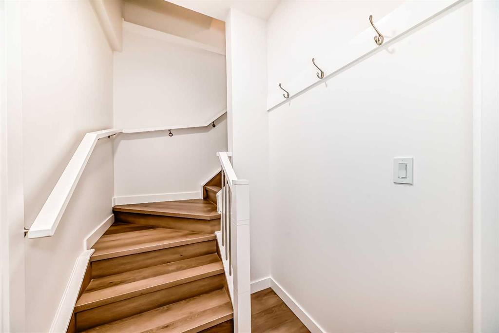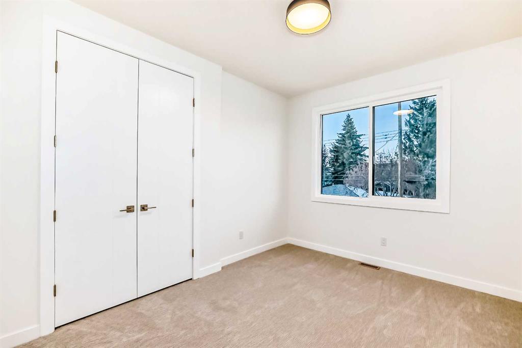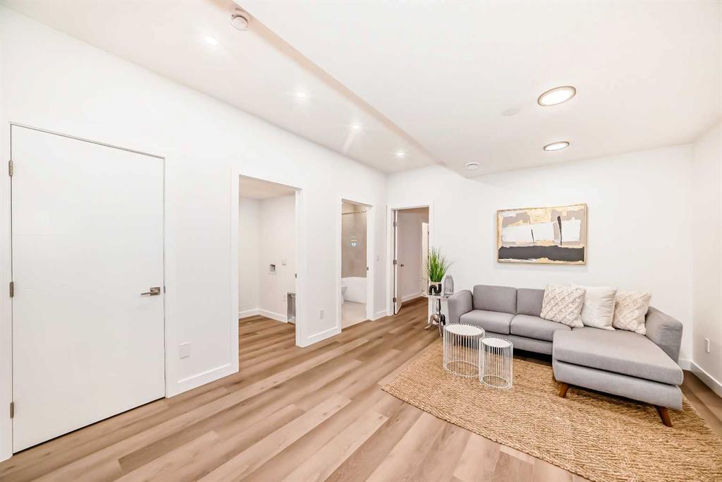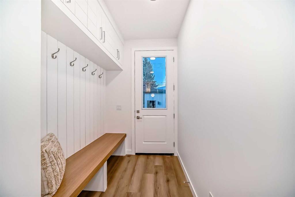 Discover the epitome of modern living in this beautifully designed semi-detached home located in the heart of vibrant Bowness! This meticulously crafted residence blends contemporary elegance with functional design, creating a perfect haven for family life and entertaining. Step into a bright and airy main floor featuring soaring ceilings, large windows, and an open-concept layout. A cozy dining space sits near the front foyer, illuminated by a statement feature wall, and flows seamlessly into the chef-inspired kitchen. The central focal point of this level, the kitchen features sleek ceiling-height custom cabinetry, a spacious waterfall island with quartz countertops, a star and cross designer tile backsplash, and high-end appliances that cater to culinary enthusiasts. Anchored by a stylish stone fireplace and surrounded by built-in shelving, the rear living room is perfect for gathering with loved ones or unwinding after a long day. A rear mudroom with a built-in bench and a private modern ensuite with designer tile flooring finish off the main floor perfectly. The upper level offers a private retreat with three spacious bedrooms, a modern main 4-pc bathroom, and a large laundry room with tile flooring and a sink. The luxurious primary suite exudes tranquillity, complete with a tray ceiling, a generous walk-in closet, and an opulent ensuite. Enjoy a spa-like experience with a freestanding tub, an oversized glass-enclosed shower with full-height tile surround, and dual vanities. Two additional bedrooms are well-equipped, with ample closet space, and share a thoughtfully designed bathroom. The fully developed basement expands the living space, featuring a LEGAL 2-BED LOWER SUITE (subject to permits & approvals by the city), for an excellent mother-in-law suite or a mortgage helper. The modern elegance continues into this space, which enjoys a private entrance, a dedicated laundry space, 2 good-sized bedrooms, and a modern 4-pc bathroom. The kitchen and living area will suit your needs perfectly, with custom oak ceiling-height cabinetry, luxury vinyl plank flooring, a subway tile backsplash, and a beautiful quartz countertop. This home is as functional as it is beautiful, offering a detached double garage, a private deck, and a professionally landscaped yard to enjoy. Situated in the charming community of Bowness, this property offers easy access to schools, parks, and the Bow River pathways. Walk to local coffee shops, explore nearby restaurants, or take a short drive to downtown Calgary. With its thoughtful design and unbeatable location, this home offers an unparalleled lifestyle opportunity. Don’t miss your chance to make this stunning property your new home – schedule your viewing today!