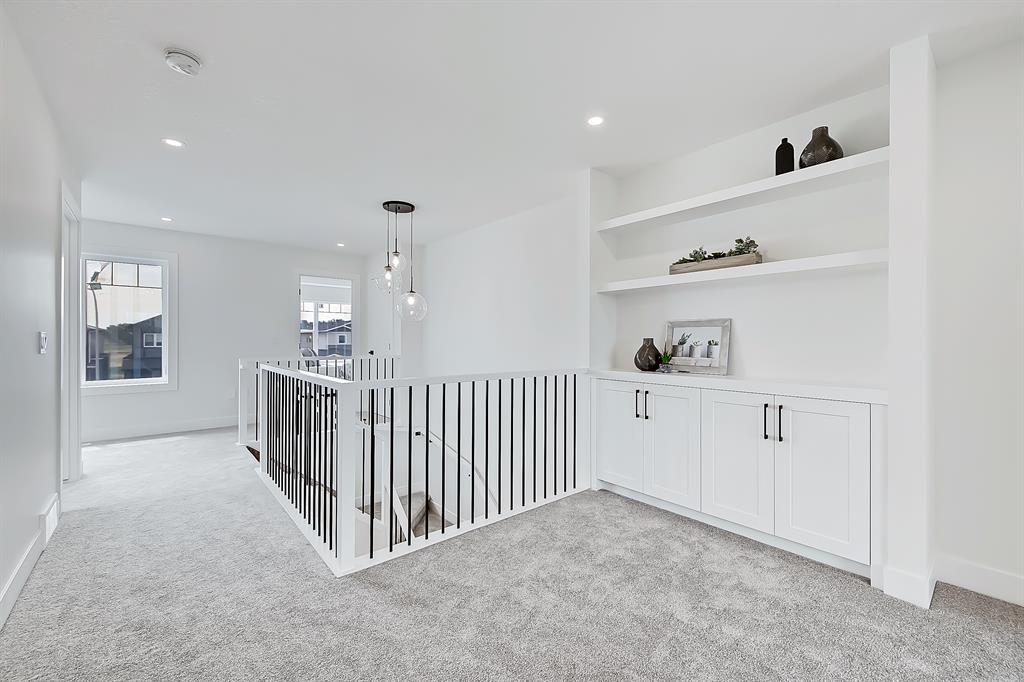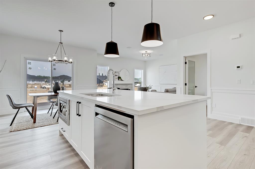 MOVE IN IN JULY! and enjoy everything small-town Alberta living has to offer! Don’t miss this EXECUTIVE DETACHED HOME in MANDALAY ESTATES, with over 2400 sf of living space complete w/ 3 BEDS, 2.5 BATHS, an ATTACHED TRIPLE CAR GARAGE & an open and spacious floorplan throughout. Perfect for families looking for upscale and elegance in a quiet, small town atmosphere, this estate home built by Marygold Homes, known for their exclusive infills in inner-city Calgary, blends high-end finishes w/ strong attention to detail & quality craftsmanship from top to bottom – including luxury vinyl plank flooring on the main floor, plush carpet on the upper, and elegant custom wainscotting throughout. Directly access the bright, open-concept main floor through the triple front car attached garage through a large and welcoming mudroom, which leads you to the kitchen through a walkthrough pantry. Welcome guests through the grand foyer w/ tiled floors, past the main floor office space, ideal for a productive & spacious home workstation. The impressive kitchen will quickly become the heart of the home, with quartz countertops, a full-height tile backsplash, lots of lower drawers w/ soft-close hardware, and an oversized central island w/ bar seating. The pantry gives you tons of organized storage space w/ built-in shelving & doors, while the upgraded stainless steel appliance package completes the space w/ a gas range, French door refrigerator, microwave, and dishwasher. A transom window floods the dining nook and great room w/ natural light, with even more windows and a patio door giving you fantastic views of the natural environment around you, while the great room centres on an inset gas fireplace w/ tile surround & mantle. Upstairs, a large bonus room enjoys a built-in fireplace for the ultimate family gathering space. Off this space, you’ll find 2 secondary bedrooms, a built-in display cabinet, linen closet, a main 4pc bathroom, & a good-sized laundry room w/ tiled floors + window. The real showstopper, though, is the incredible primary suite, complete w/ a tray ceiling, oversized windows, a large walk-in closet w/ custom built-in millwork, and a massive, elegant 5pc ensuite. This ultra-luxurious ensuite includes a 3ft x 5ft walk-in glass shower, a built-in soaker tub perfectly placed under decorative shelves, a private water closet, and an extra-long vanity w/ dual sinks (lots of space for two people’s toiletries!). The unfinished basement has rough-ins for a future bathroom, a great opportunity to fully customize the ample space to suit exactly your family’s needs. You’ll love your life in Mandalay Estates in Carstairs, where your home is centrally located and close to downtown, Hugh Sutherland School, the Carstairs Community Golf Course, Memorial Arena, and future retail development. This home is MOVE IN READY Call today! GST rebate, if any, goes to the builder.