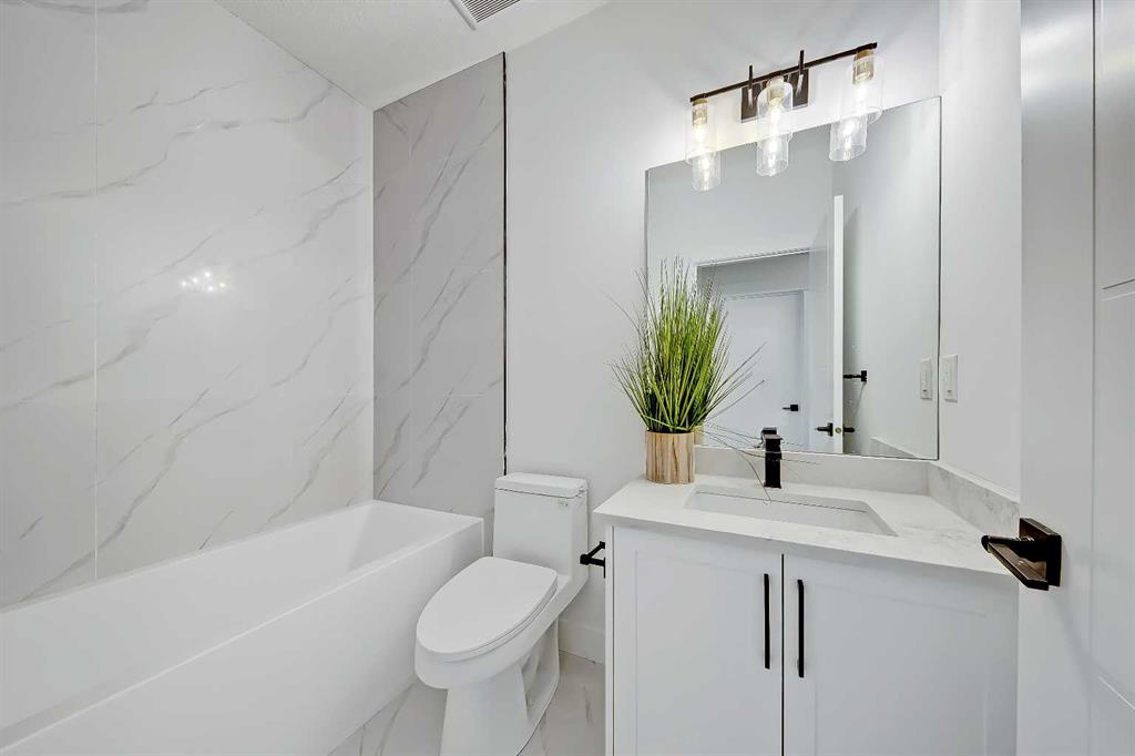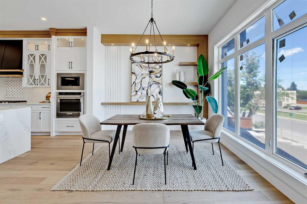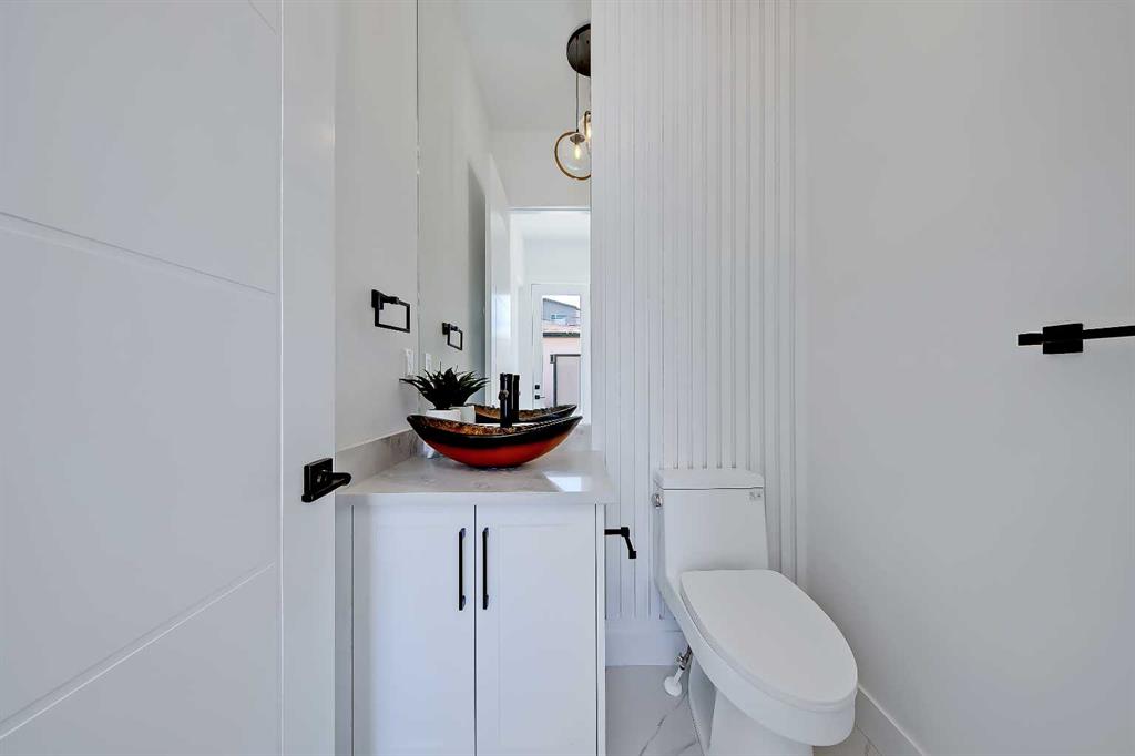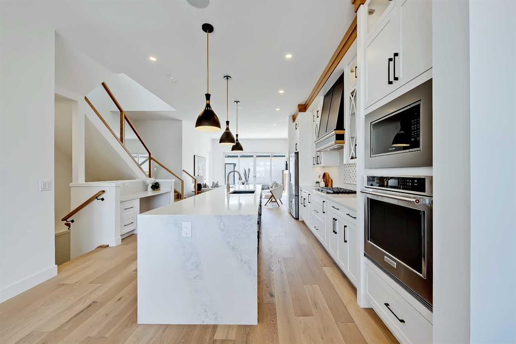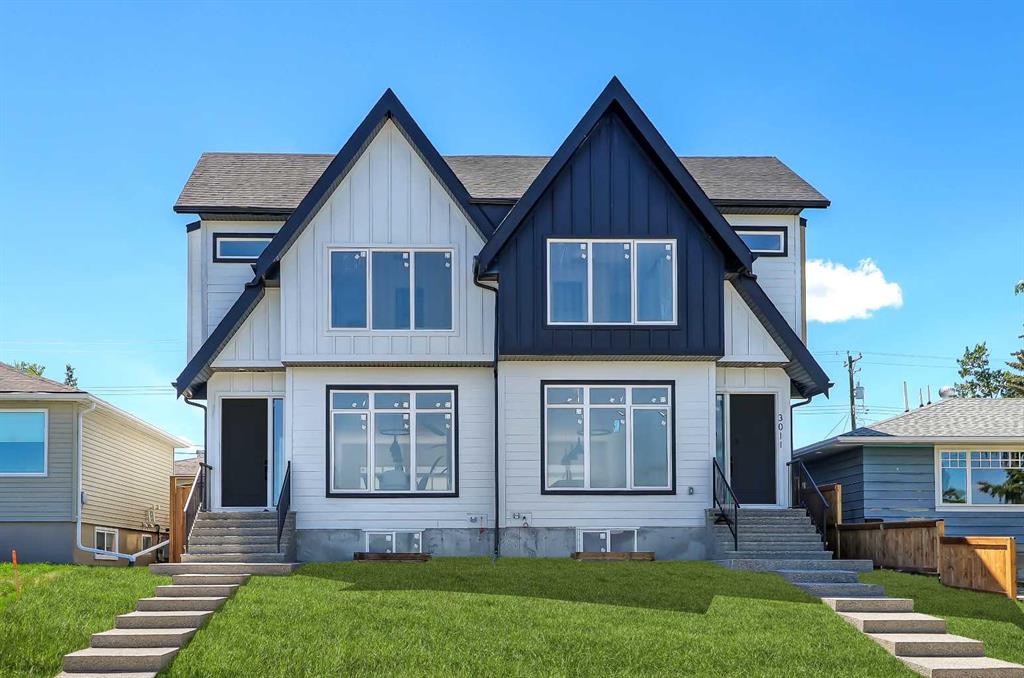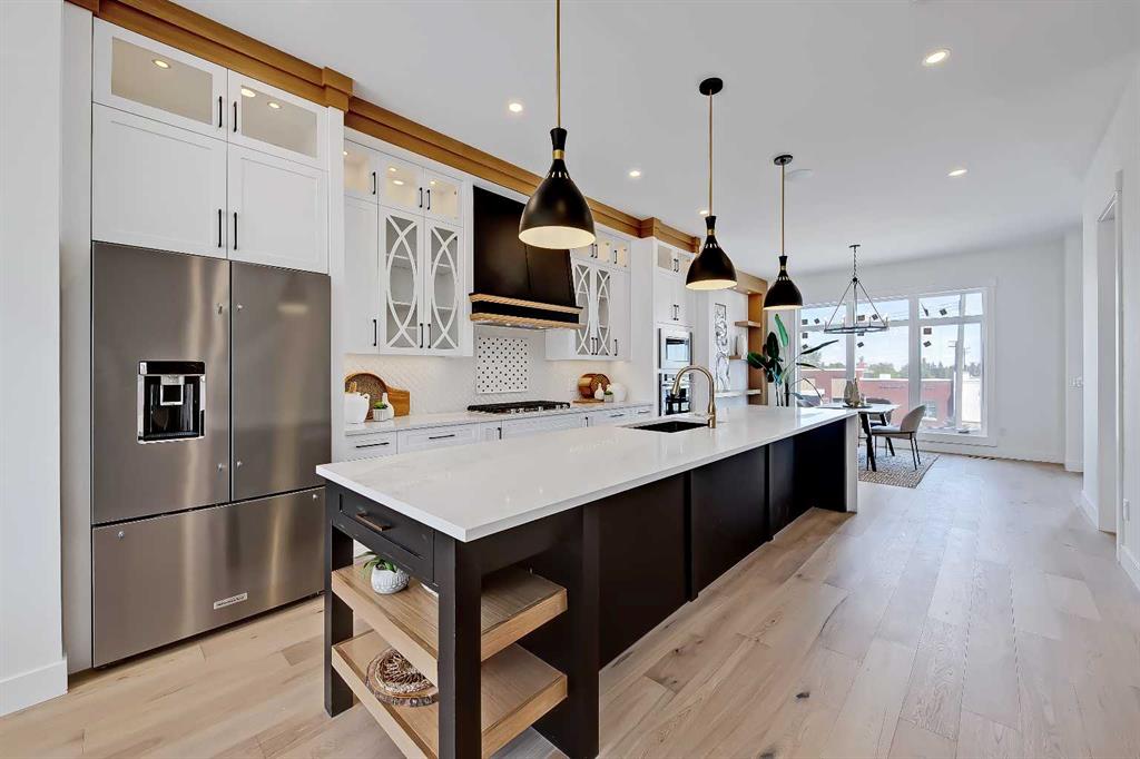 You’ll absolutely love your new SEMI-DETACHED INFILL nestled in the heart of PARKDALE! Everything you need is close by for the ultimate inner-city lifestyle – fields and playgrounds, Westmount Charter School, an off-leash dog park, Foothills Hospital, the Bow River and the pathway system, University District shopping, plus more! The highly desirable Parkdale location is only improved upon by this home’s fantastic layout, with room for all the kids across 4 bedrooms, an upper VAULTED bonus room, and a built-in COFFEE BAR on the main floor. The curb appeal, highlighted by the eye-catching two-tone exterior, welcomes you into the foyer with a built-in closet and bench, with direct access to the dedicated dining room. The dining room enjoys oversized East-facing windows for lots of natural light and a designer chandelier with a stunning built-in feature wall with display shelving! The space seamlessly flows into the striking kitchen, complete with designer pendant lights above the long central island with waterfall edge and open display shelves, full-height cabinetry with under cabinet lighting, shaker-style cabinetry, quartz countertops, a designer tile backsplash, and a good-sized walk-in pantry with built-in shelving. The upgraded stainless steel appliance package includes a French door refrigerator, gas cooktop, wall oven and microwave, and dishwasher. Even the hood fan canopy follows the designer feel of the home with a custom-built canopy! A built-in coffee bar is perfect for early mornings or entertaining with room for a beverage fridge, and the rear living room is ideal for catching up with the family around the inset gas fireplace with display shelving, tile surround, and mantle. The rear mudroom is nicely tucked away with a tile floor, a built-in bench, and a built-in closet, and the powder room features a wood panel feature wall with a designer sink! Up the wood-wrapped staircase, a VAULTED bonus room with wood display shelving gives your family more space to spread out. The upper floor hosts two secondary bedrooms with built-in closets, a modern 4-pc main bathroom, and a nice laundry room with tile floor and quartz countertop. The primary suite is sure to impress, with a tray ceiling, wood panel feature, designer lighting, walk-in closet, and barn door entrance to the luxurious 5-pc ensuite w/ vaulted ceiling, freestanding soaker tub with jets, and fully-tiled shower. The living space continues into the fully-developed basement, with a built-in media centre and impressive wet bar with tile backsplash, open display shelving, upper cabinets with uniquely designed glass doors, a quartz countertop, and a beverage fridge. There is another large bedroom and a 4-pc modern bathroom, completing the home nicely. Plus, the builder has included all the rough-ins for a future legal secondary suite (subject to permits and approvals by the city)! Making this home ideal for your inner-city lifestyle! *Photos are of another home by the same builder. Finishings will vary.