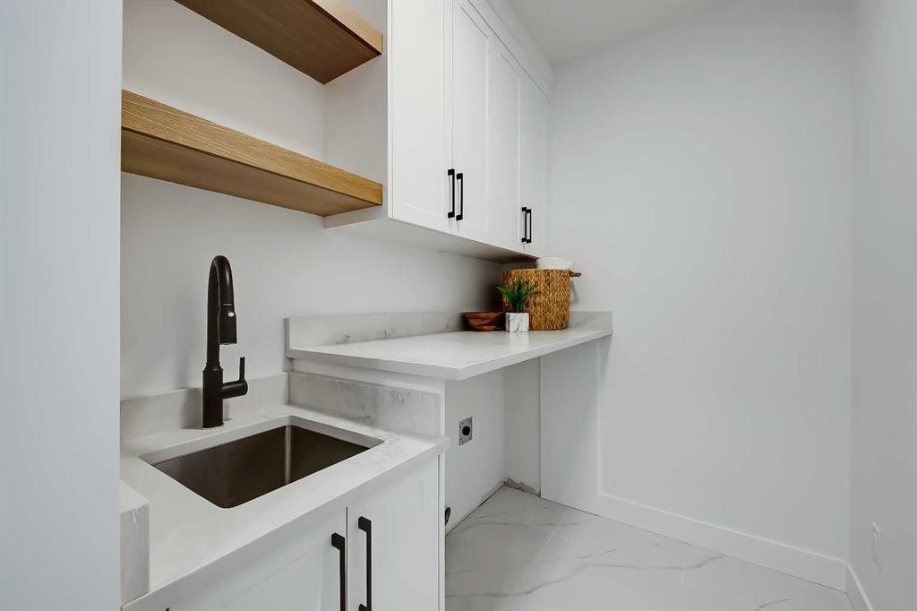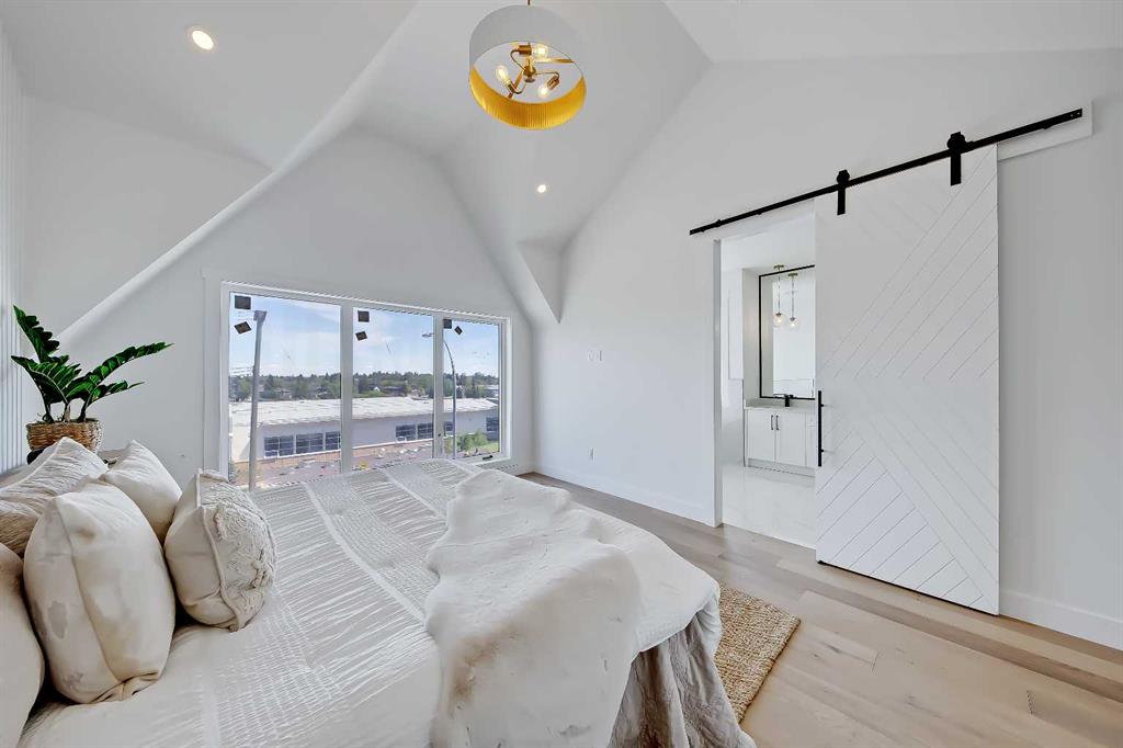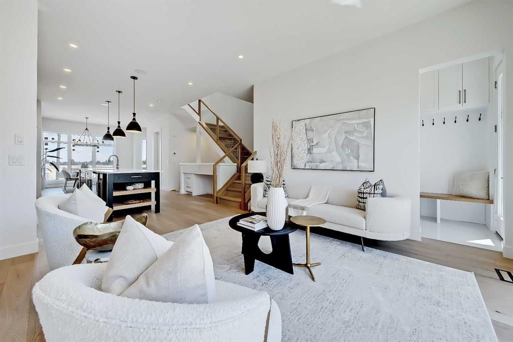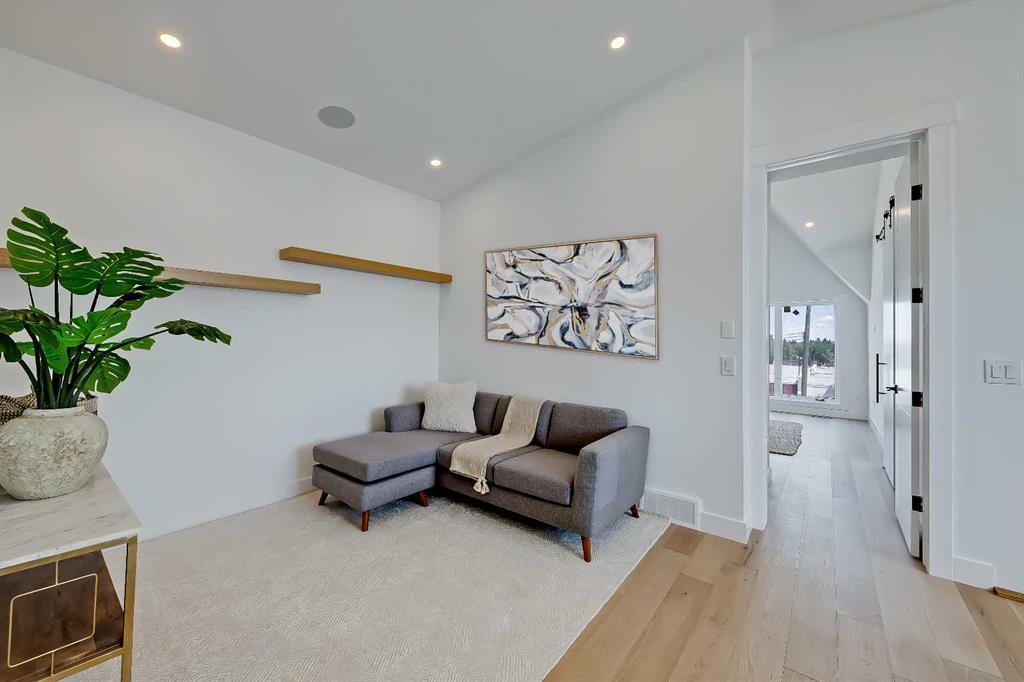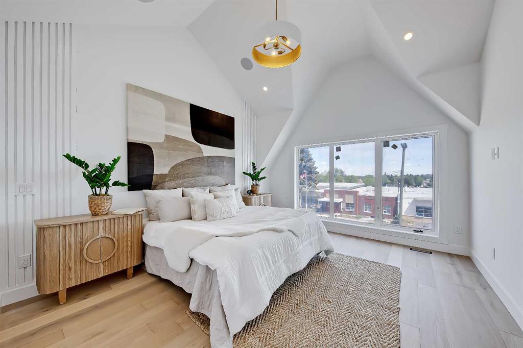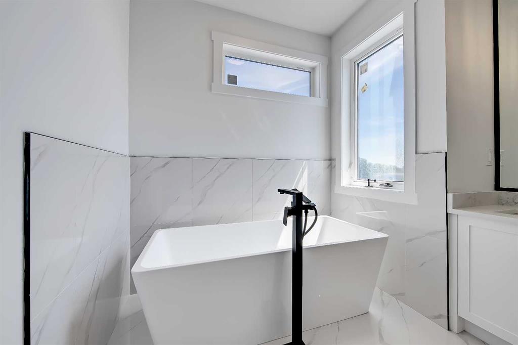 You’ll absolutely love your new SEMI-DETACHED INFILL nestled in the heart of PARKDALE! Everything you need is close by for the ultimate inner-city lifestyle – fields and playgrounds, Westmount Charter School, an off-leash dog park, Foothills Hospital, the Bow River and the pathway system, University District shopping, plus more! The highly desirable Parkdale location is only improved upon by this home’s fantastic layout, with room for all the kids across 4 bedrooms, an upper VAULTED bonus room, and a built-in COFFEE BAR on the main floor. The curb appeal, highlighted by the eye-catching two-tone exterior, welcomes you into the foyer with a built-in closet and bench, with direct access to the dedicated dining room. The dining room enjoys oversized East-facing windows for lots of natural light and a designer chandelier with a stunning built-in feature wall with display shelving! The space seamlessly flows into the striking kitchen, complete with designer pendant lights above the long central island with waterfall edge and open display shelves, full-height cabinetry with under cabinet lighting, shaker-style cabinetry, quartz countertops, a designer tile backsplash, and a good-sized walk-in pantry with built-in shelving. The upgraded stainless steel appliance package includes a French door refrigerator, gas cooktop, wall oven and microwave, and dishwasher. Even the hood fan canopy follows the designer feel of the home with a custom-built canopy! A built-in coffee bar is perfect for early mornings or entertaining with room for a beverage fridge, and the rear living room is ideal for catching up with the family around the inset gas fireplace with display shelving, tile surround, and mantle. The rear mudroom is nicely tucked away with a tile floor, a built-in bench, and a built-in closet, and the powder room features a wood panel feature wall with a designer sink! Up the wood-wrapped staircase, a VAULTED bonus room with wood display shelving gives your family more space to spread out. The upper floor hosts two secondary bedrooms with built-in closets, a modern 4-pc main bathroom, and a nice laundry room with tile floor and quartz countertop. The primary suite is sure to impress, with a tray ceiling, wood panel feature, designer lighting, walk-in closet, and barn door entrance to the luxurious 5-pc ensuite w/ vaulted ceiling, freestanding soaker tub with jets, and fully-tiled shower. The living space continues into the fully-developed basement, with a built-in media centre and impressive wet bar with tile backsplash, open display shelving, upper cabinets with uniquely designed glass doors, a quartz countertop, and a beverage fridge. There is another large bedroom and a 4-pc modern bathroom, completing the home nicely. Plus, the builder has included all the rough-ins for a future legal secondary suite (subject to permits and approvals by the city)! Making this home ideal for your inner-city lifestyle! *Photos are of another home by the same builder. Finishings will vary.