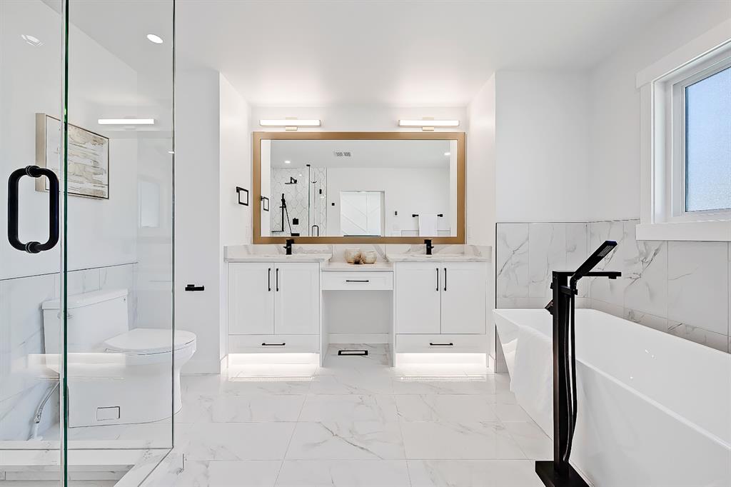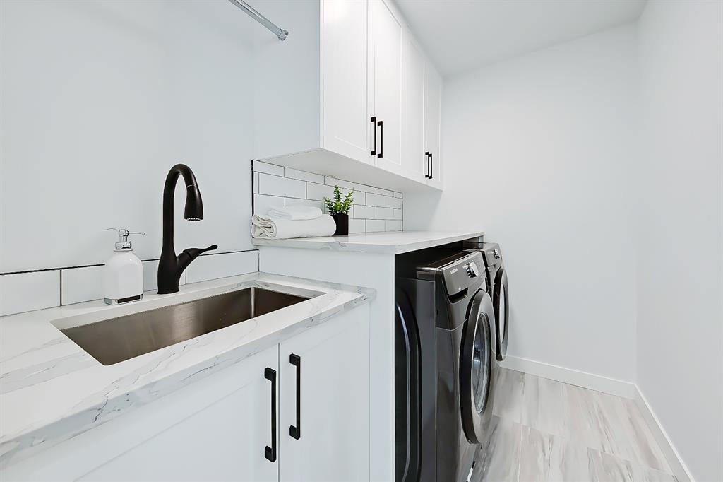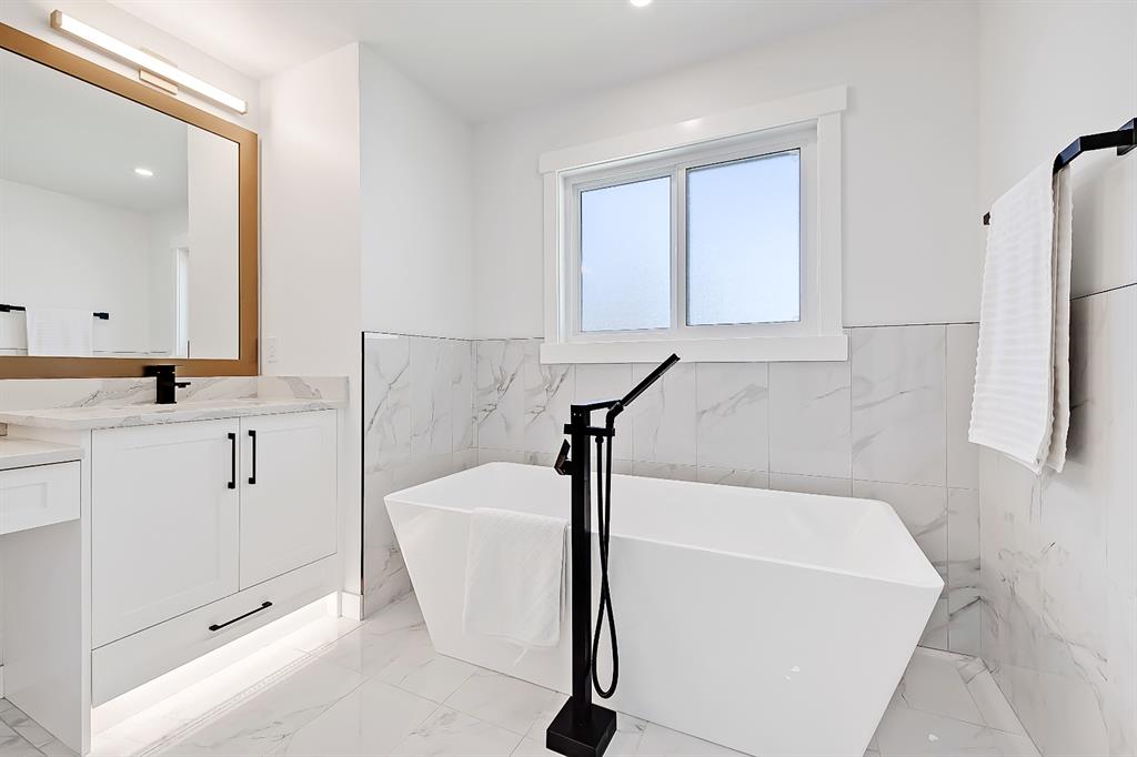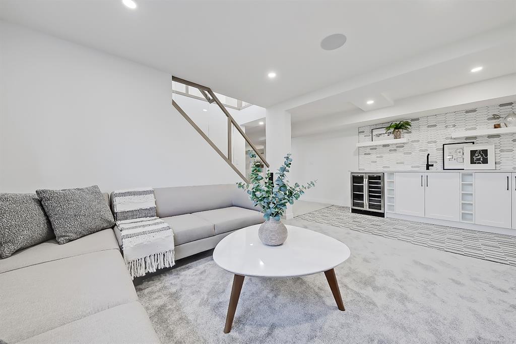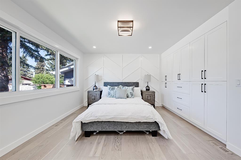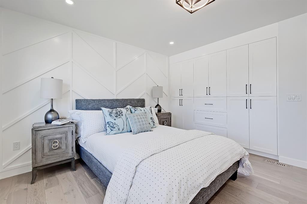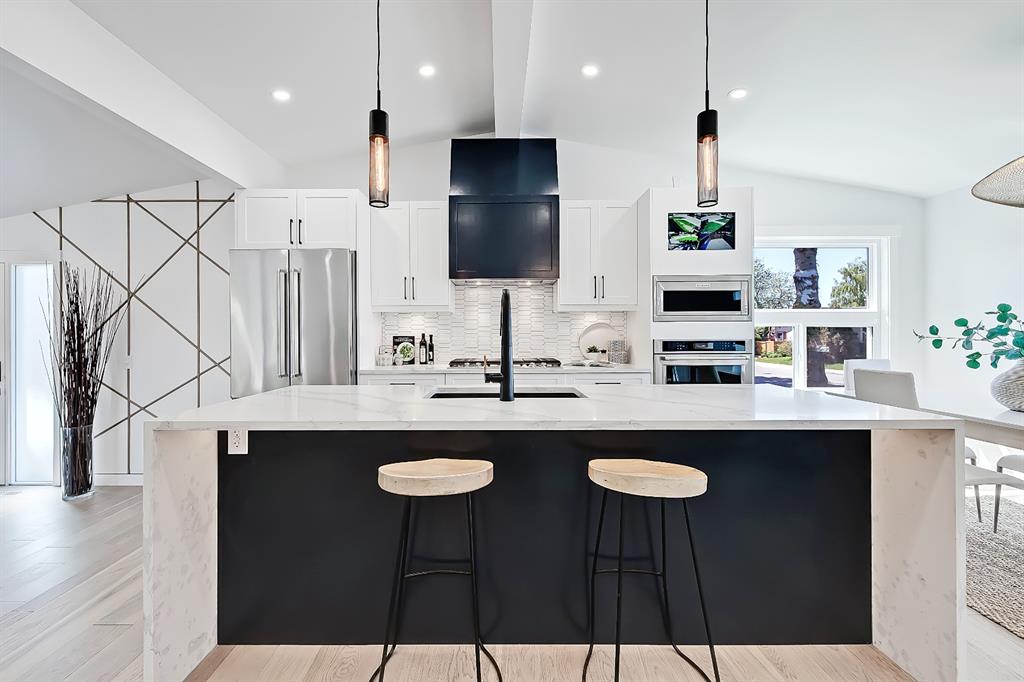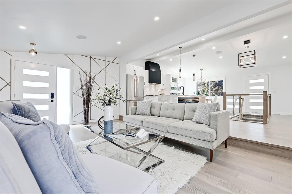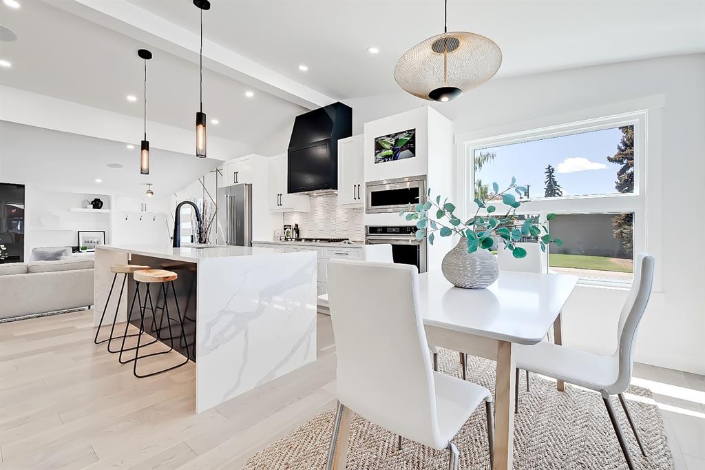 You absolutely need to see this EXTENSIVELY RENOVATED BUNGALOW w/ RV PARKING in the established community of ACADIA! You’d never know this home was originally built in 1962 w/ all the MODERN & NEW touches – including SMART home capabilities w/ 200-AMP service & wiring, new plumbing, new lighting, new appliances, renovated bathrooms, updated flooring, new electric fireplaces…& so much more. The modern elegance begins w/ the glass-panelled front door as you step into the spacious & bright living room. The contemporary living room features a vaulted ceiling w/ a built-in entertainment wall, a geometric feature wall, & an inset electric fireplace w/ a full-height tile surround. Brand new oak engineered hardwood spans the living room & into the raised open kitchen. The vaulted ceiling also continues into the kitchen/dining room, where you’ll find shaker-style cabinetry, a classic white tile backsplash, lots of lower drawers, an oversized two-tone island w/ waterfall quartz countertops, & brand-new KitchenAid stainless steel appliances (including French door fridge, wall oven & microwave, gas cooktop, & custom-built hood fan). A dedicated dining space can hold a six-person table & sits next to two large windows for natural light all day. Two bedrooms on the main floor feature incredible built-in storage, while the primary also features a tasteful feature wall & deluxe ensuite w/ WIFI CONTROLLED IN-FLOOR HEAT, a freestanding soaker tub, stand-up shower w/ full height tile, & dual vanity. A full laundry room is also located outside the bedrooms w/ a tile backsplash, SINK, folding counter, & built-in storage. The main bathroom also offers IN-FLOOR HEAT & anti-stain tiles! Down the GLASS stairwell, a large rec room enjoys its own BUILT-IN MEDIA wall centring on an electric fireplace surrounded by built-in cabinetry & a full WET BAR complete w/ sink, tile backsplash, beverage fridge, open display shelves, & lower cabinetry w/ wine racks. There are also TWO good-sized bedrooms w/ easy access to the 4-pc bath w/ a large standing shower w/ tile surround & a flex space perfect for a home GYM or OFFICE. Out back, not only will you enjoy the fully fenced & landscaped yard w/ a brand-new vinyl deck, but there’s also a newly built INSULATED & DRYWALLED OVERSIZED 22×24 double detached garage w/ an 18×8 overhead door & the 200 Amp supply makes it easy to install an EV Charging Station. RV PARKING w/ secured fence access means no more storage fees! Acadia offers a quiet, friendly neighbourhood to relax & unwind in, perfect for retirees or those raising a family. Mature trees & big lots line the streets, w/ many schools & parks making up the neighbourhood. Sue Higgins Off-Leash Park is just down the road, just across the river from Carburn Park, & the community is surrounded by Heritage Dr, Southland Drive, Macleod, & Blackfoot Trail to take you anywhere in the city you want to go! It’s truly a fantastic location to settle down in.