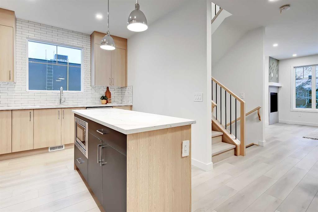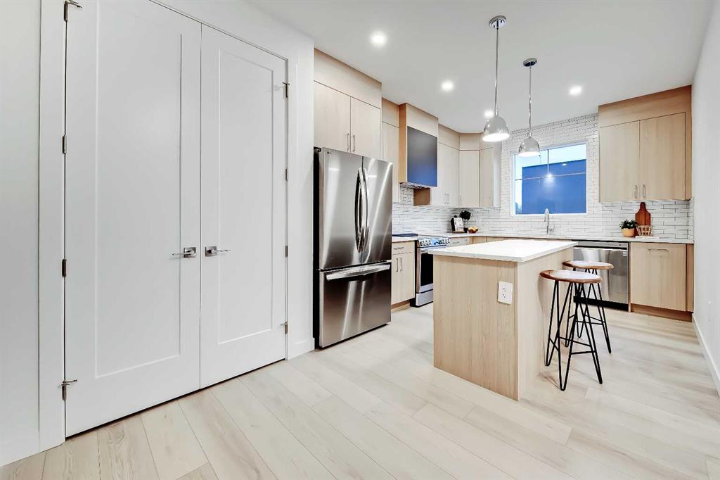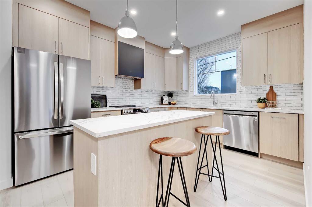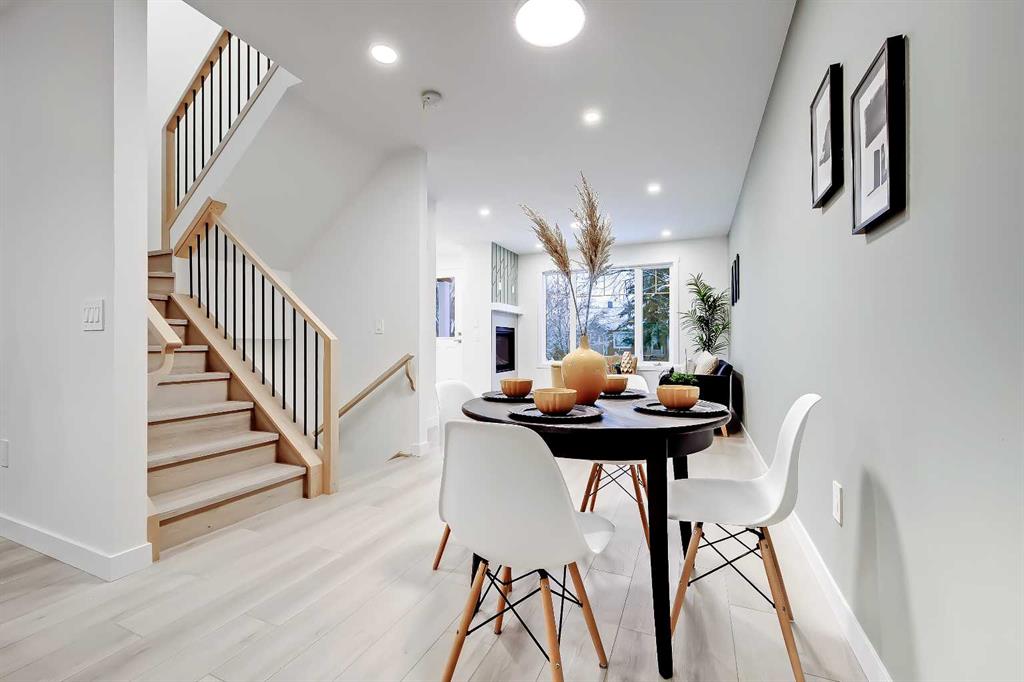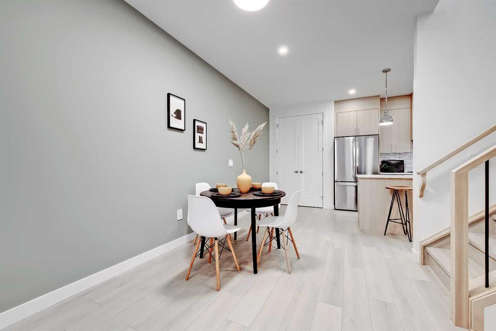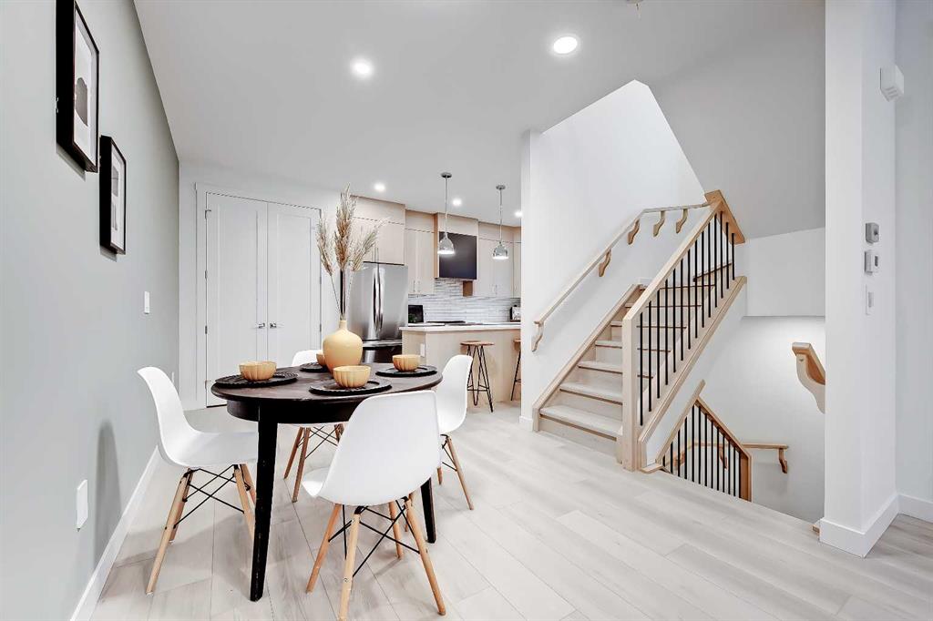YOU CAN’T BEAT THIS LOCATION IN RENFREW with this BRAND NEW 2-storey TOWNHOME w/ FULLY DEVELOPED BASEMENT! One block away from Edmonton Trail, just south of 16th Ave, with all the trendy shopping, restaurants, and hangout spots in Bridgeland and East Village just outside your doorstep! And just down the road in Ramsey, you have quick access to walking paths, lookout points, the Renfrew Aquatic Centre, community skating rinks, schools, parks, and more! It’s an ideal location for any young couple looking to live in the area who don’t want to sacrifice luxury or convenience! Spread out across 1,748 sq ft of developed living space, including 3 bedrooms, a large L-shaped luxury kitchen, and a fully developed basement! The open-concept main floor features a chef-inspired kitchen with ceiling-height custom cabinetry, a modern tile backsplash, designer pendant lights, a central island with bar seating, a good-sized built-in pantry, and a lovely stainless steel appliance package. A cozy dining area fits a 4-6 person table, perfect for date night or when your friends come over for dinner! The spacious living room centres on an oversized window and an inset gas fireplace with a modern tile surround, mantle, and eye-catching feature wall. Upstairs, two bedrooms with private ensuites await, with a linen closet and stacked washer/dryer for convenience. The primary bedroom features a large walk-in closet w/built-in custom shelving and a 4-piece ensuite w/ dual sinks, quartz counter, and large shower w/ full-height tile surround. The secondary bedroom actually has TWO WALK-IN CLOSETS and a 4-pc bath w/ contemporary tub/shower combo w/ full-height tile surround. The basement gives you an additional 550 sq ft of living space, including a large recreation area with a full wet bar, a storage room, and an additional bedroom w/ a built-in closet and private 4-piece ensuite. Living in Renfrew is unlike any other, w/ easy access to Bridgeland & all its shops & amenities, Tom Campbell Hill Off-Leash, Telus Spark & the Calgary Zoo, the Renfrew Community Association & Skating Rink, plus all the restaurants & shops along Edmonton Trail! Deerfoot is just a stone’s throw away, too, giving you complete access to the entire city for easy commuting or for play. Drive around the neighbourhood, stop into an open house, or book your private viewing to see your new home for yourself – you will love what you see!