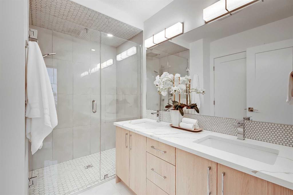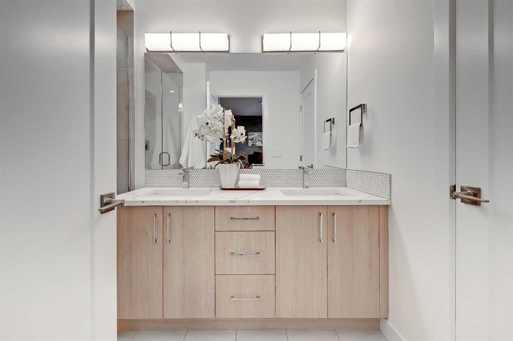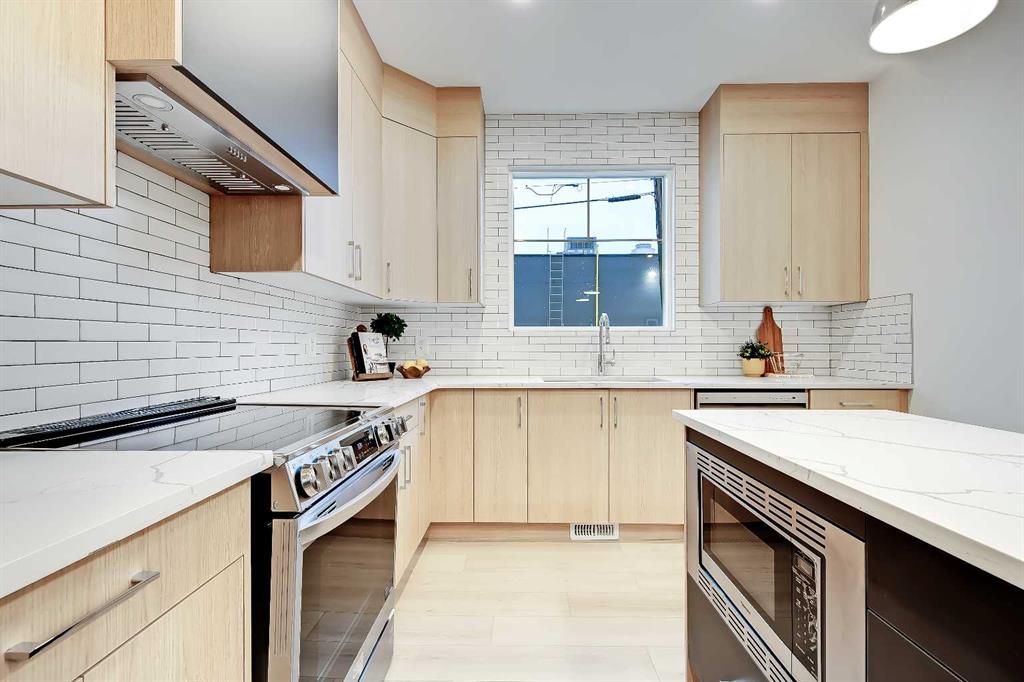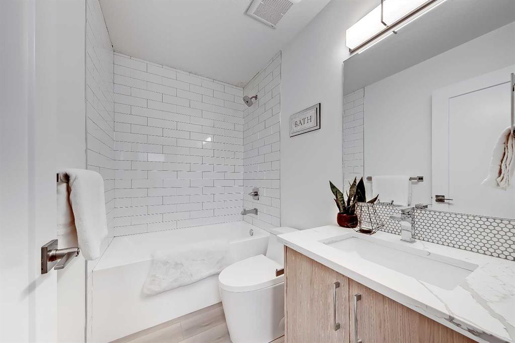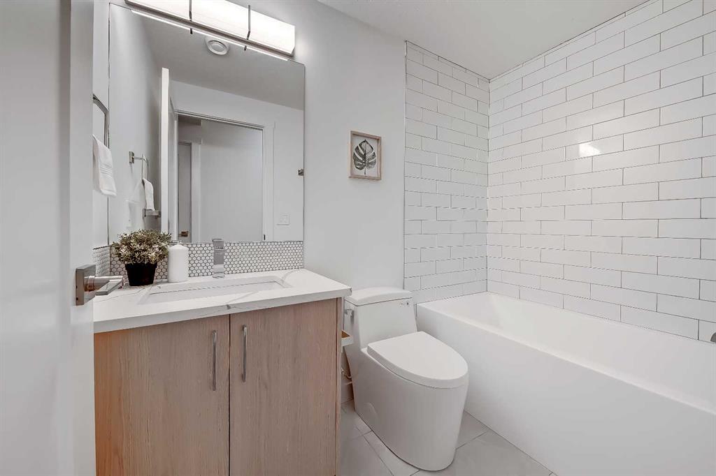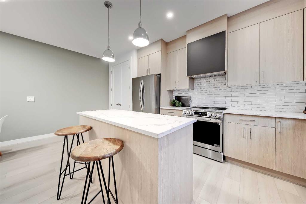 YOU CAN’T BEAT THIS LOCATION IN RENFREW with this BRAND NEW 2-storey TOWNHOME w/ FULLY DEVELOPED BASEMENT! One block away from Edmonton Trail, just south of 16th Ave, with all the trendy shopping, restaurants, and hangout spots in Bridgeland and East Village just outside your doorstep! And just down the road in Ramsey, you have quick access to walking paths, lookout points, the Renfrew Aquatic Centre, community skating rinks, schools, parks, and more! It’s an ideal location for any young couple looking to live in the area who don’t want to sacrifice luxury or convenience! Spread out across 1,748 sq ft of developed living space, including 3 bedrooms, a large L-shaped luxury kitchen, and a fully developed basement! The open-concept main floor features a chef-inspired kitchen with ceiling-height custom cabinetry, a modern tile backsplash, designer pendant lights, a central island with bar seating, a good-sized built-in pantry, and a lovely stainless steel appliance package. A cozy dining area fits a 4-6 person table, perfect for date night or when your friends come over for dinner! The spacious living room centres on an oversized window and an inset gas fireplace with a modern tile surround, mantle, and eye-catching feature wall. Upstairs, two bedrooms with private ensuites await, with a linen closet and stacked washer/dryer for convenience. The primary bedroom features a large walk-in closet w/built-in custom shelving and a 4-piece ensuite w/ dual sinks, quartz counter, and large shower w/ full-height tile surround. The secondary bedroom actually has TWO WALK-IN CLOSETS and a 4-pc bath w/ contemporary tub/shower combo w/ full-height tile surround. The basement gives you an additional 550 sq ft of living space, including a large recreation area with a full wet bar, a storage room, and an additional bedroom w/ a built-in closet and private 4-piece ensuite. Living in Renfrew is unlike any other, w/ easy access to Bridgeland & all its shops & amenities, Tom Campbell Hill Off-Leash, Telus Spark & the Calgary Zoo, the Renfrew Community Association & Skating Rink, plus all the restaurants & shops along Edmonton Trail! Deerfoot is just a stone’s throw away, too, giving you complete access to the entire city for easy commuting or for play. Drive around the neighbourhood, stop into an open house, or book your private viewing to see your new home for yourself – you will love what you see!